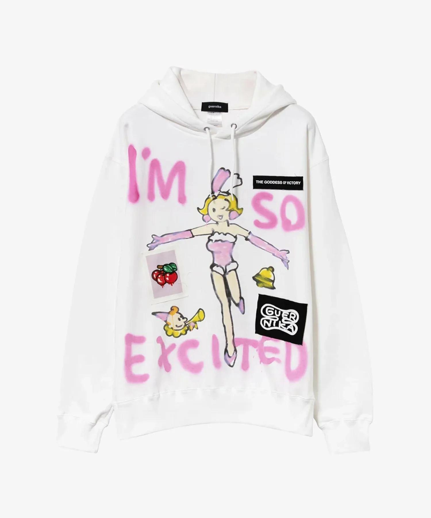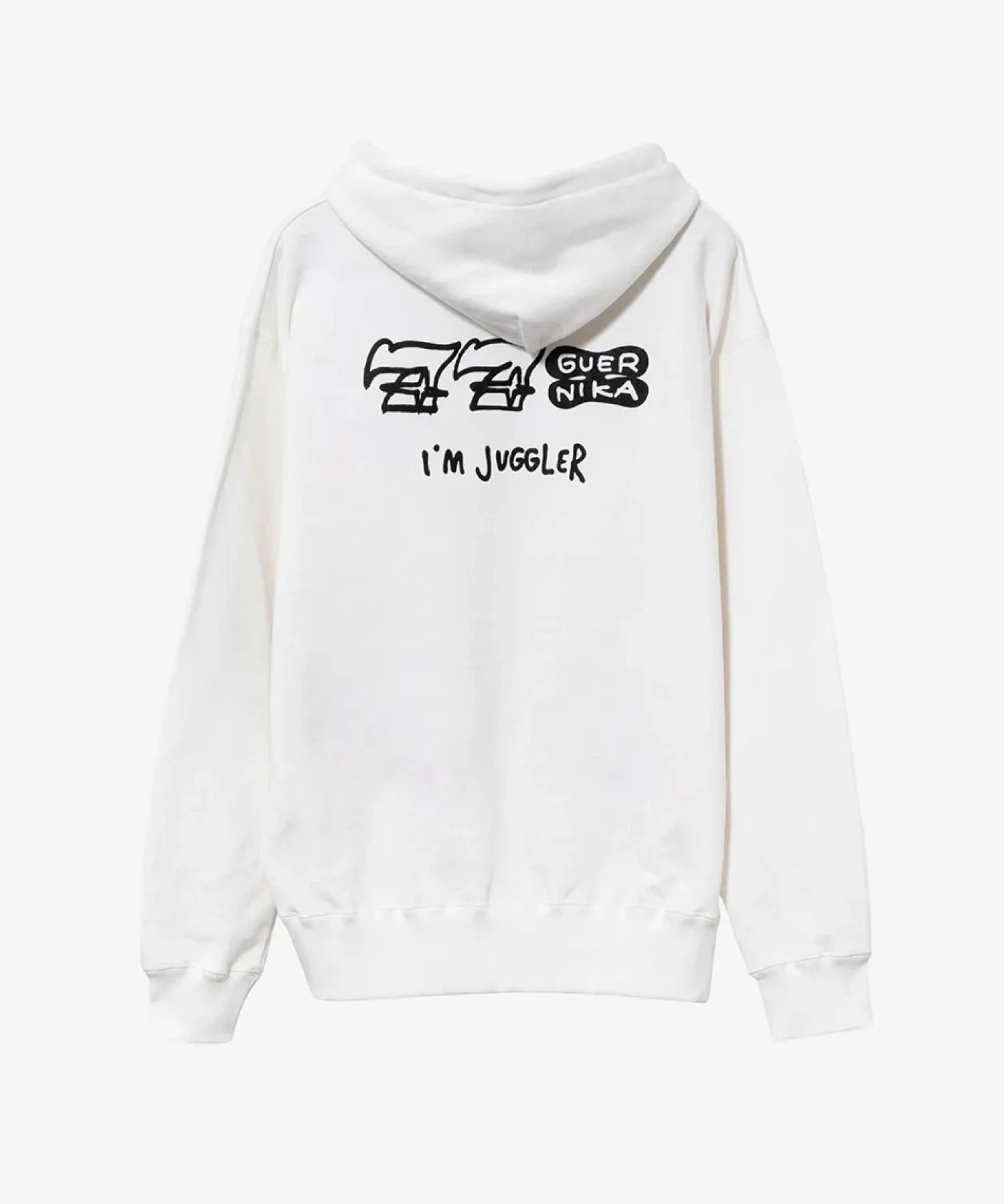 Новый дизайн, сочетающий символ игрового автомата «BAR» с названием бренда «GUERNIKA», размещен по всей толстовке, добавляя игривые детали.