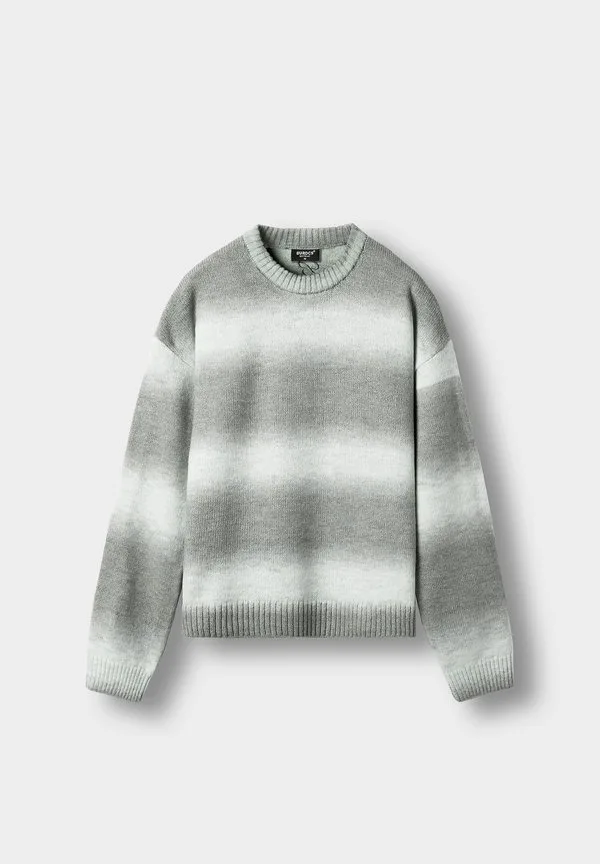 Джемпер с круглым вырезом и градиентным рисунком Burocs, Mid Grey/Light Grey