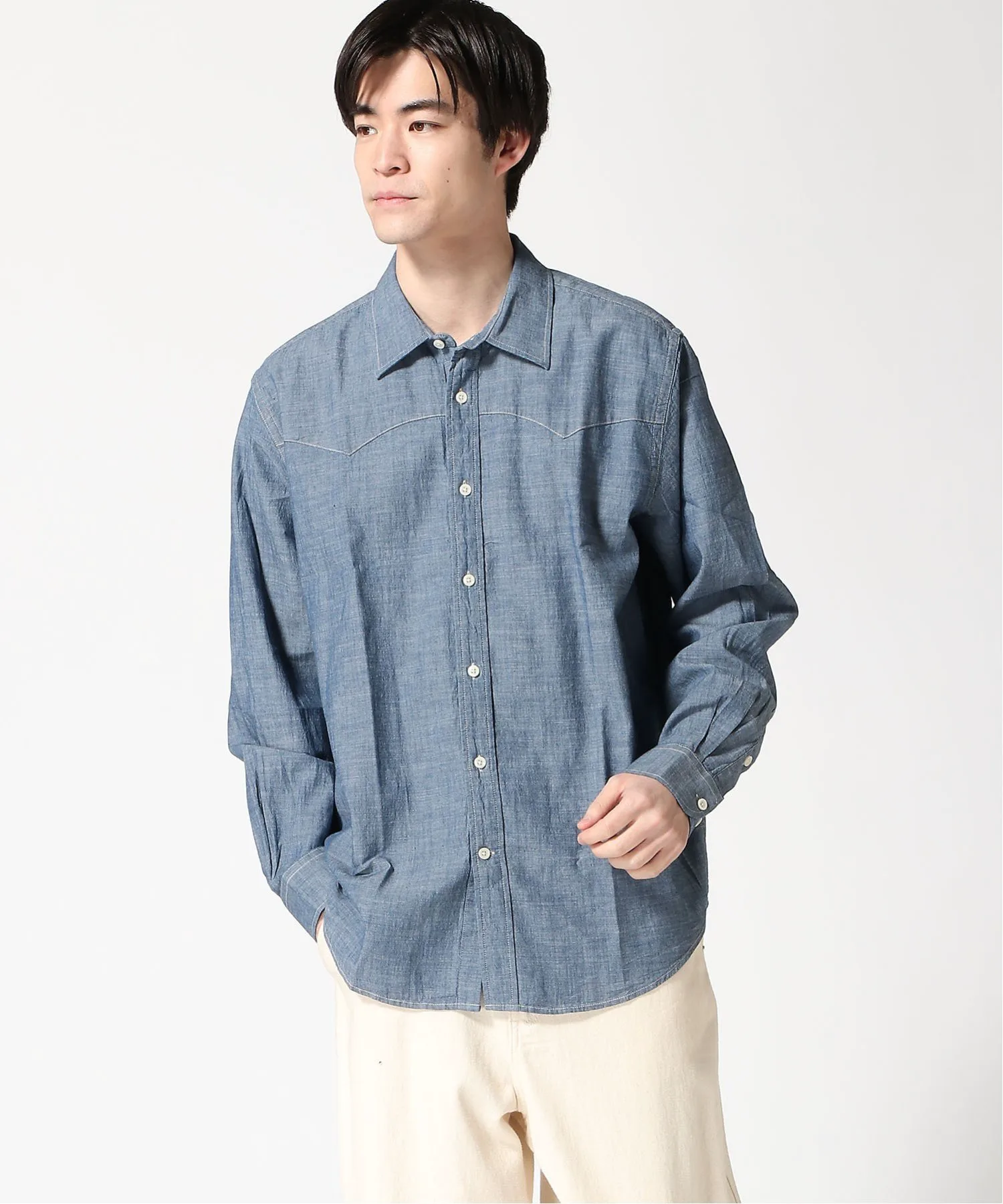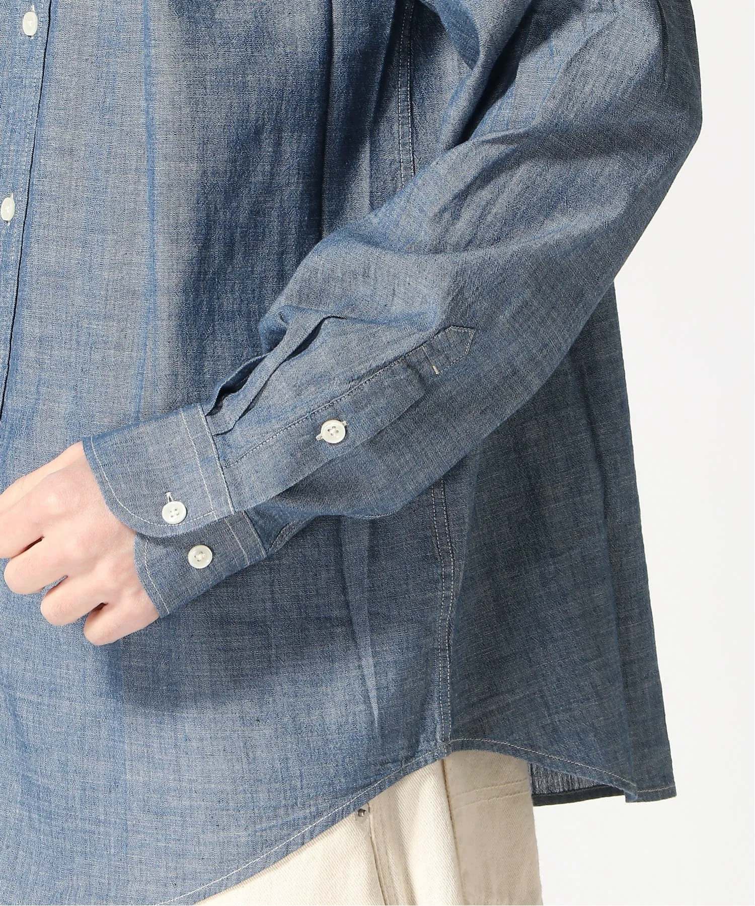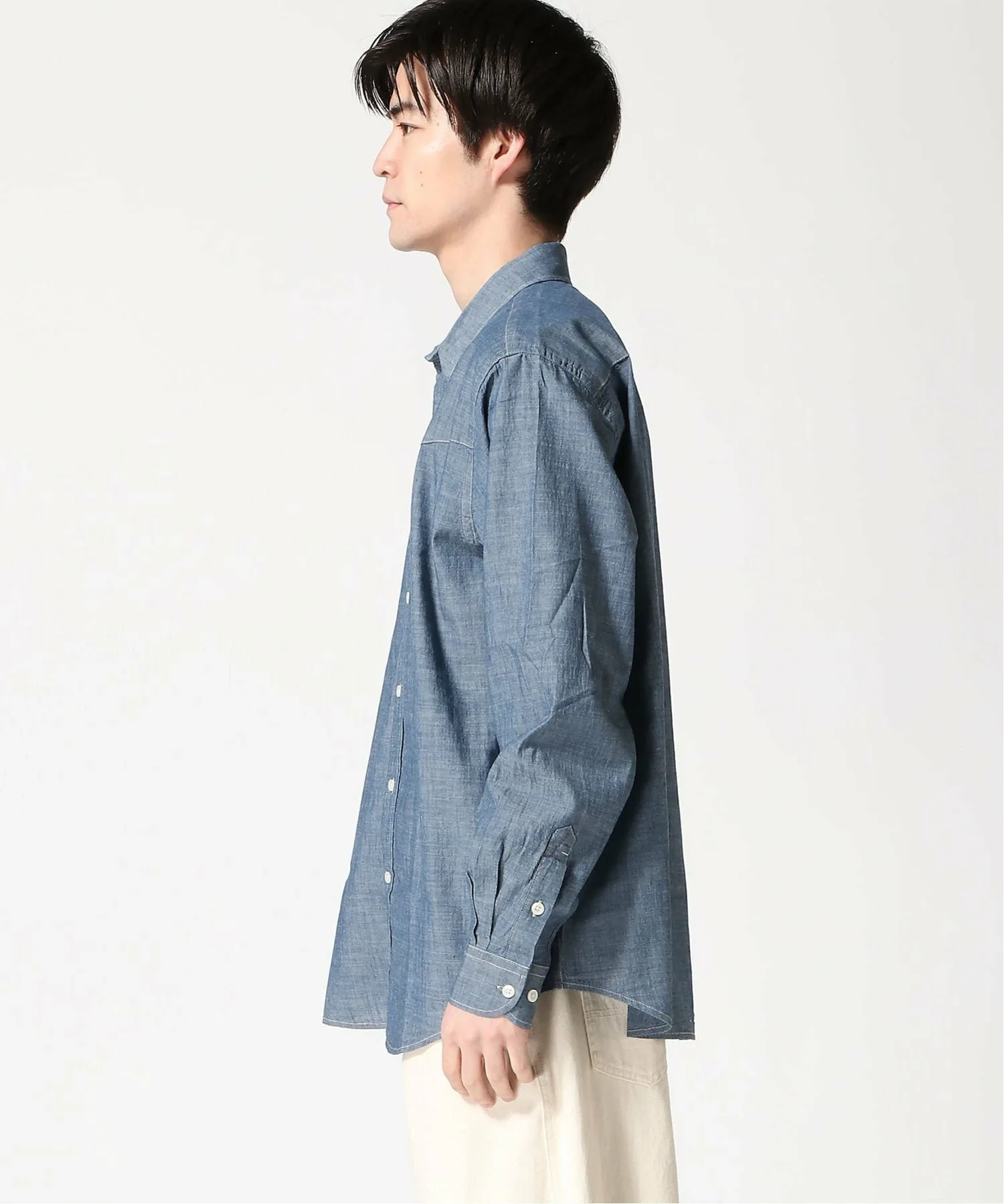Эта рубашка с длинными рукавами имеет свободный силуэт, который продолжает набирать популярность, создавая изысканный образ. Изготовленная из 100% хлопка, она обладает высокой воздухопроницаемостью и комфортна в ношении, что делает ее отличной защитой от палящего летнего солнца, а также от воздействия кондиционера и перепадов температуры. Мы также рекомендуем сочетать ее с аксессуарами, такими как значки, галстуки и жилеты, которые у вас уже есть. Рост модели: 183 см, размер L.