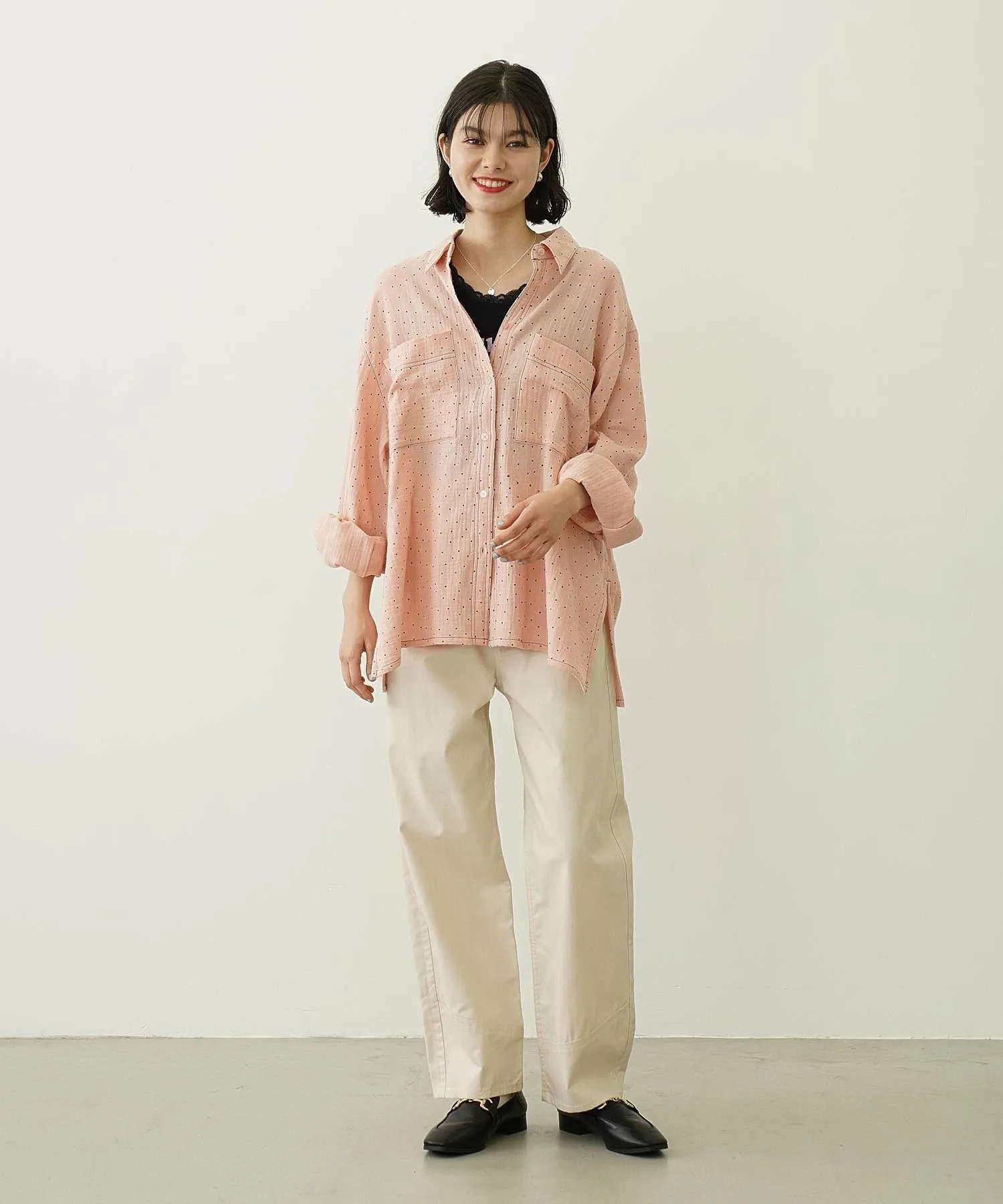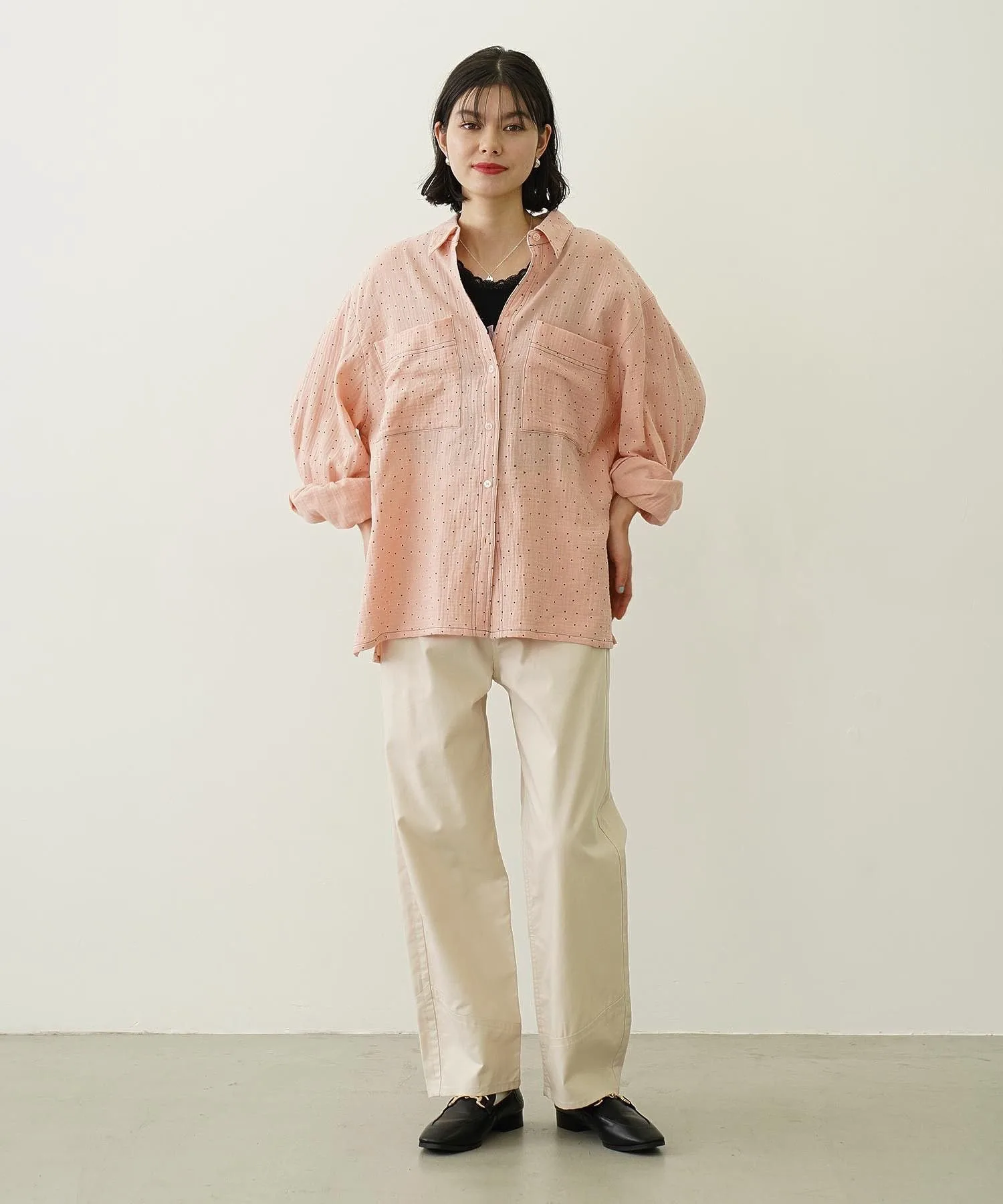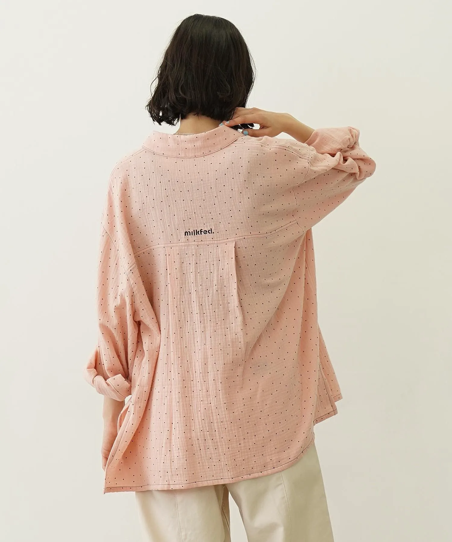 Рубашка оверсайз из марли в горошек.