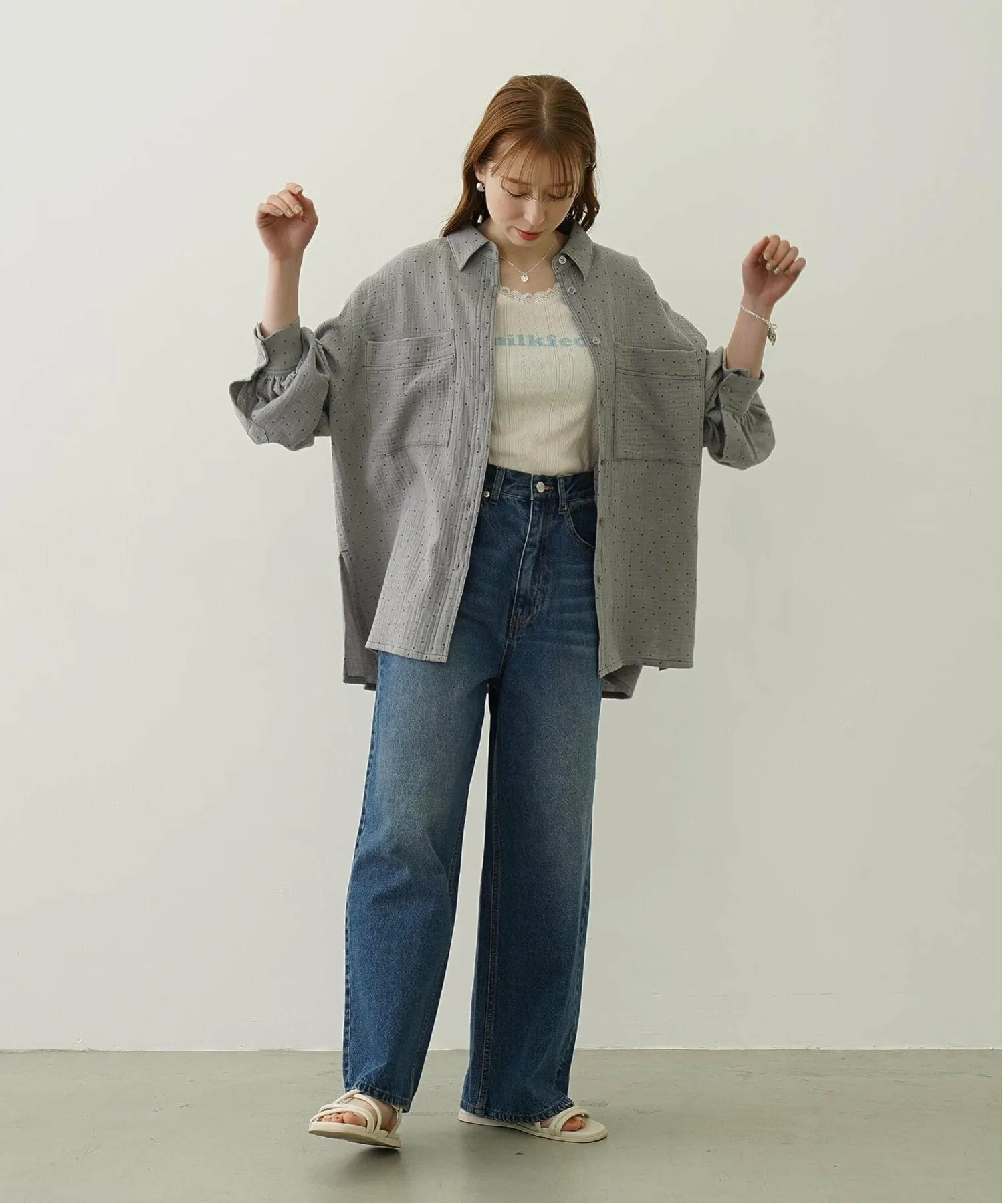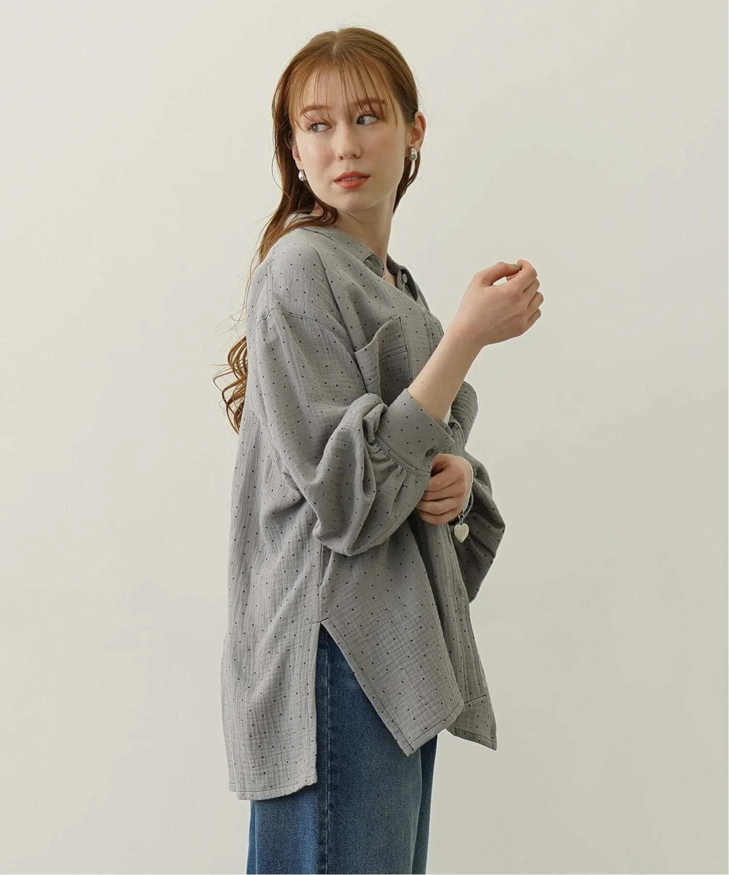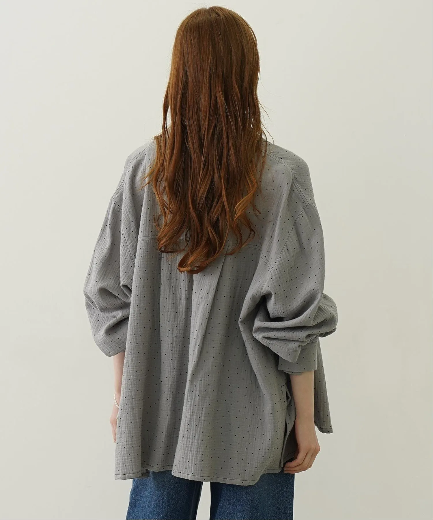 Рубашка оверсайз из марли в горошек.