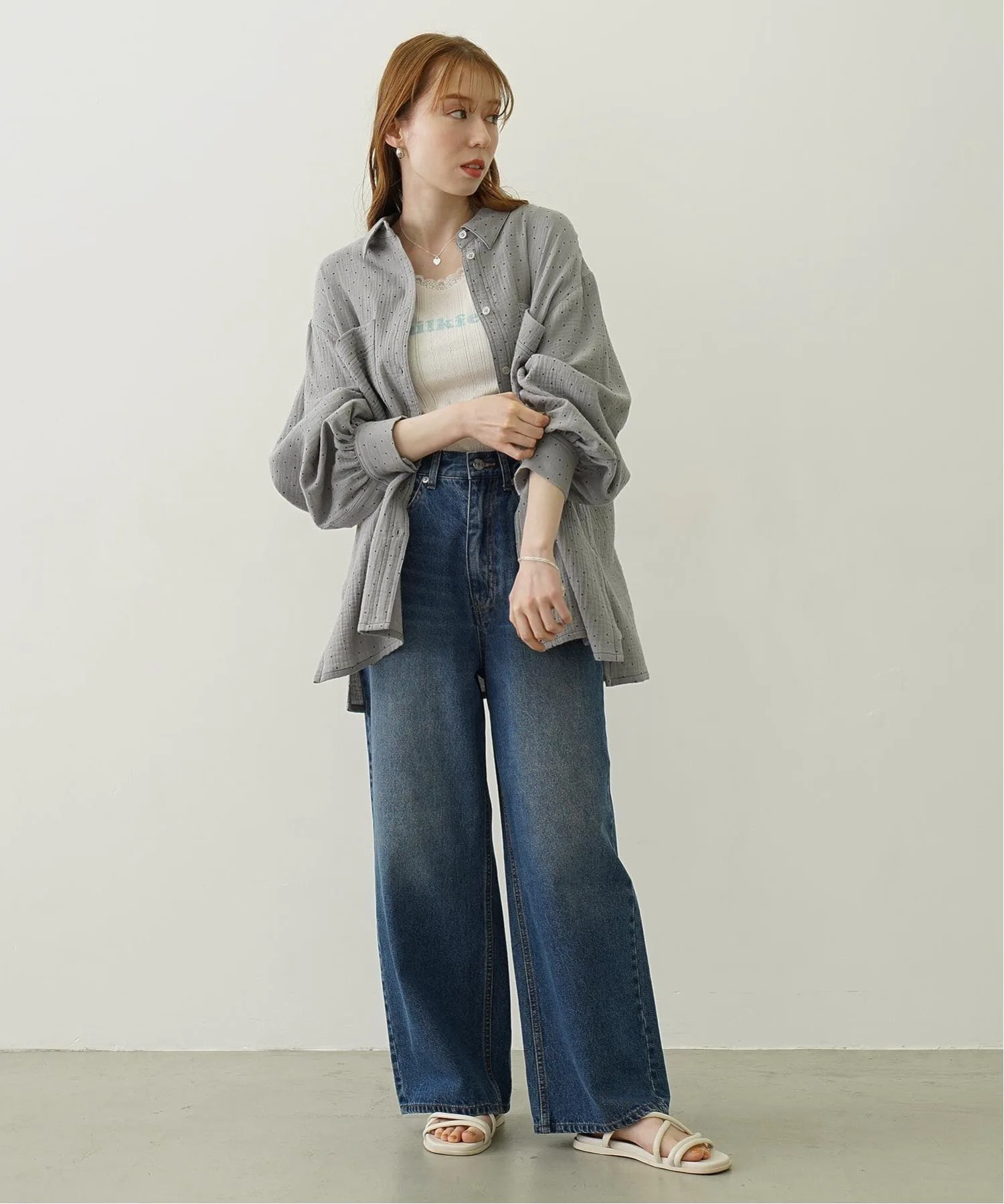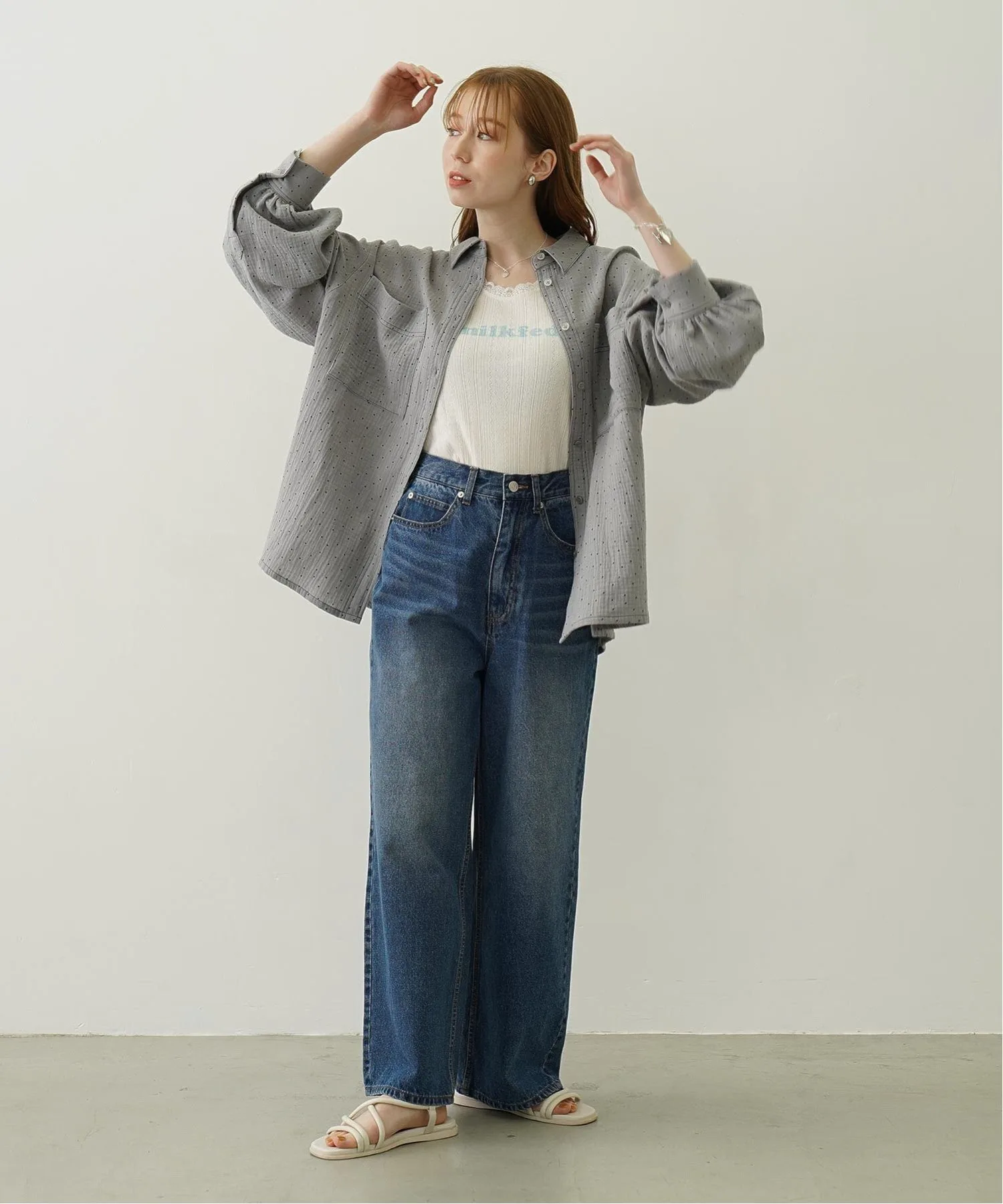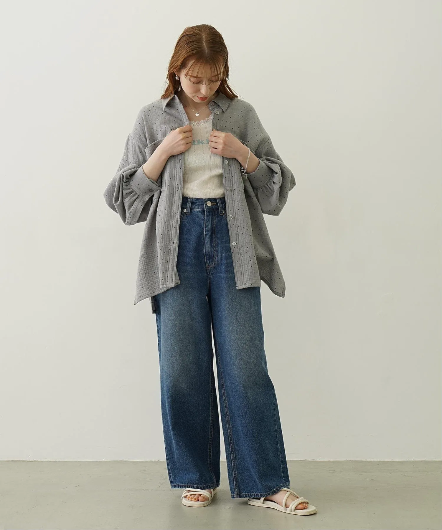 Рубашка оверсайз из марли в горошек.