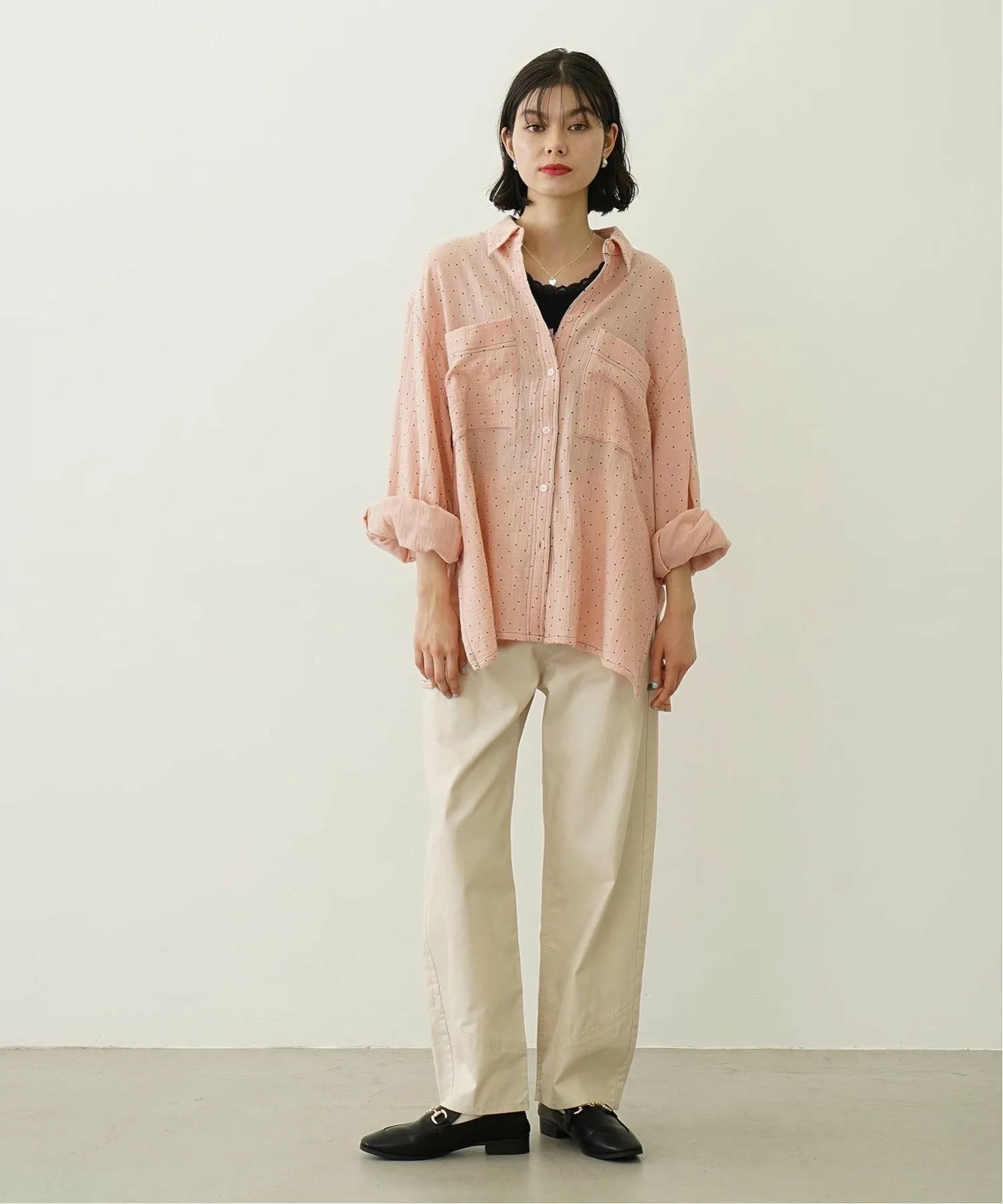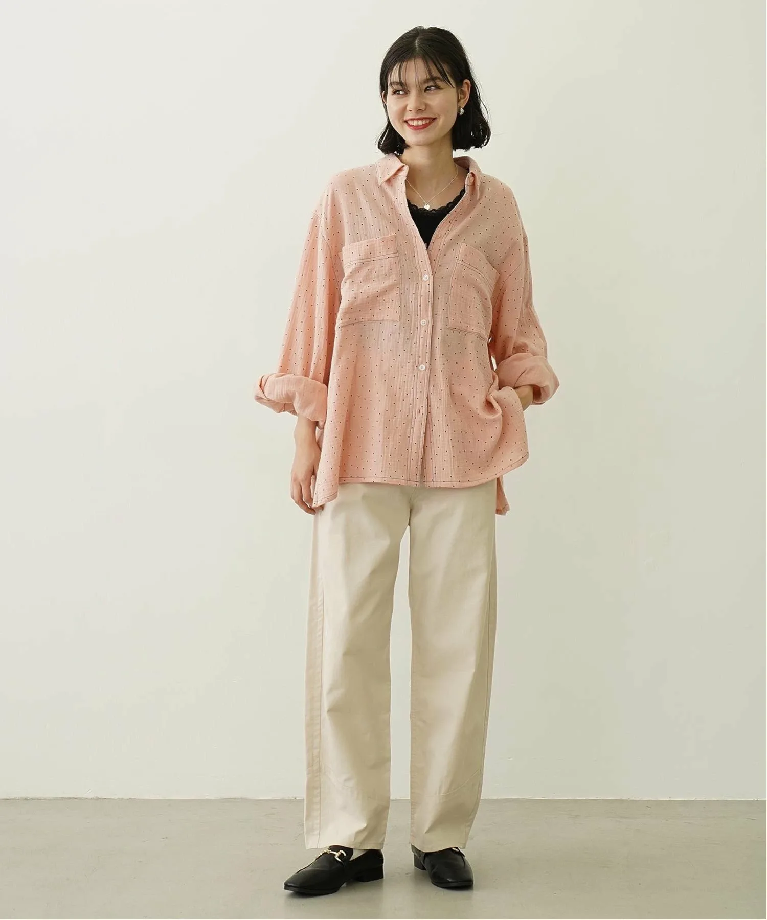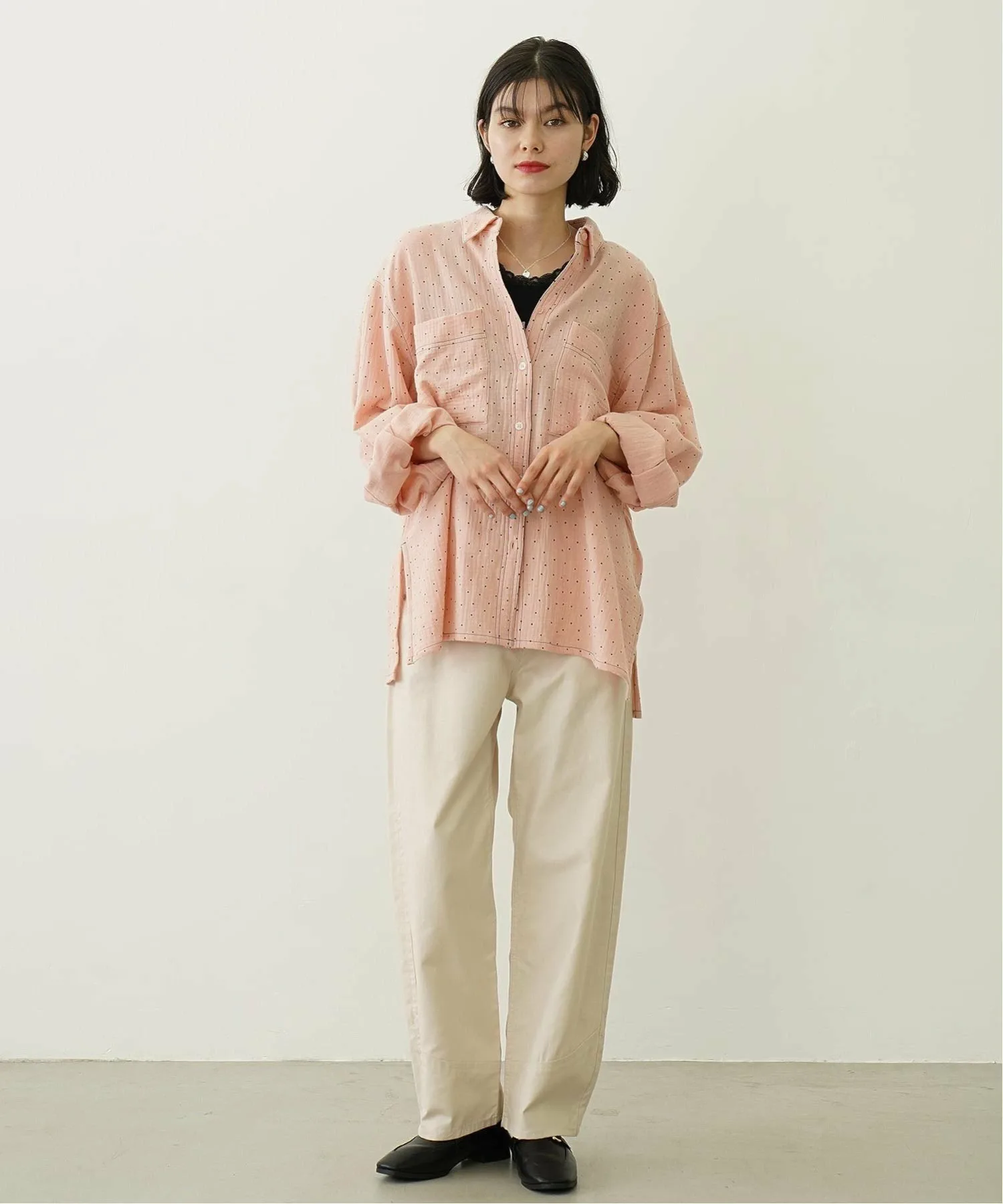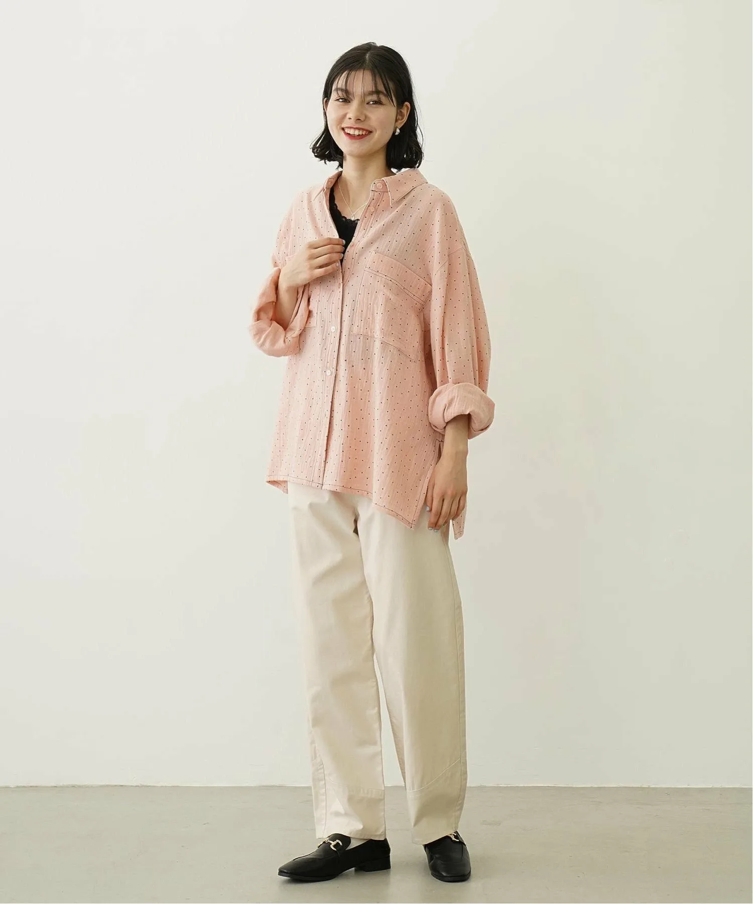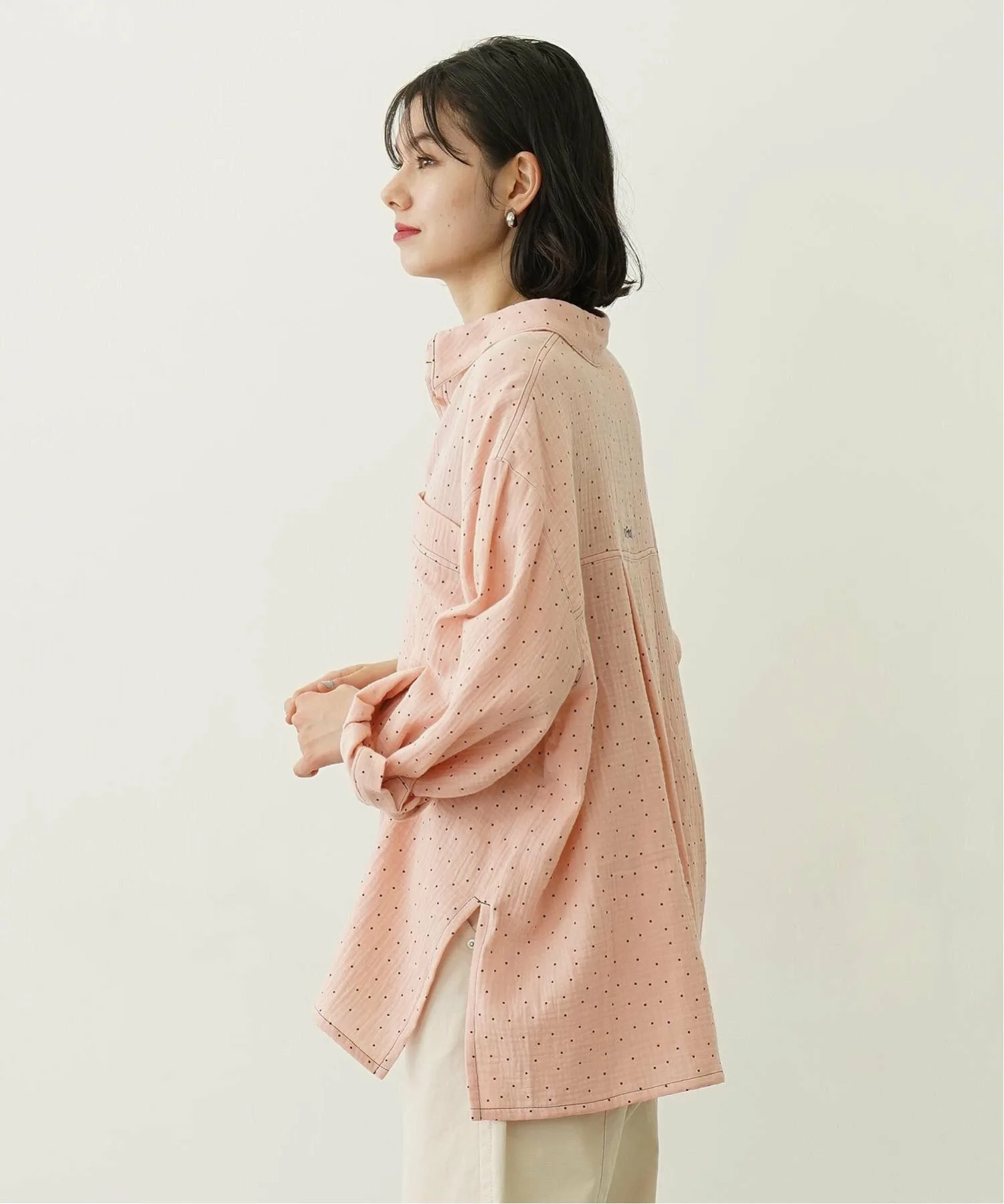 Рубашка оверсайз из марли в горошек.