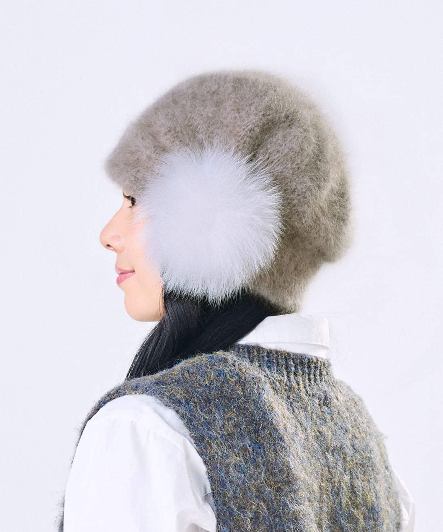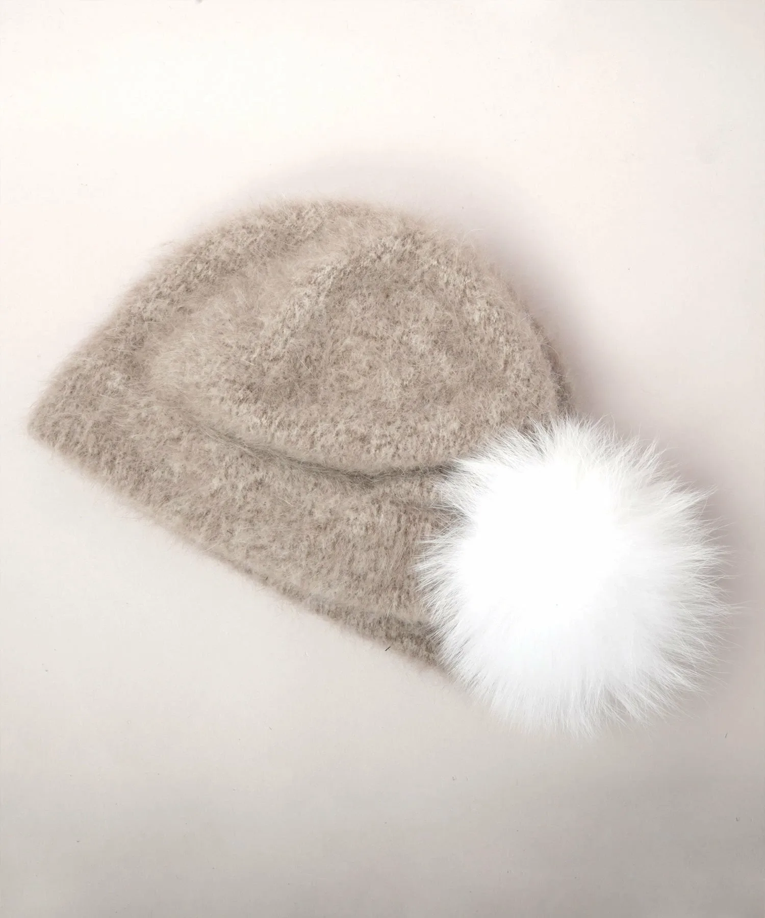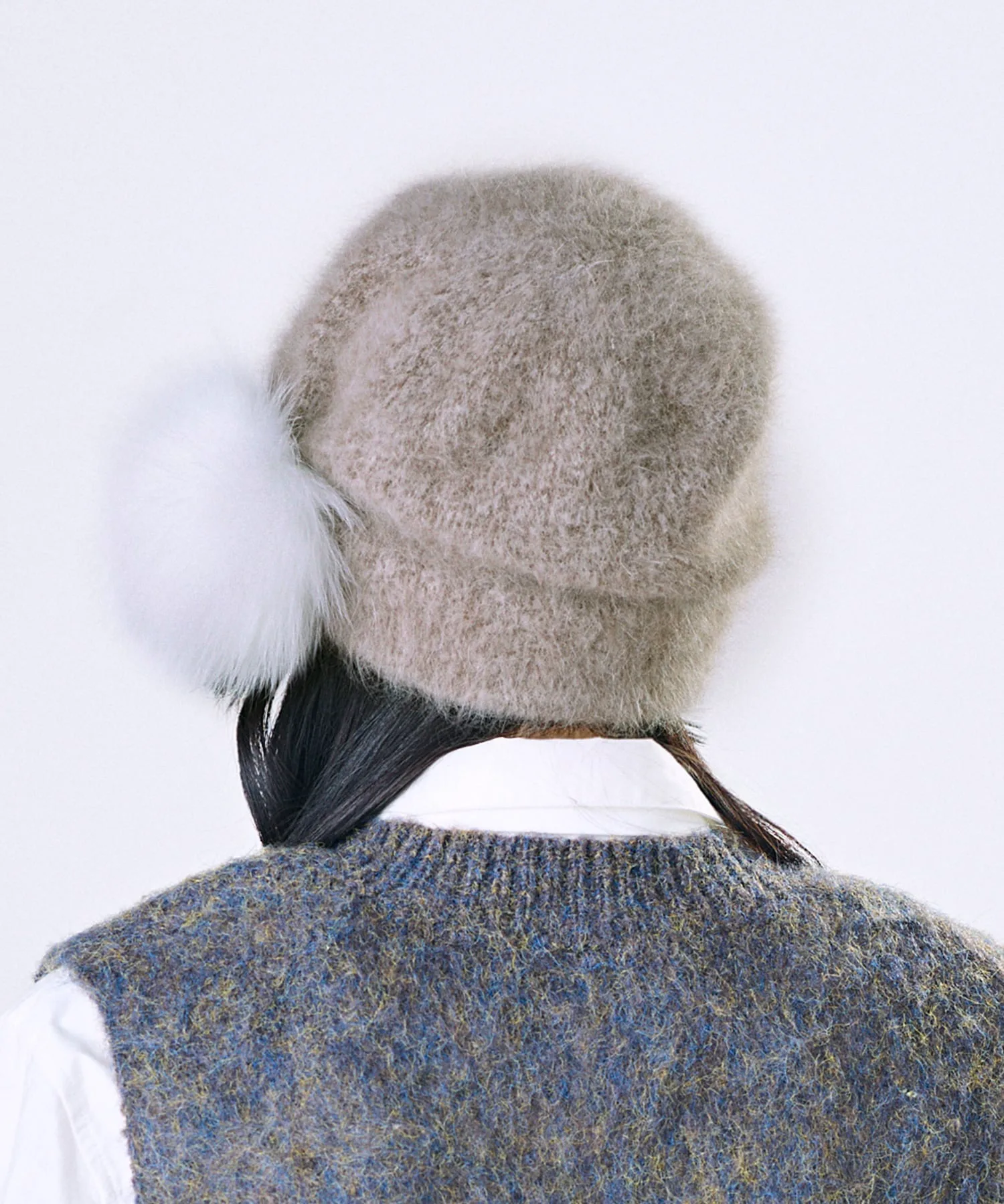 Ангоровый трикотаж, украшенный помпоном из лисьего меха.