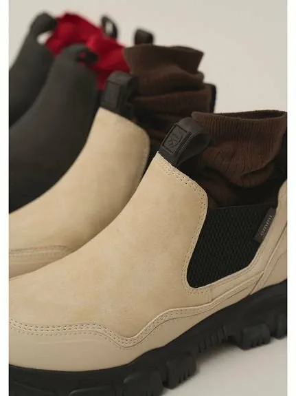 Короткие ботинки челси от SHAKA имеют водоотталкивающий и огнестойкий верх, обеспечивающий комфортную посадку. Оснащенные высокоцепкой подошвой AT и стелькой SHAKA IN-FOAM, они обещают ощущение кроссовок, несмотря на то, что это ботинки. В этом сезоне они доступны в специальной серии эксклюзивных цветов emmi: светло-бежевый и темно-серый. Ненавязчивое двойное название emmi и SHAKA добавляет акцент.