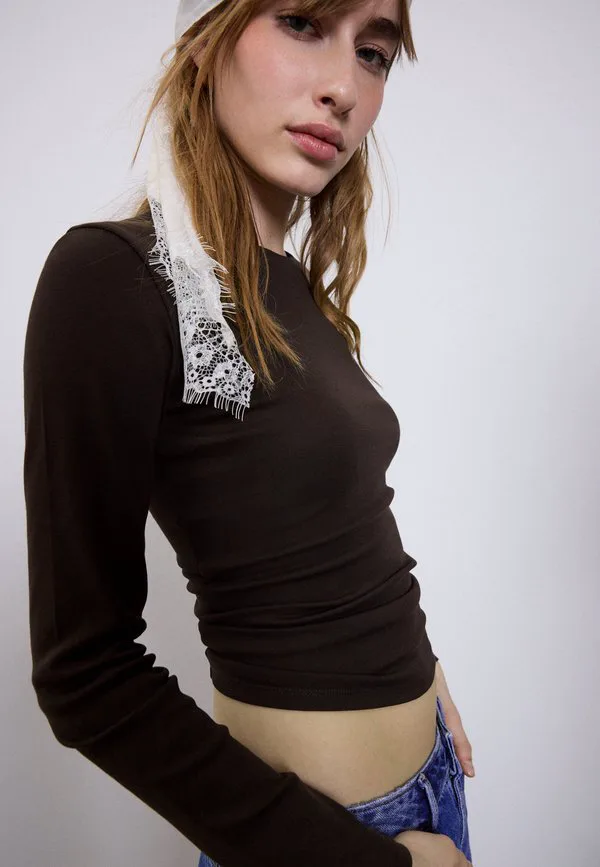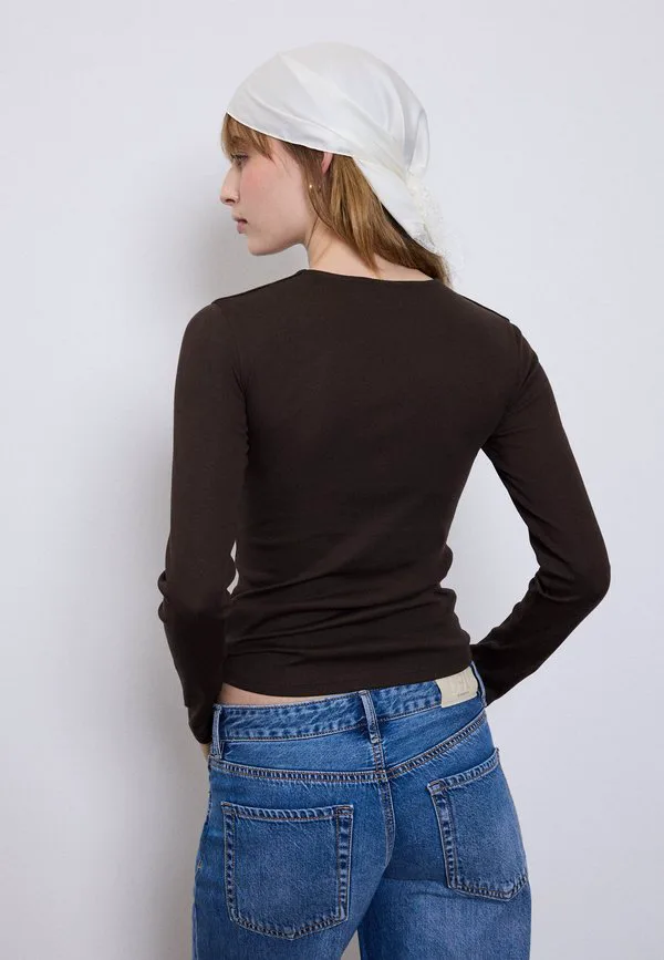 Топ с длинными рукавами Stradivarius, Mottled Brown