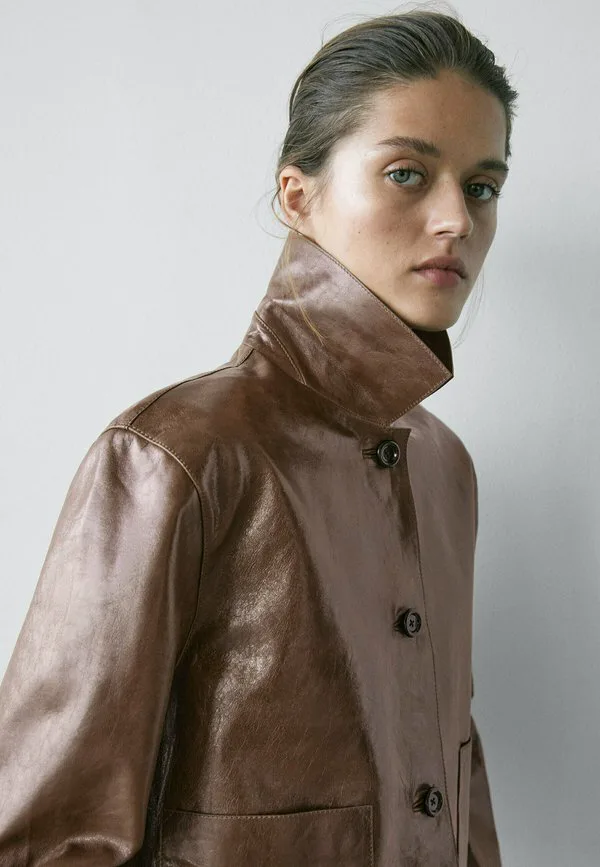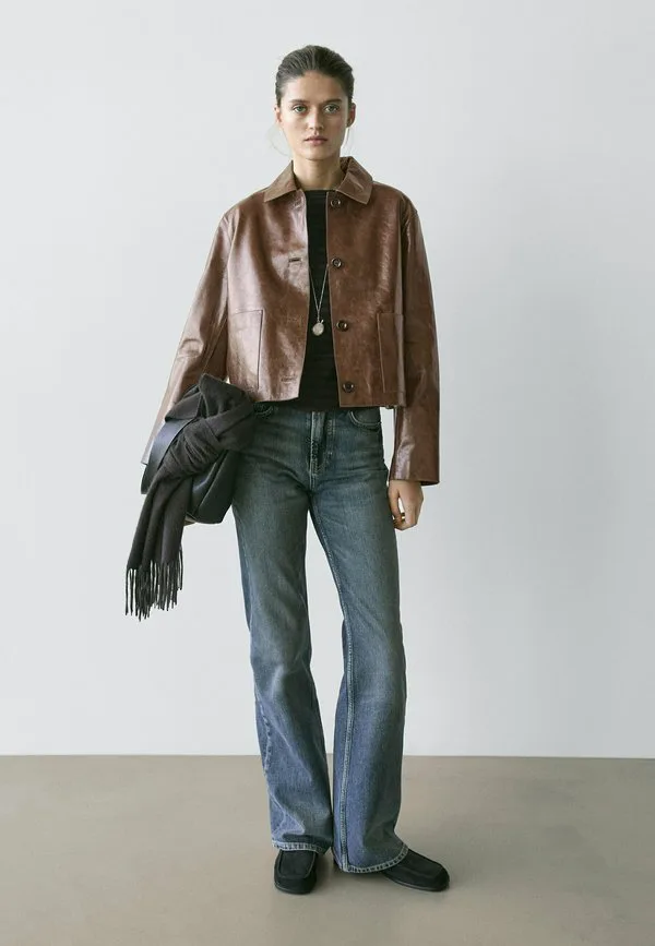 Укороченная кожаная куртка Massimo Dutti, Mottled Brown