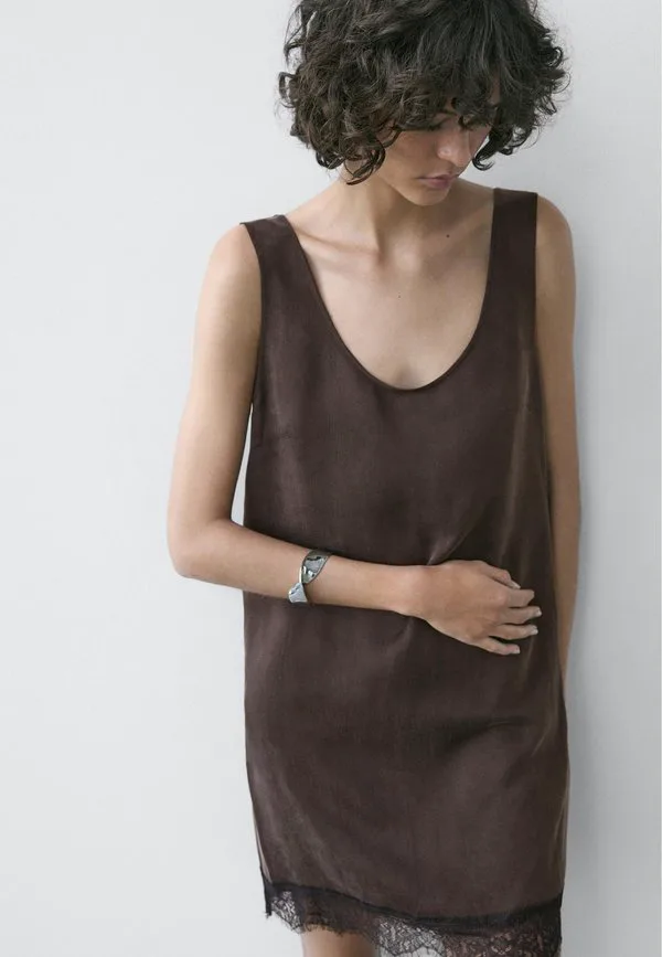 Струящееся повседневное платье Massimo Dutti, Mottled Dark Brown
