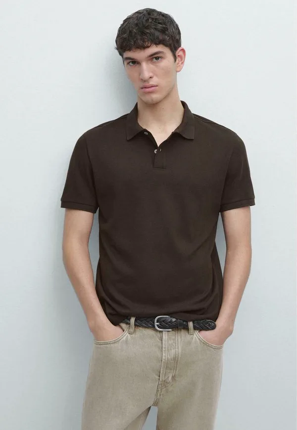 Рубашка-Поло с микротекстурой Massimo Dutti, Mottled Dark Brown