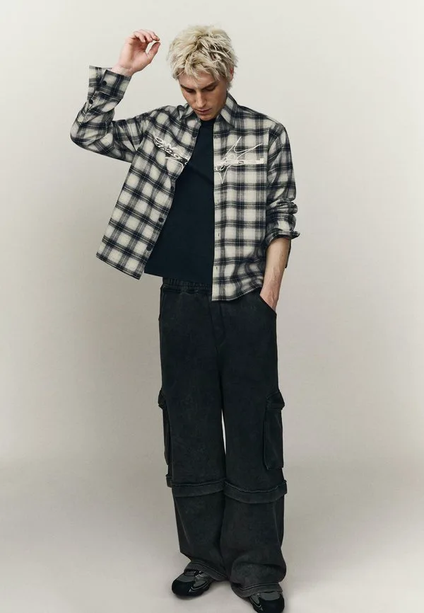 Рубашка с длинным рукавом Bershka, Mottled Dark Grey
