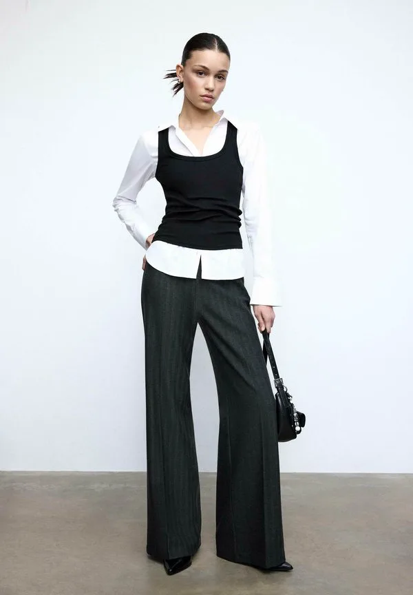Свободные элегантные брюки Stradivarius, Mottled Dark Grey