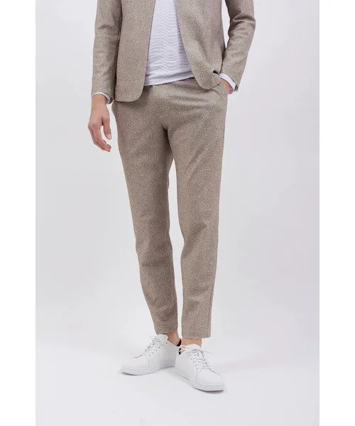 Эти удобные брюки изготовлены из эластичного трикотажа, растягивающегося в четырех направлениях, с принтом в виде мешковины. Высокодышащая сетчатая структура обеспечивает приятное ощущение на коже и комфортную посадку. Мы также рекомендуем сочетать их с пиджаком из того же материала.