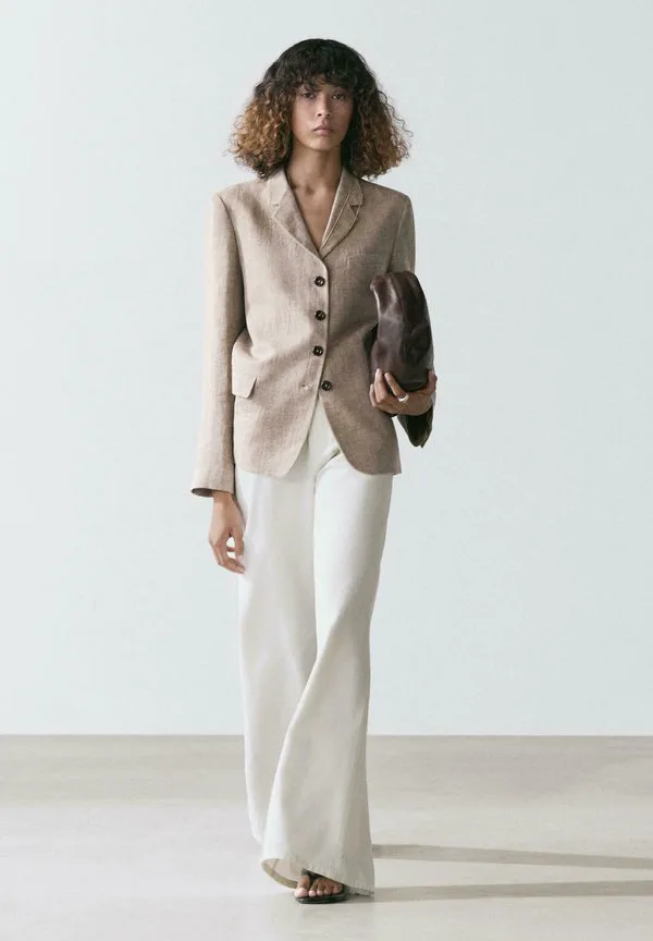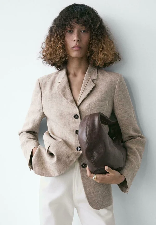 Меланжевый блейзер Massimo Dutti, Mottled Light Brown
