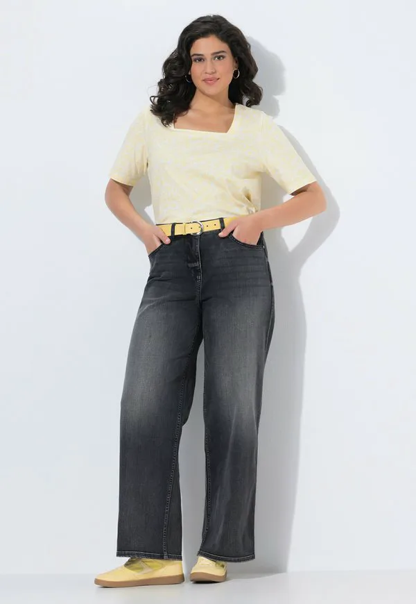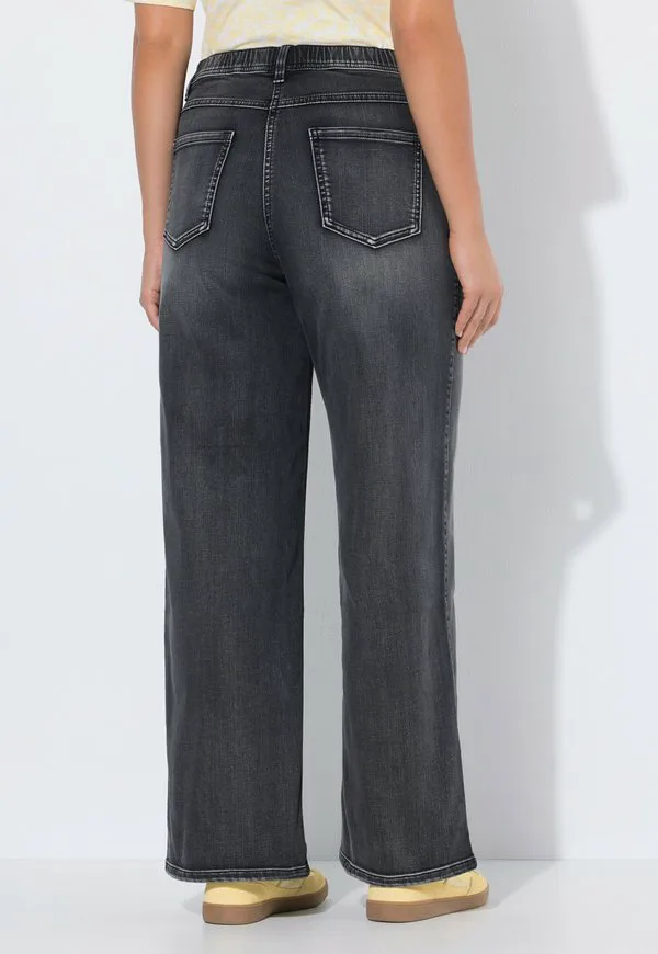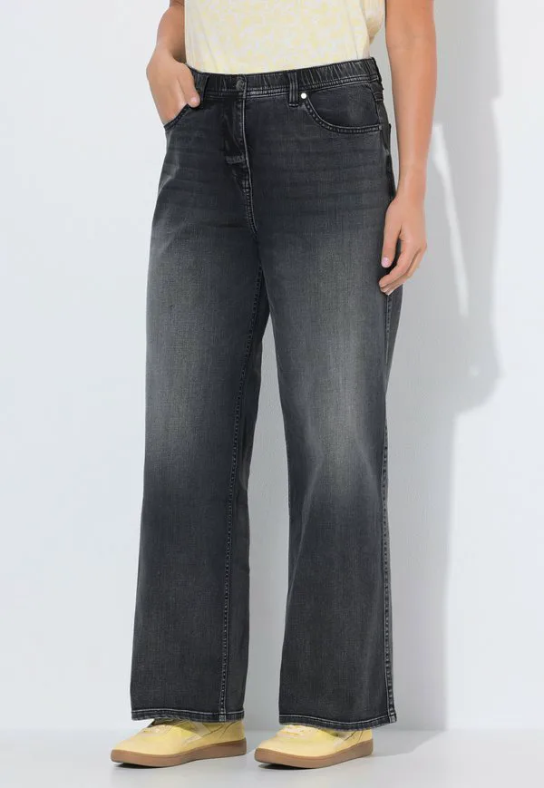 Эластичные, 5 карманов, широкие штанины Ulla Popken, Black