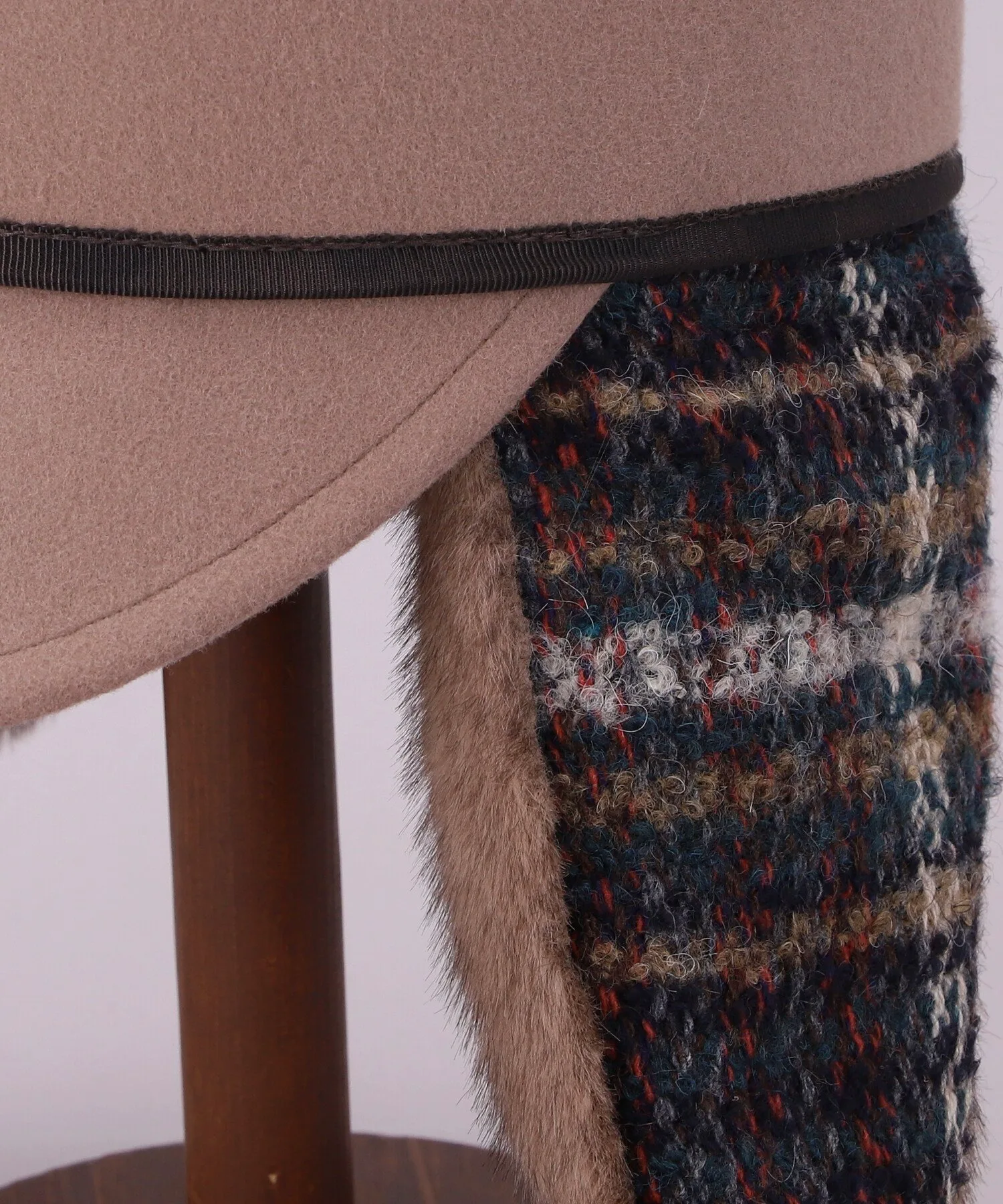 Ушки сочетают в себе клетчатый узор, идеально подходящий для осени и зимы, с мехом. Окантовка по краю добавляет завершающий штрих.