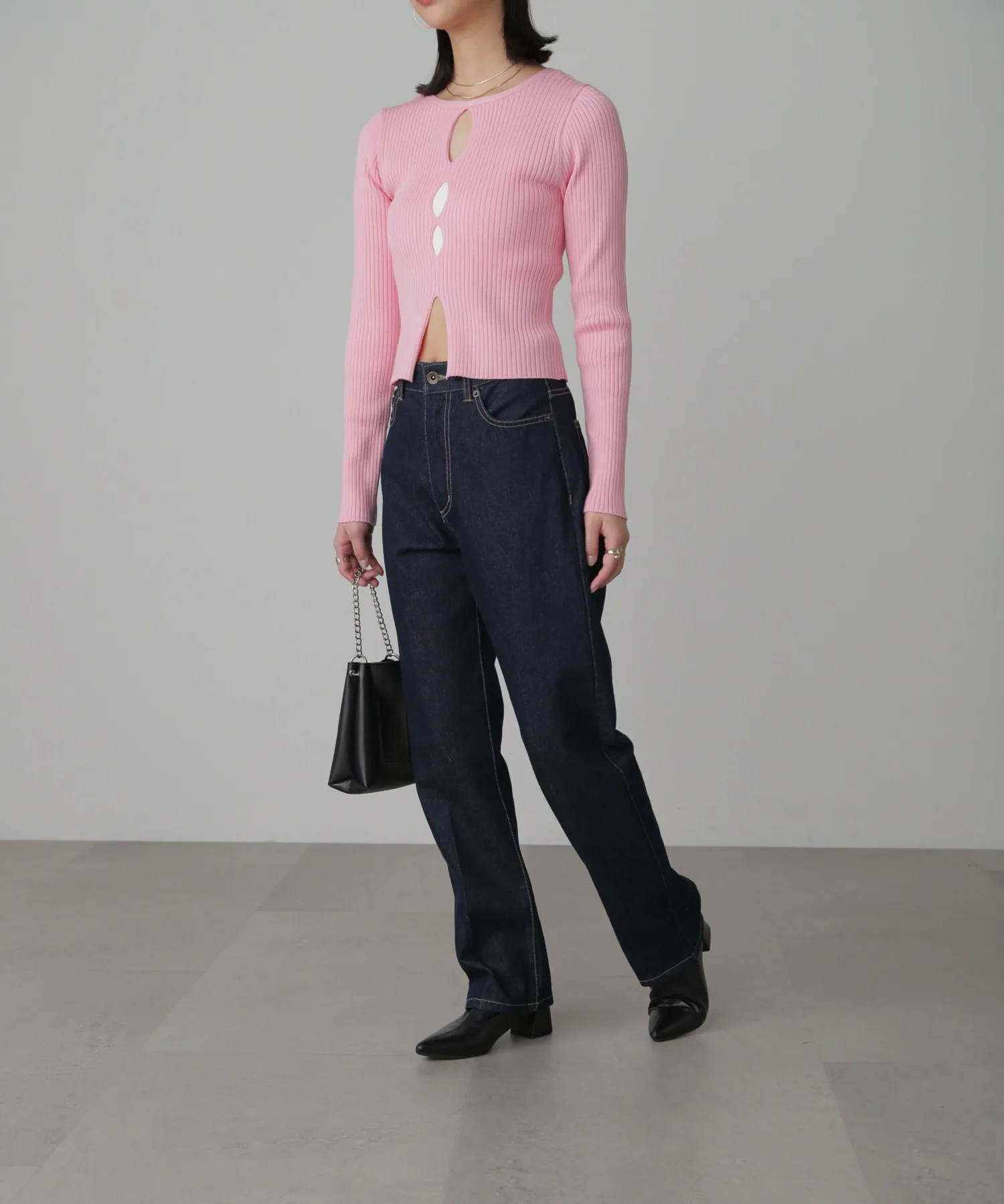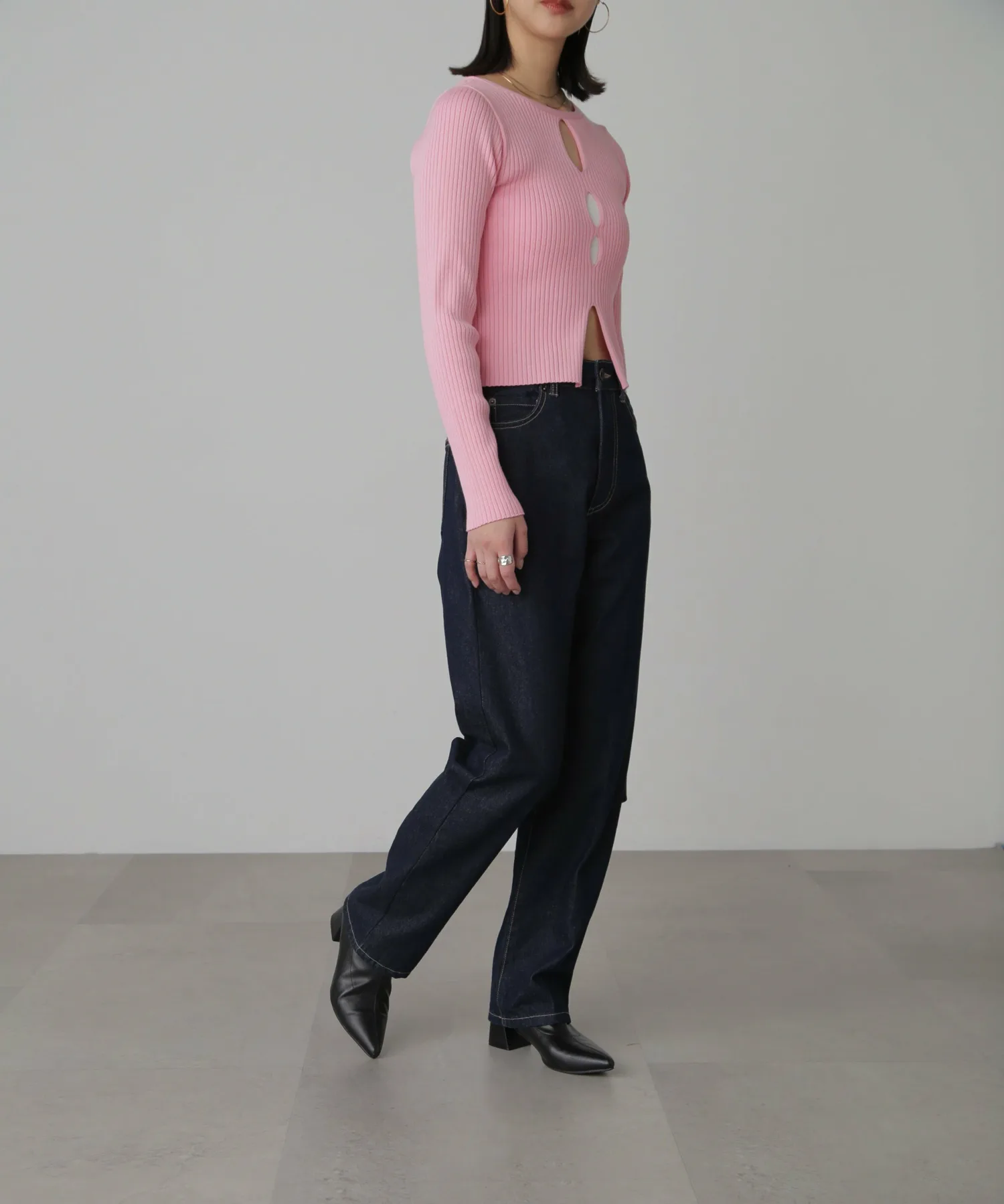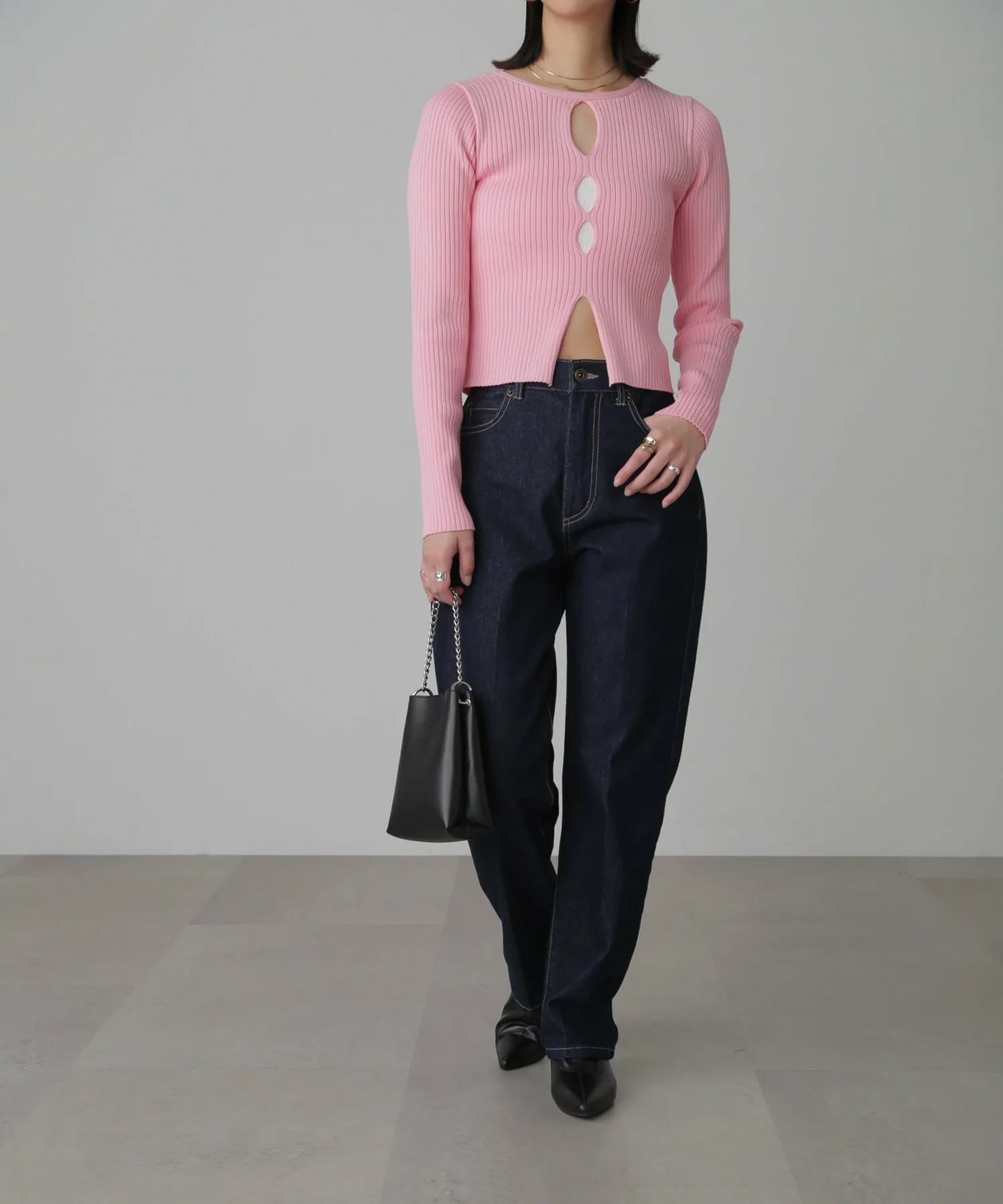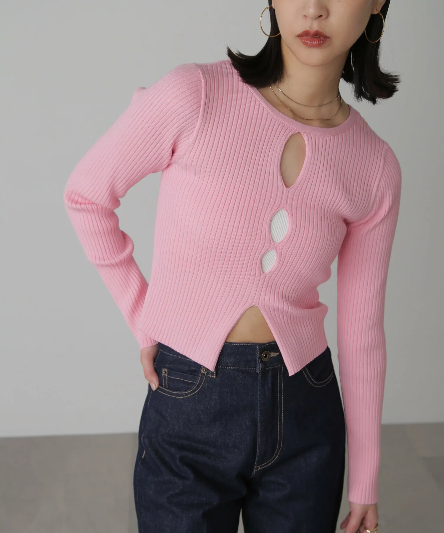 Трикотажная блузка в рубчик с вырезами в качестве изюминки. Изготовлена из плотного, похожего на хлопок трикотажа в рубчик. Слегка более плотная резинка добавляет текстуру и имеет оптимальную толщину. Стильные вырезы добавляют акцент и могут носиться как спереди, так и сзади, что делает ее отличным выбором. Мы рекомендуем носить вырезы спереди и надевать под блузку прозрачный внутренний слой! Умеренно облегающий силуэт делает ее привлекательной в сочетании с широкими брюками, джинсами или брюками-карго.