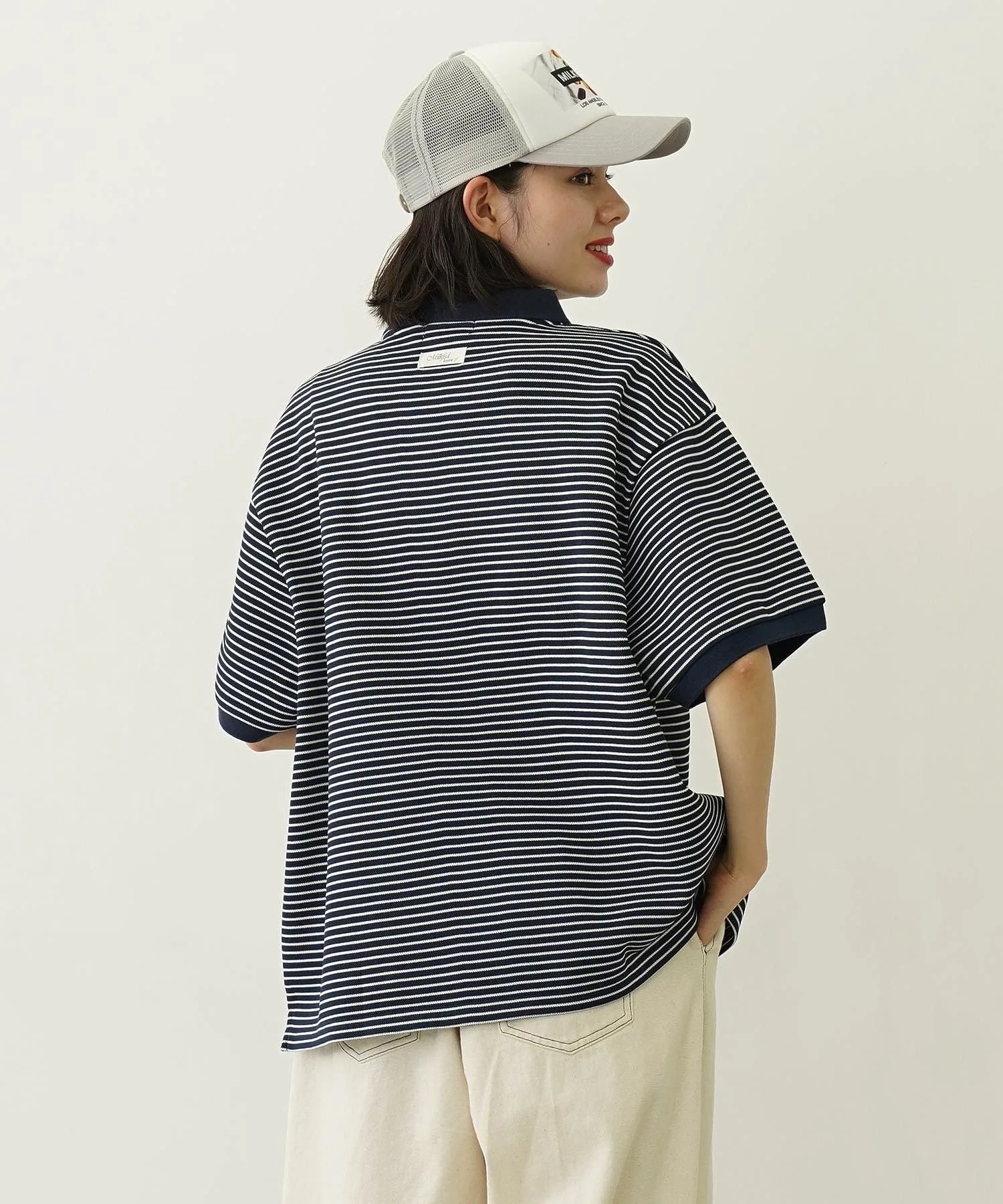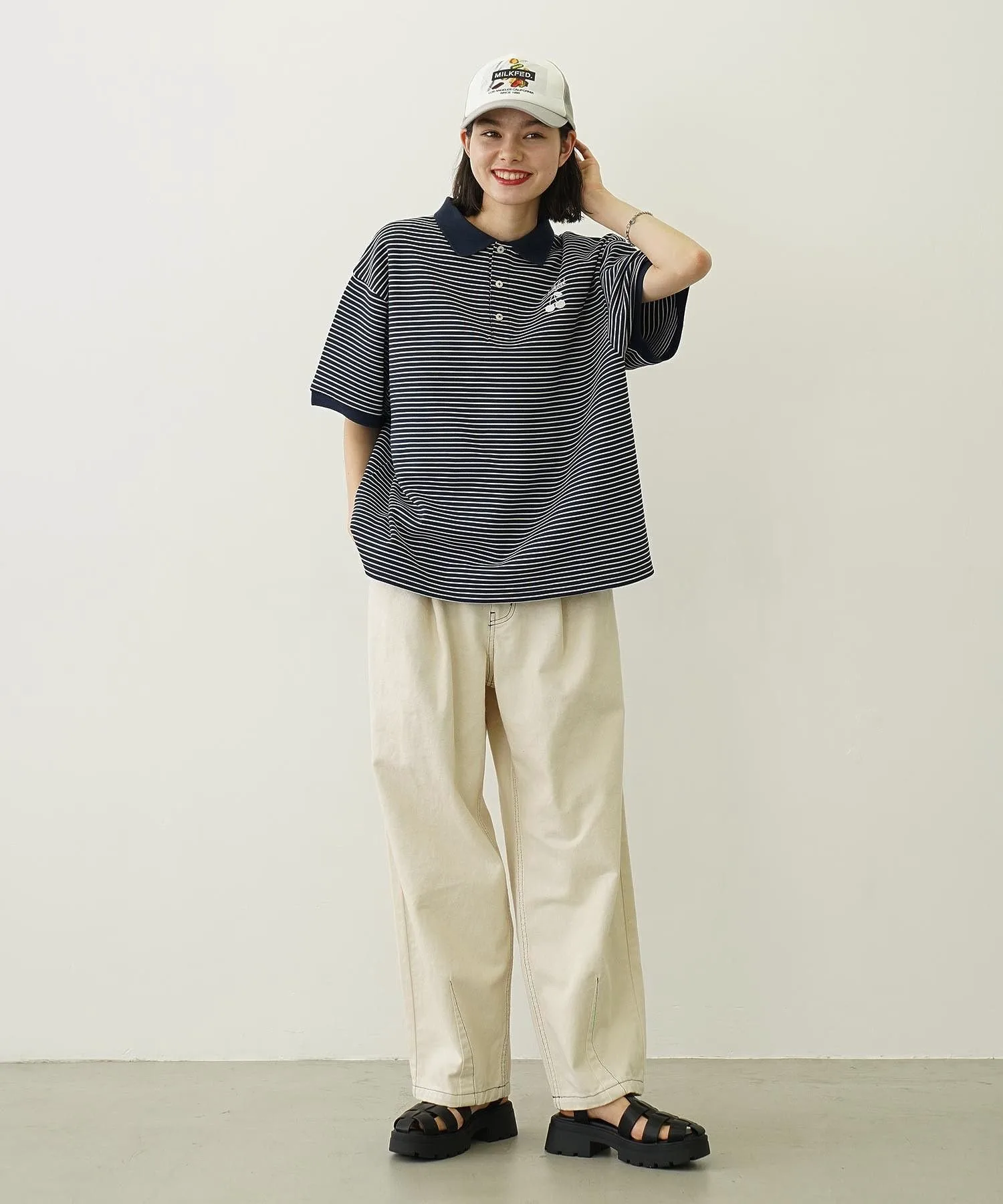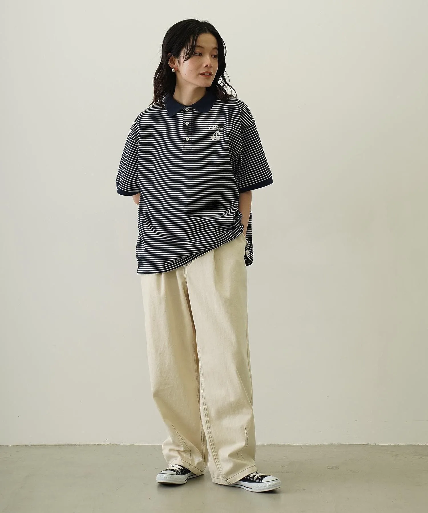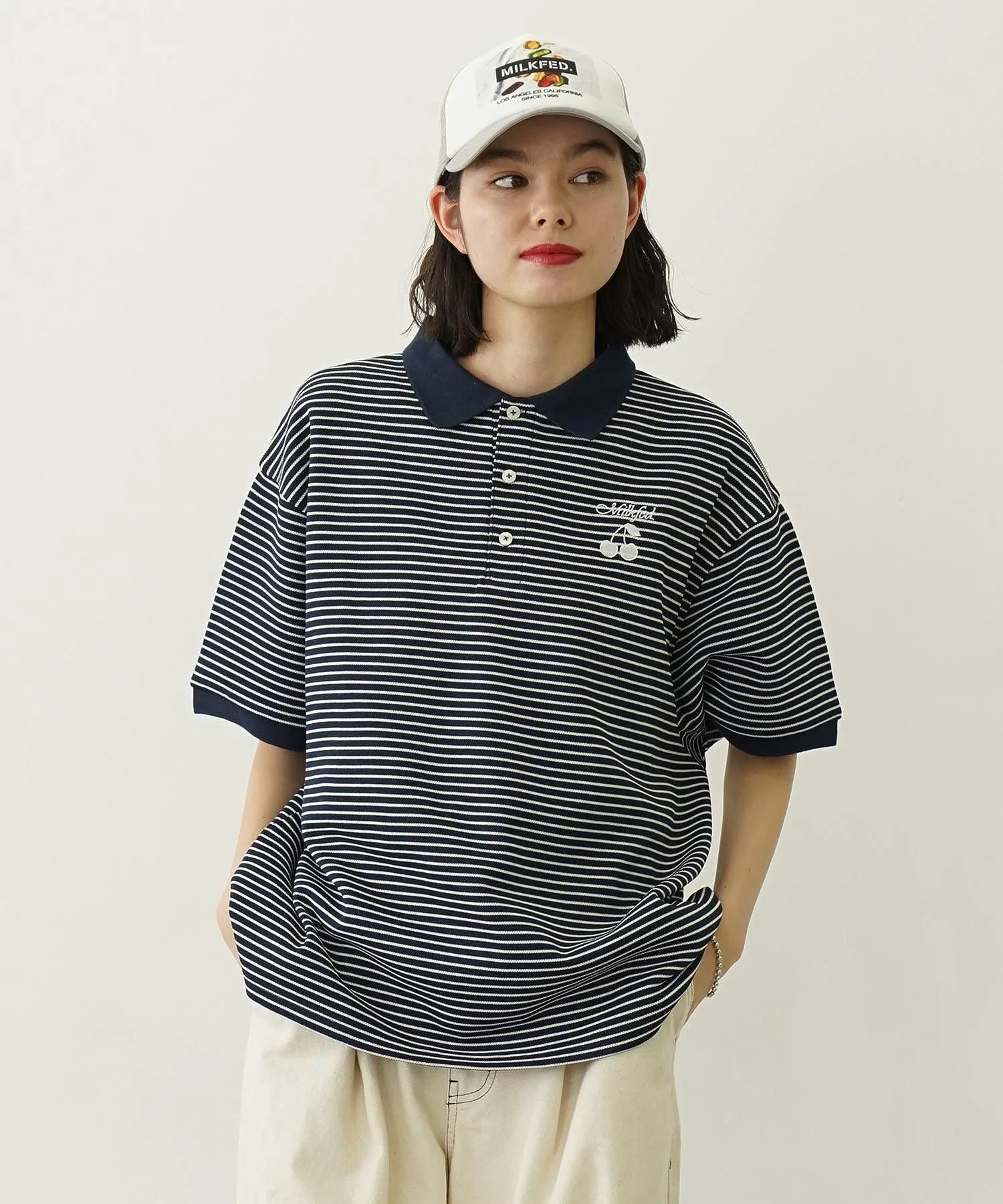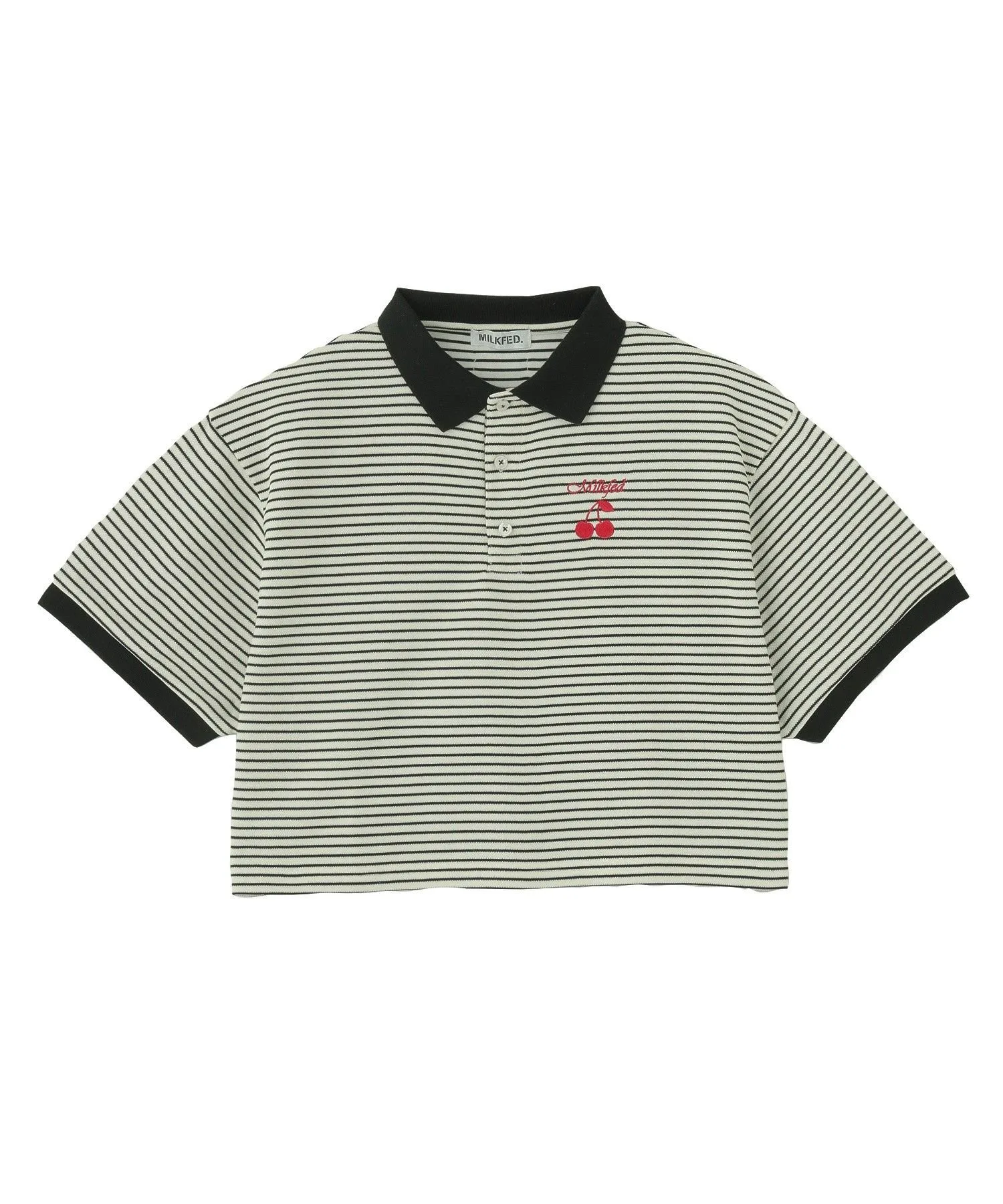 Полосатая рубашка-поло с вышивкой в виде вишен.