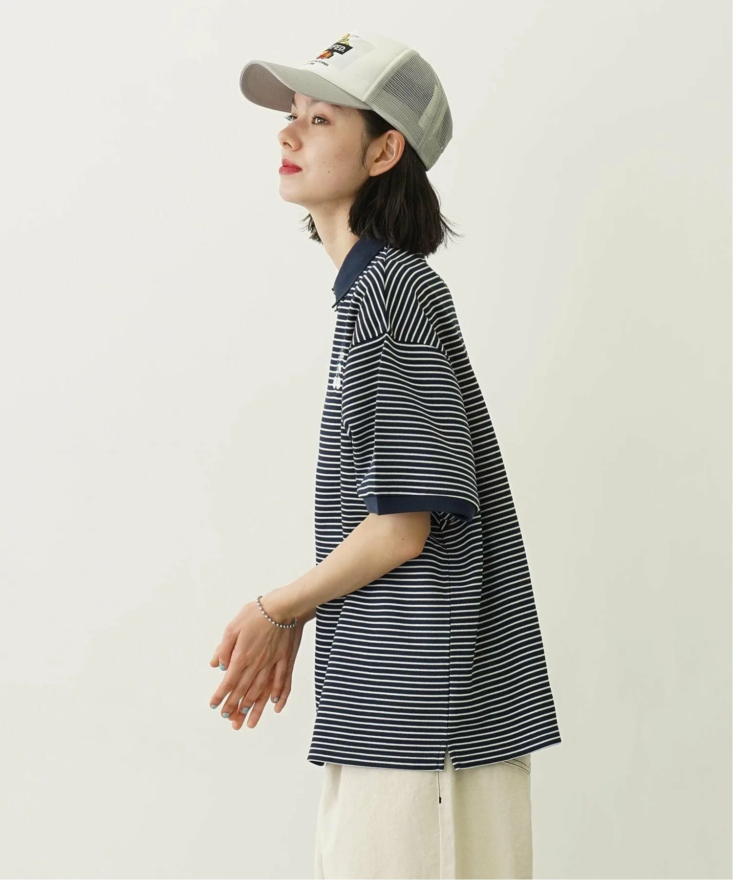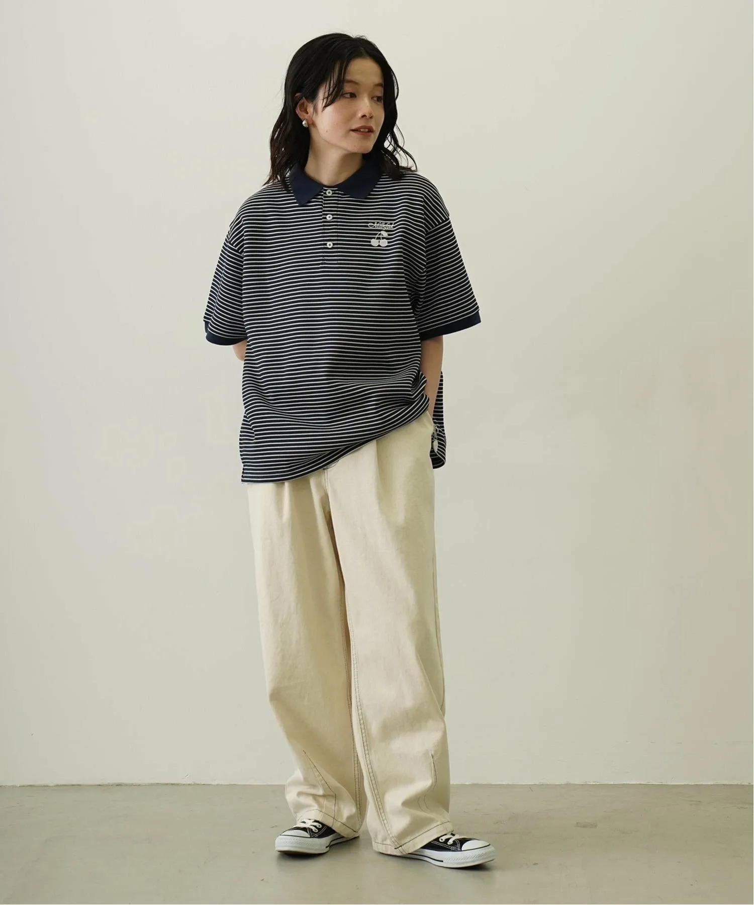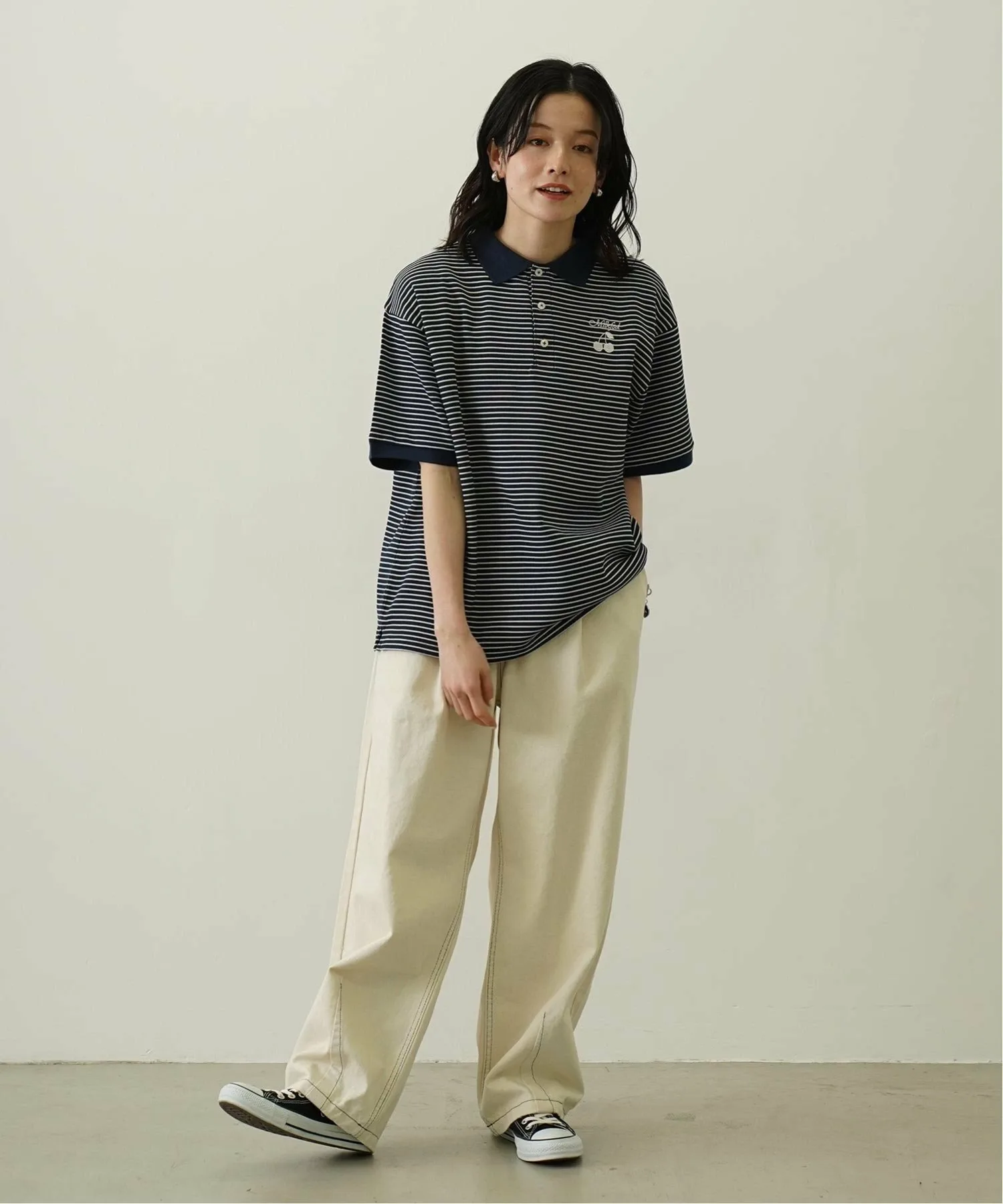 Полосатая рубашка-поло с вышивкой в виде вишен.