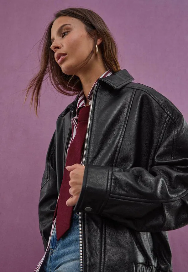 Кожаная куртка Stradivarius, Black 19 376₽