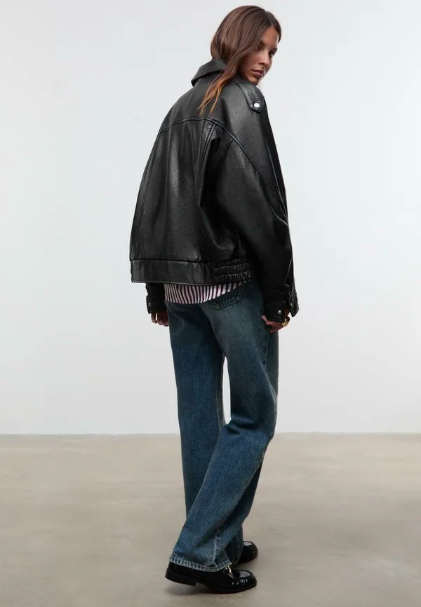 Кожаная куртка Stradivarius, Black