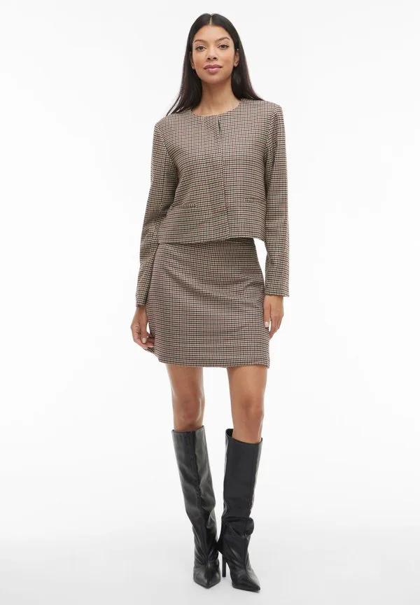 Блейзер Vila, Natural Melangepattern:Houndstooth Black Beauty Cherry Mahogany