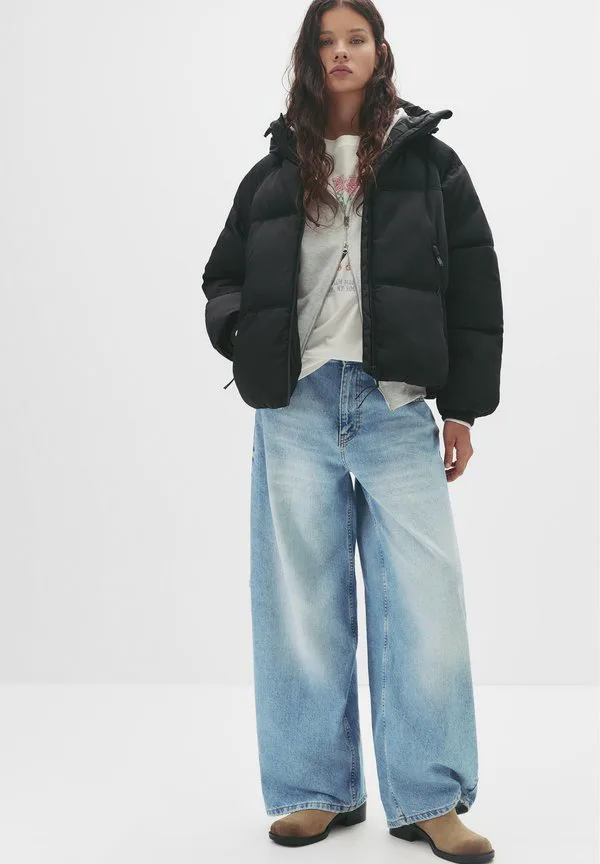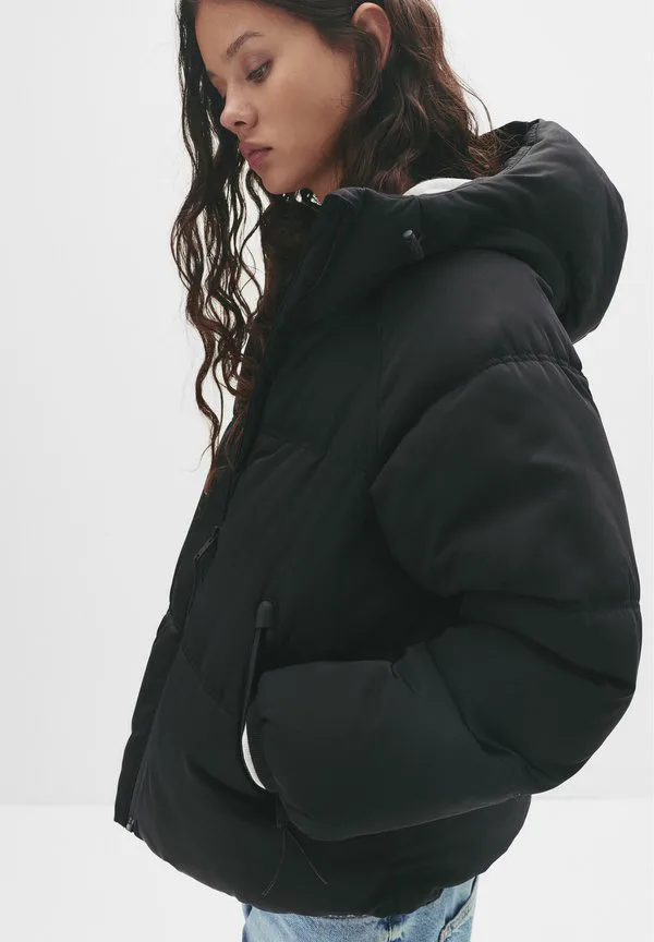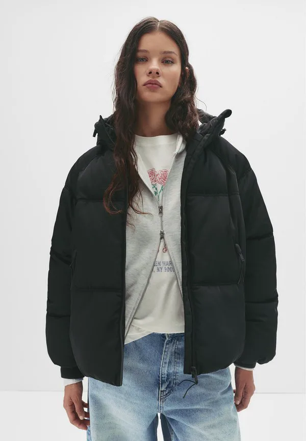 Зимняя куртка-пуховик с капюшоном Pull&Bear, Black