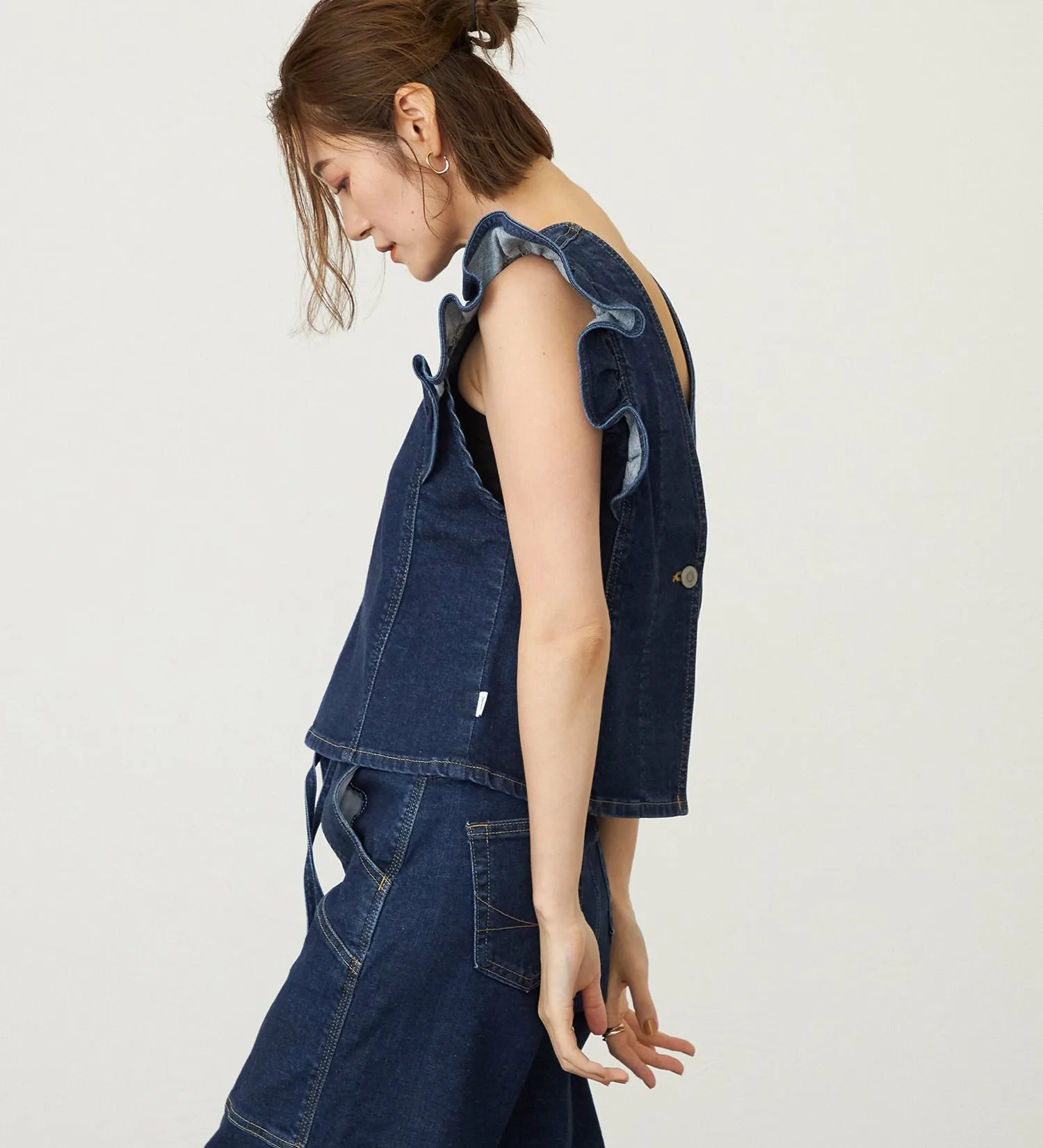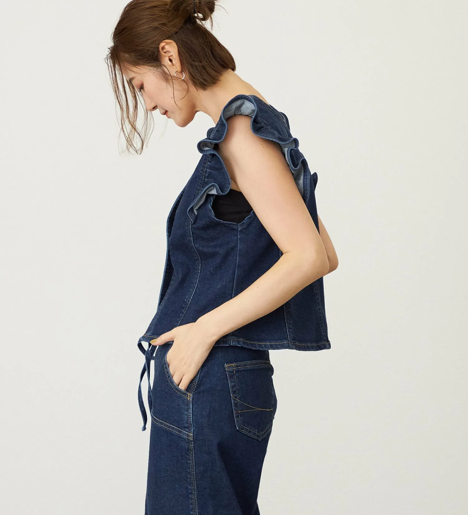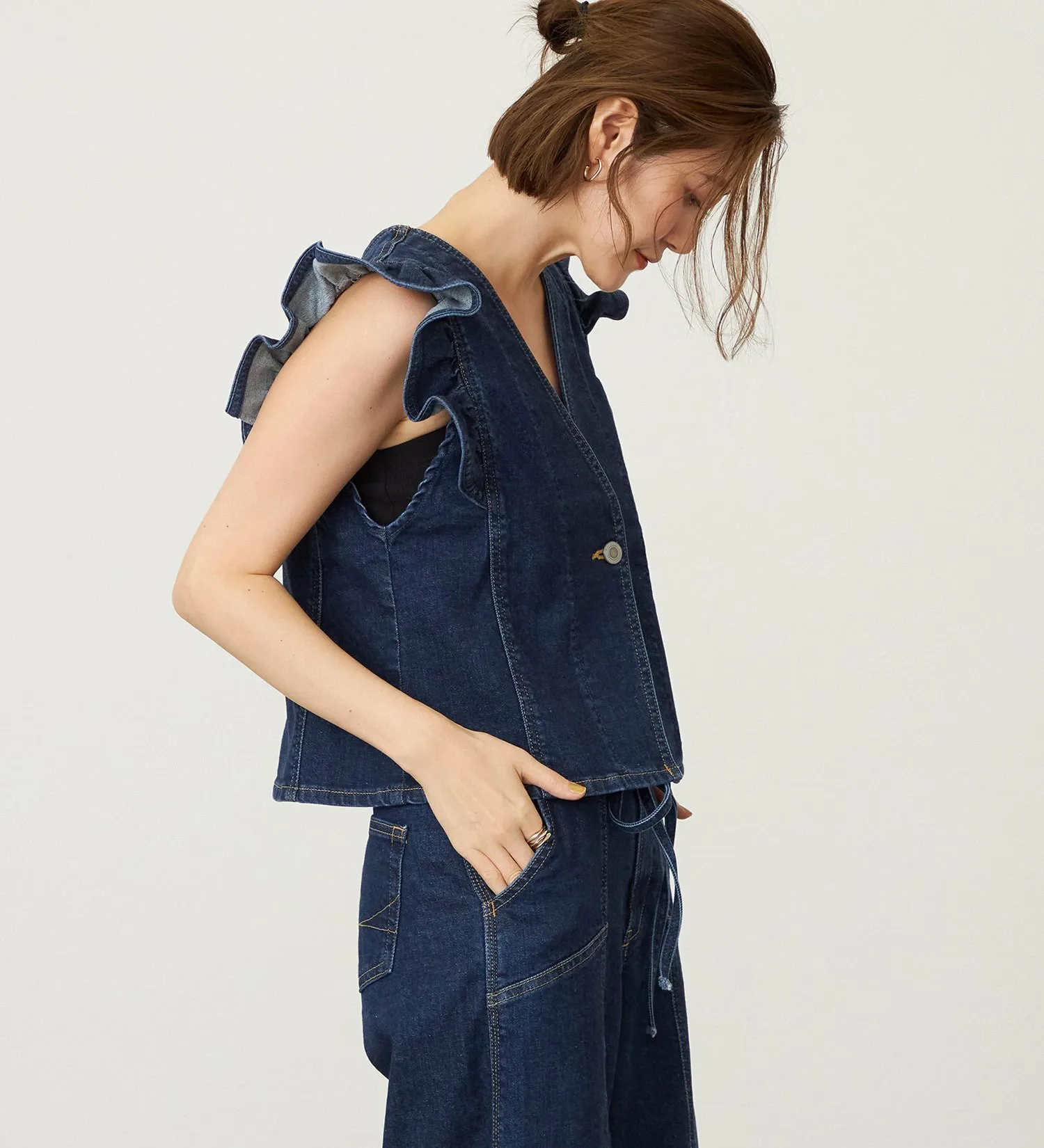Оригинальный деним Something с волокном Tencel растительного происхождения в качестве основы. Его мягкая текстура приятна на ощупь и представляет собой высококачественный, экологически чистый материал. Он также обладает достаточной эластичностью, обеспечивая комфортную посадку.