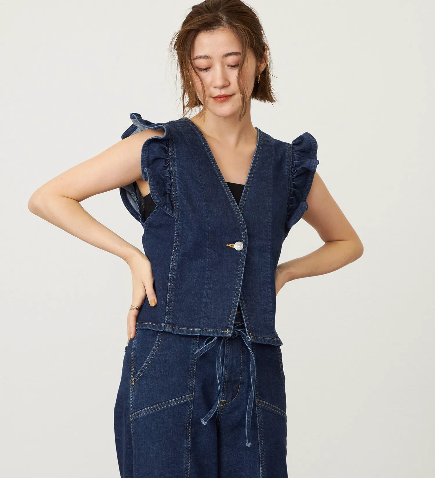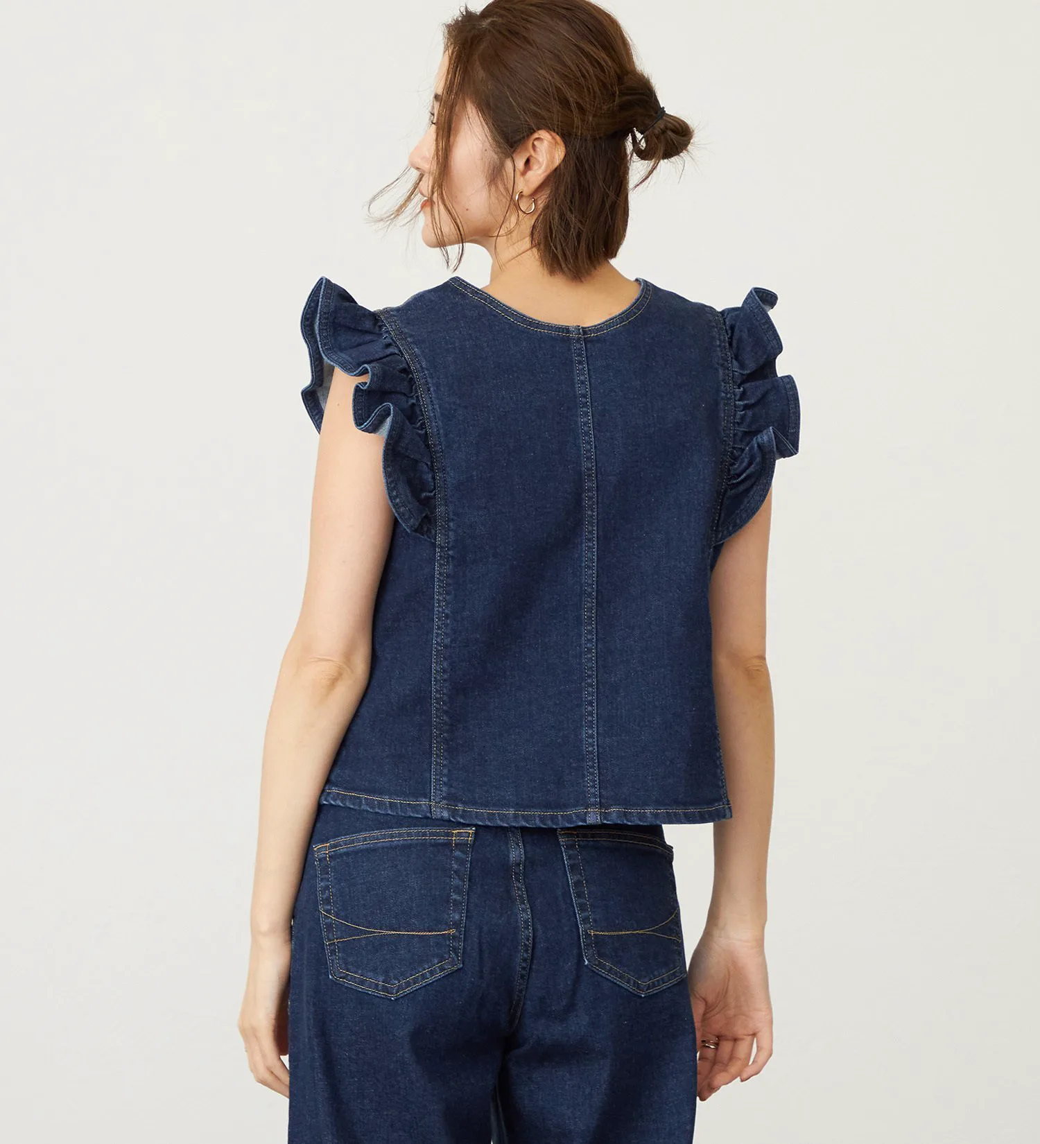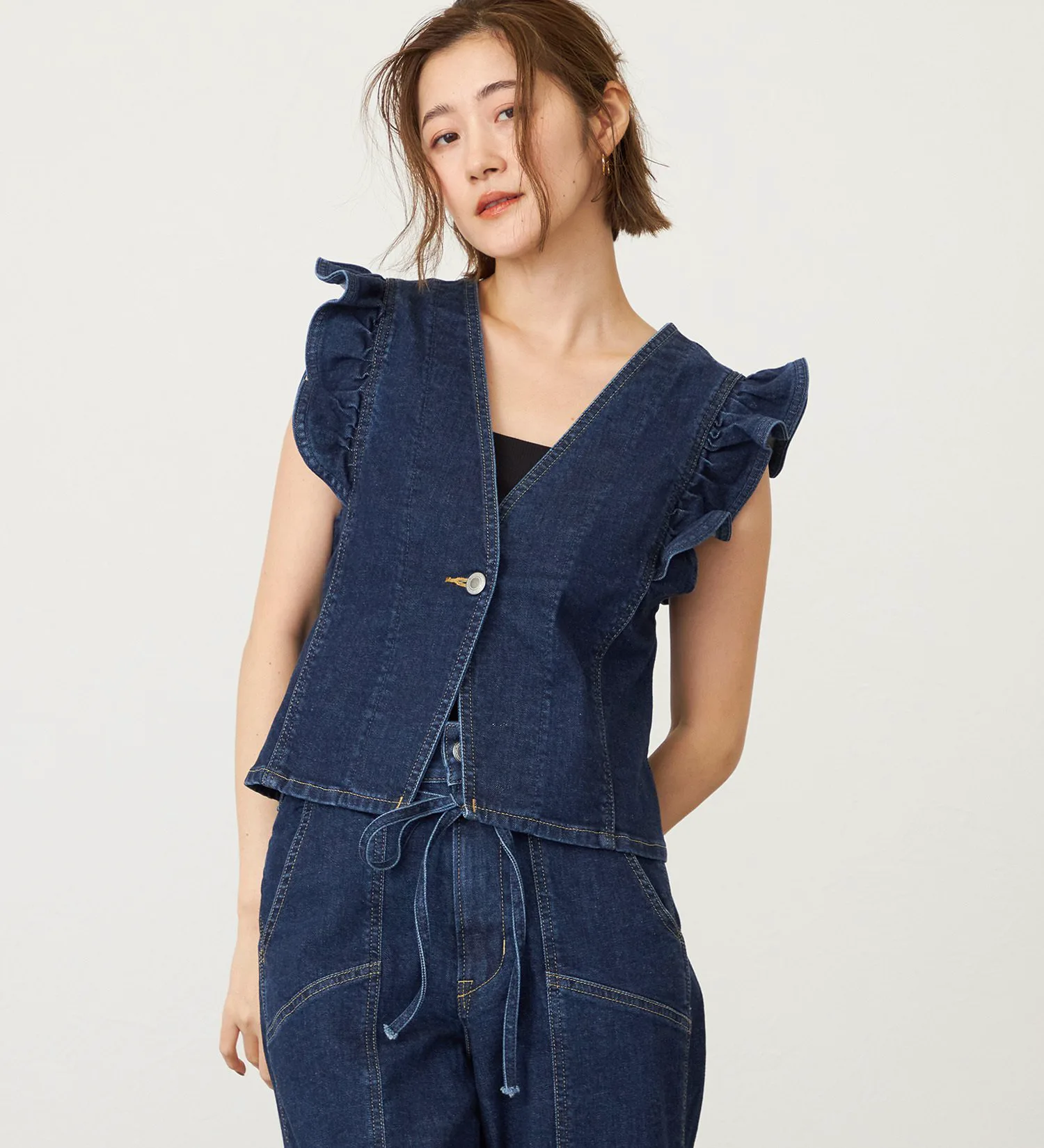 Оригинальный деним Something с волокном Tencel растительного происхождения в качестве основы. Его мягкая текстура приятна на ощупь и представляет собой высококачественный, экологически чистый материал. Он также обладает достаточной эластичностью, обеспечивая комфортную посадку.