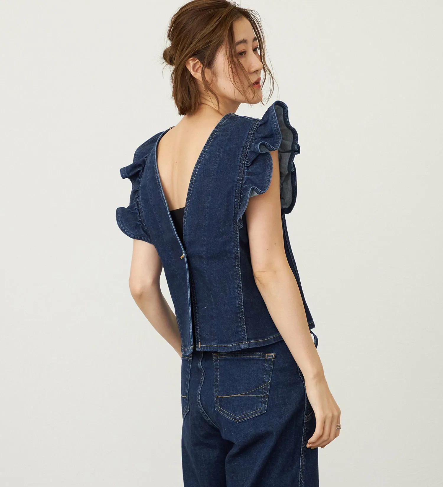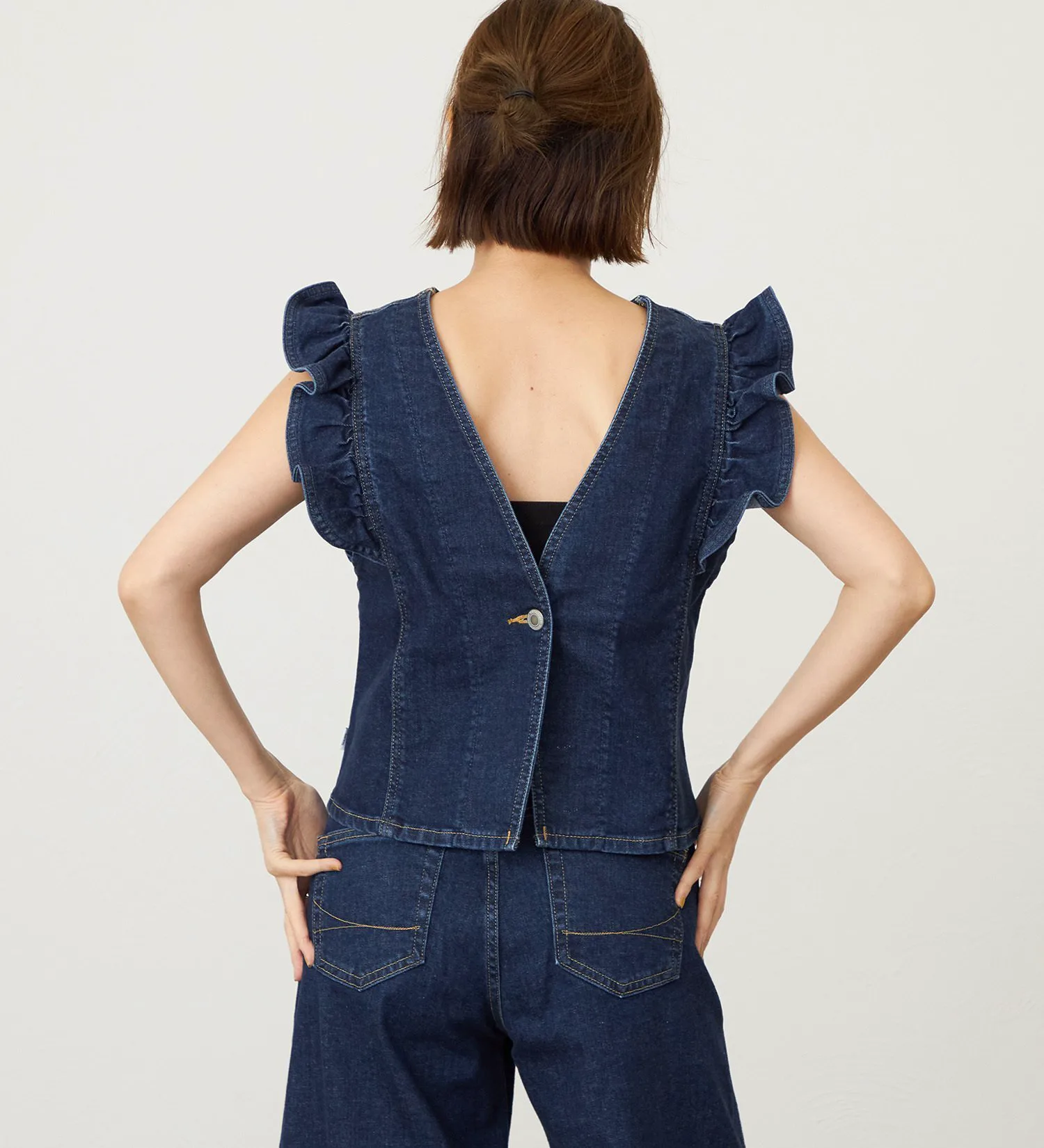 Бюстье с рукавами-воланами, которое можно носить как спереди, так и сзади. Воланы на рукавах добавляют гламурный акцент вашему образу. Узкая ширина плеч создает стройный силуэт, а воланы ненавязчиво прикрывают верхнюю часть рук, которая может вызывать смущение. Дизайн не только симпатичен, но и выгодно подчеркивает фигуру. Очень универсальная вещь, которую можно носить разными способами, чтобы сочетать с низом и настроением дня.