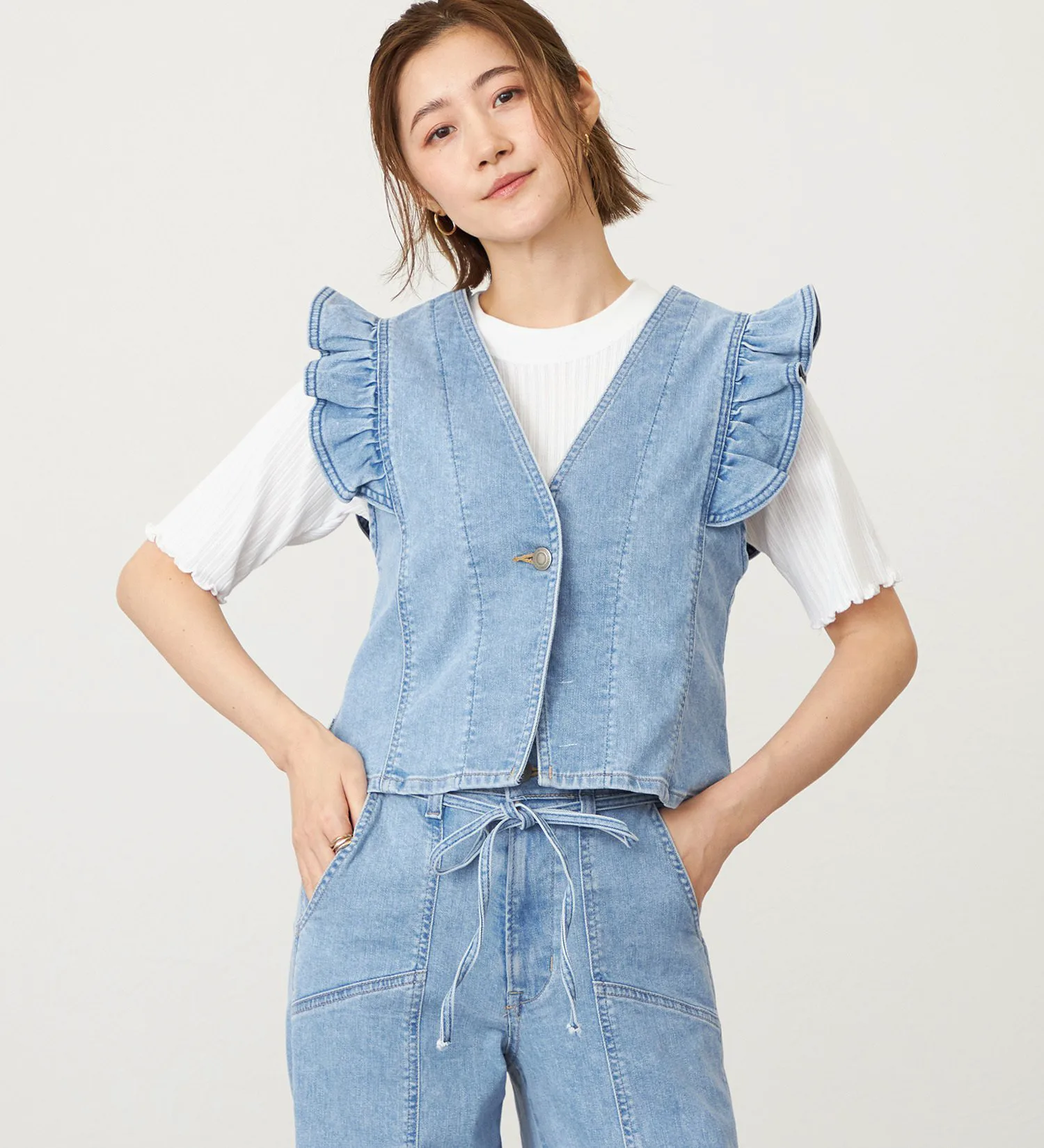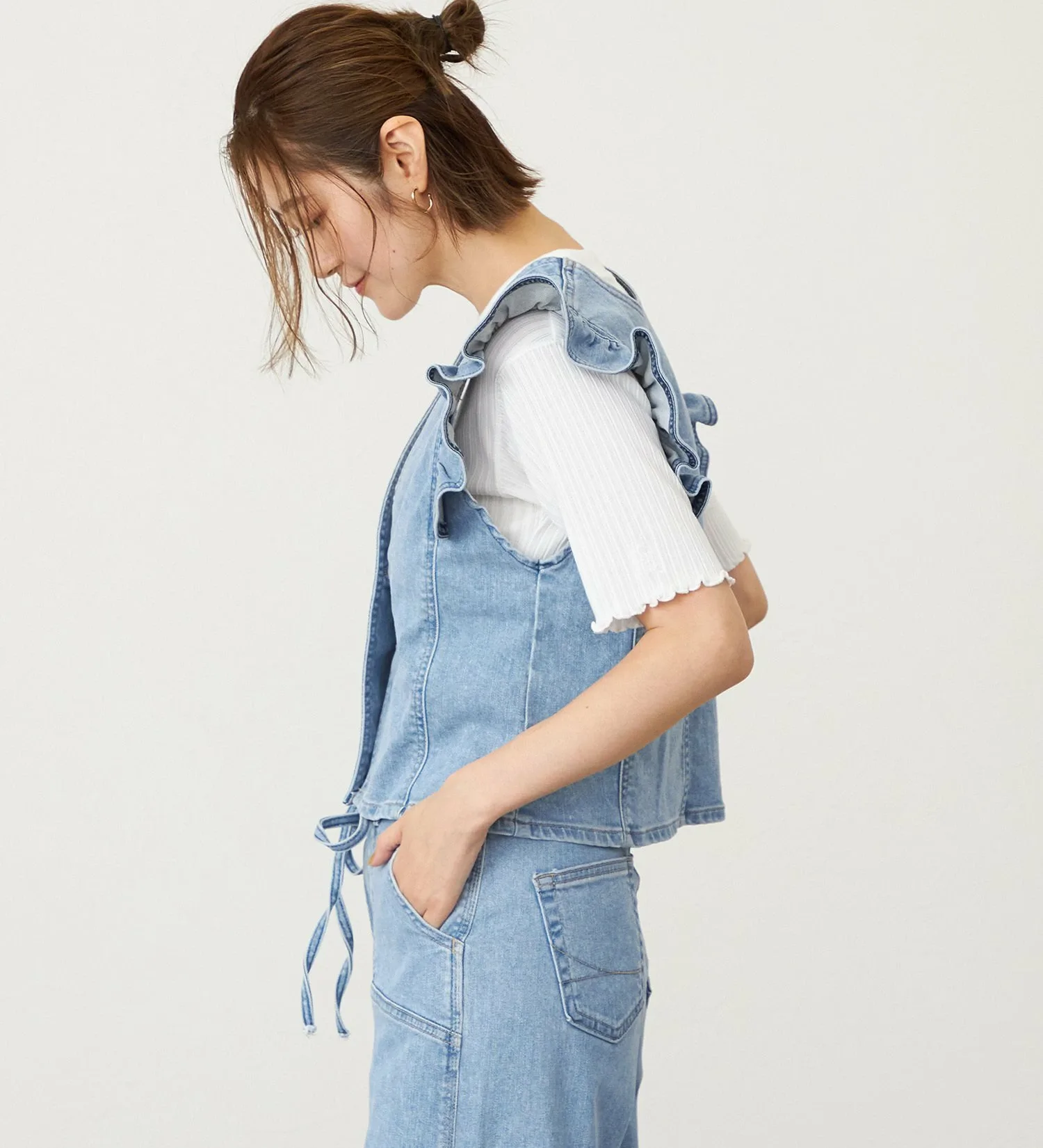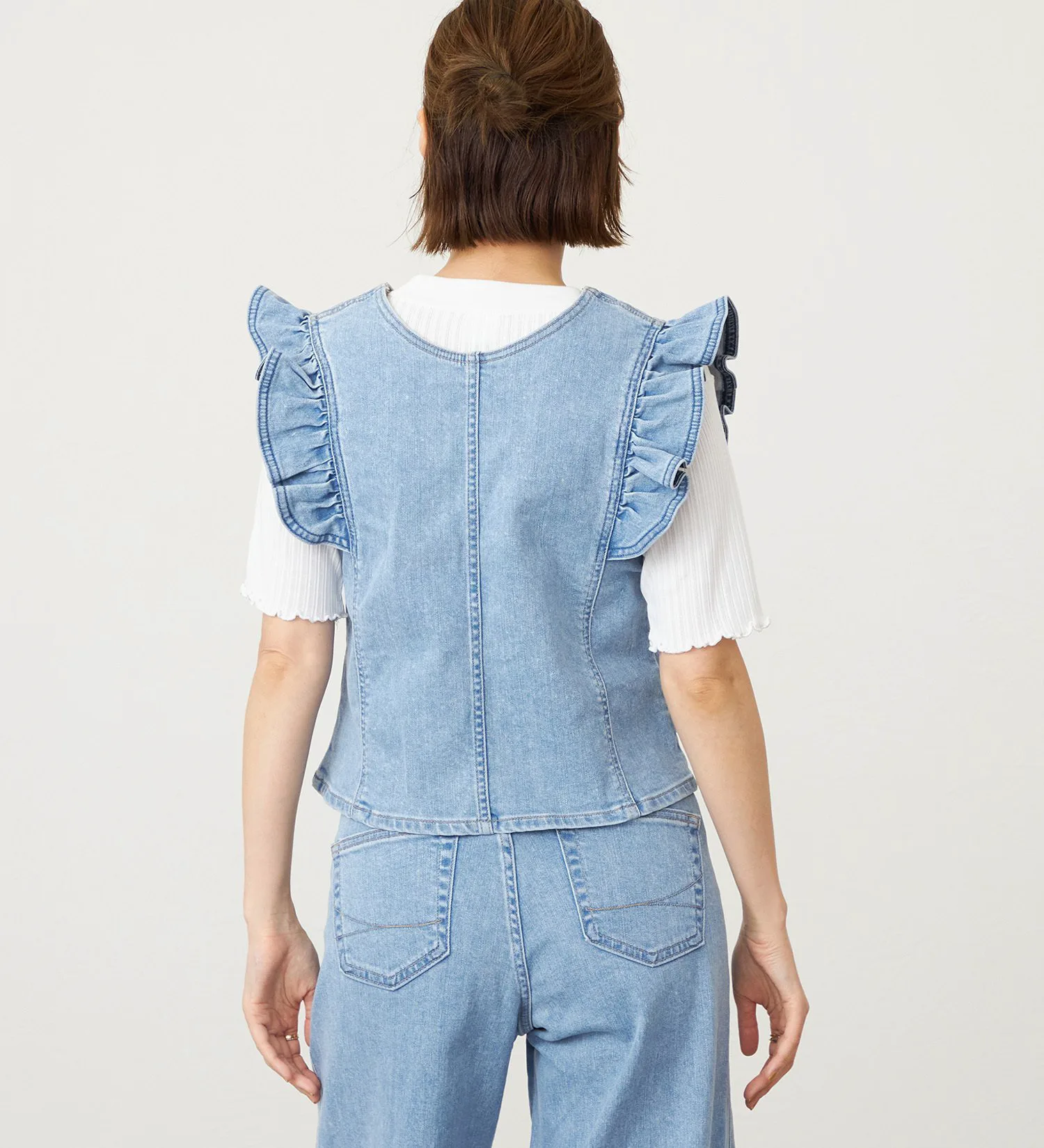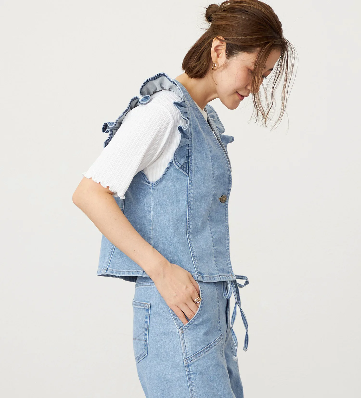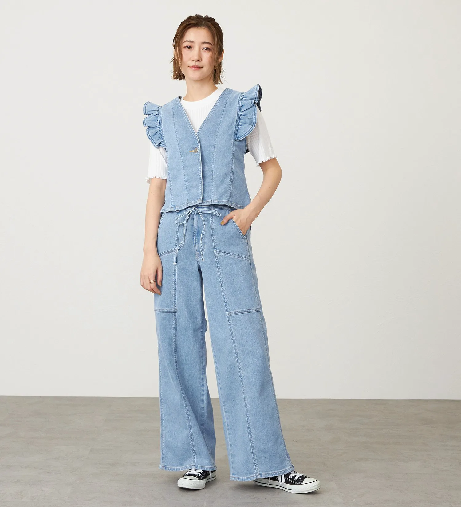 Оригинальный деним Something с волокном Tencel растительного происхождения в качестве основы. Его мягкая текстура приятна на ощупь и представляет собой высококачественный, экологически чистый материал. Он также обладает достаточной эластичностью, обеспечивая комфортную посадку.