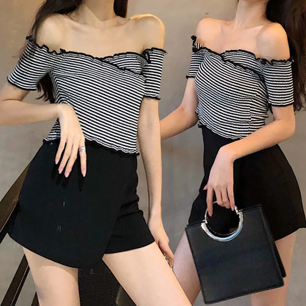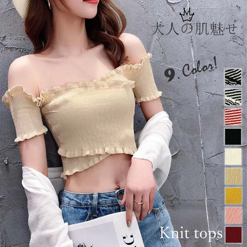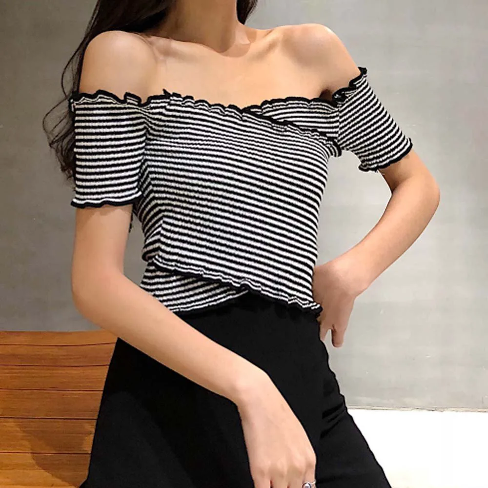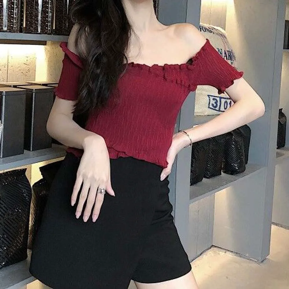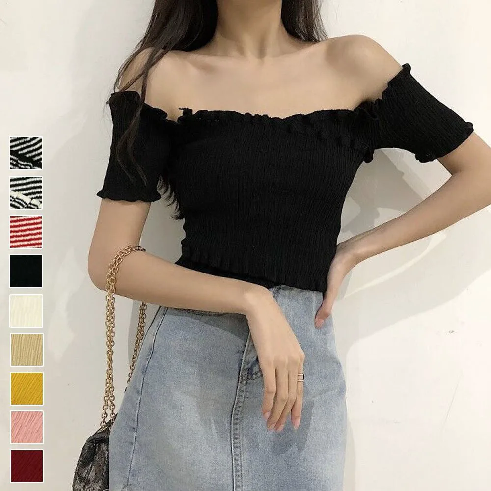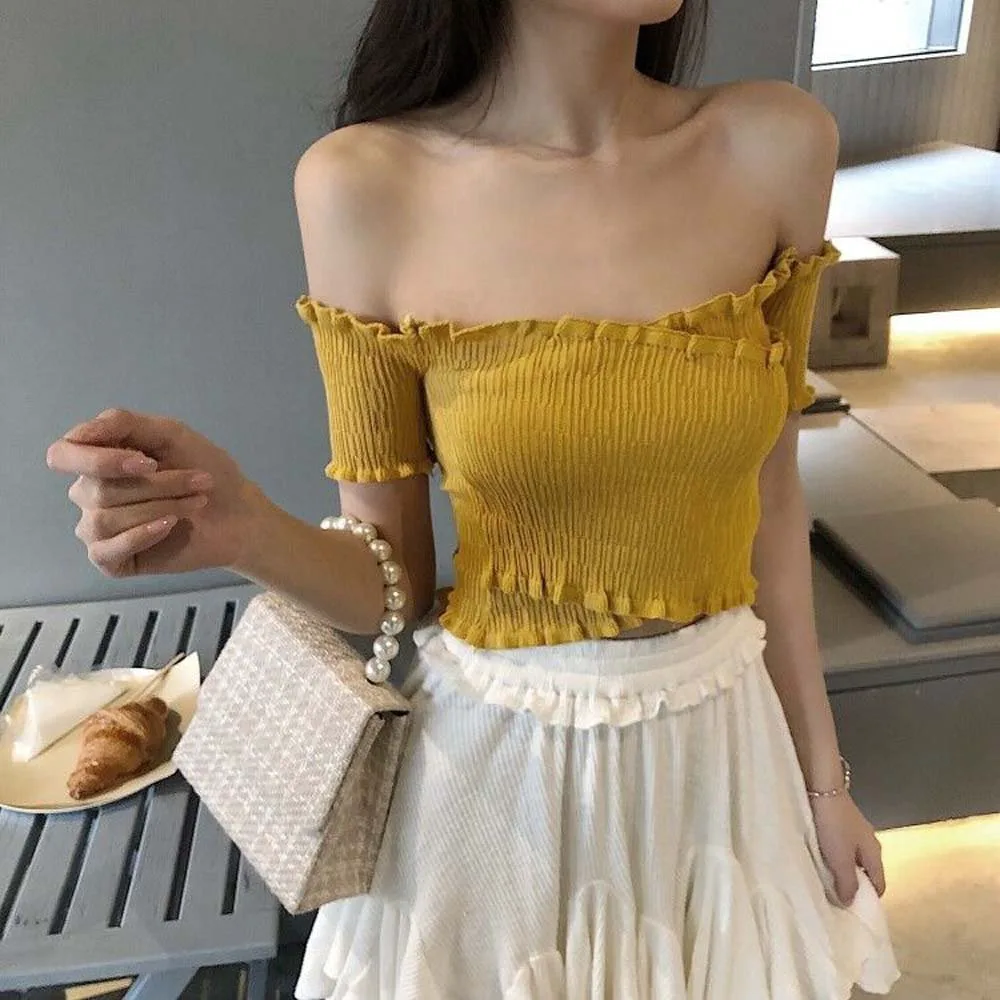 Летний вязаный топ для женщин, с открытыми плечами, с оборками, весна/лето