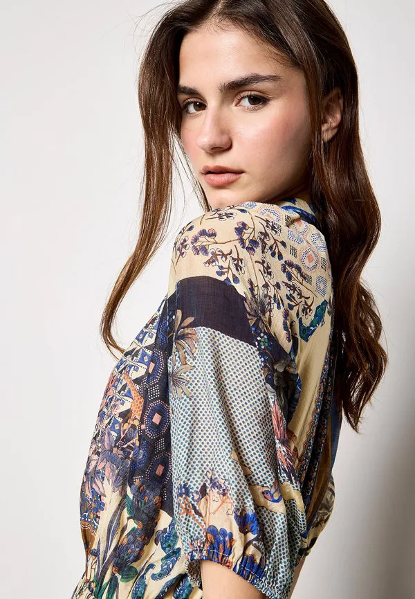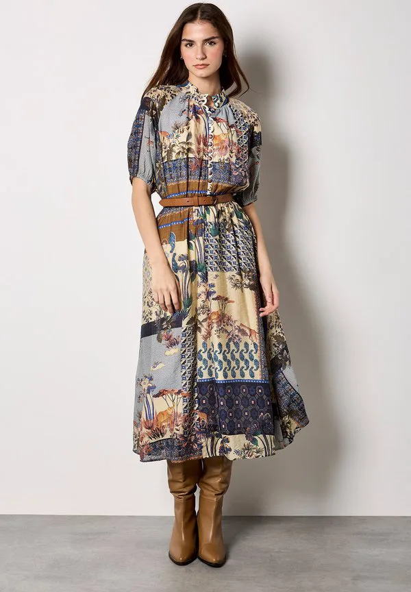 Платье-Миди с лоскутным принтом Apricot, Navy