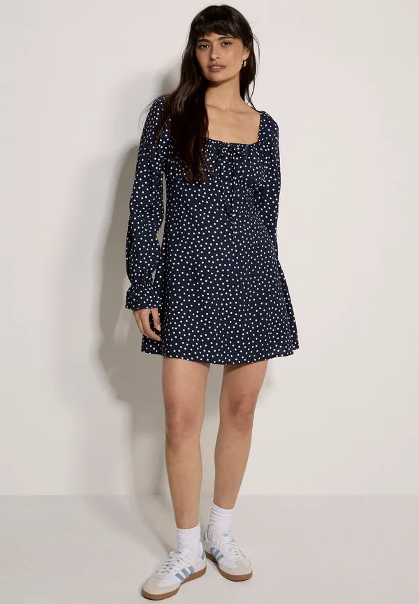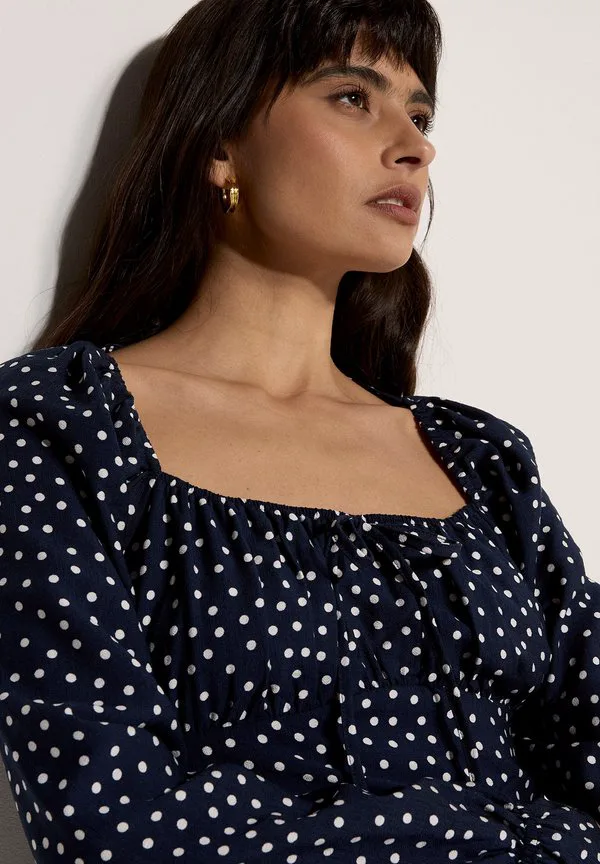 Дневное мини-платье доярки в горошек Apricot, Navy