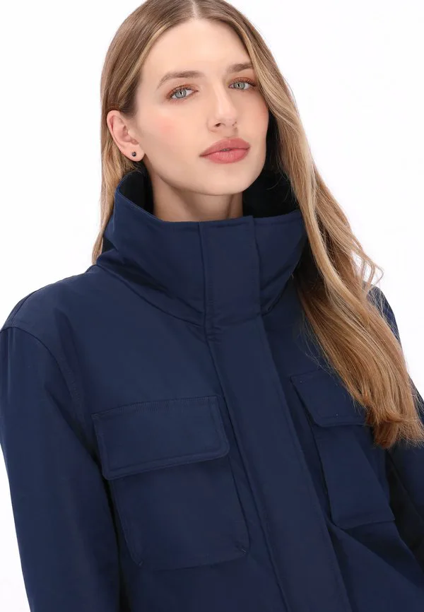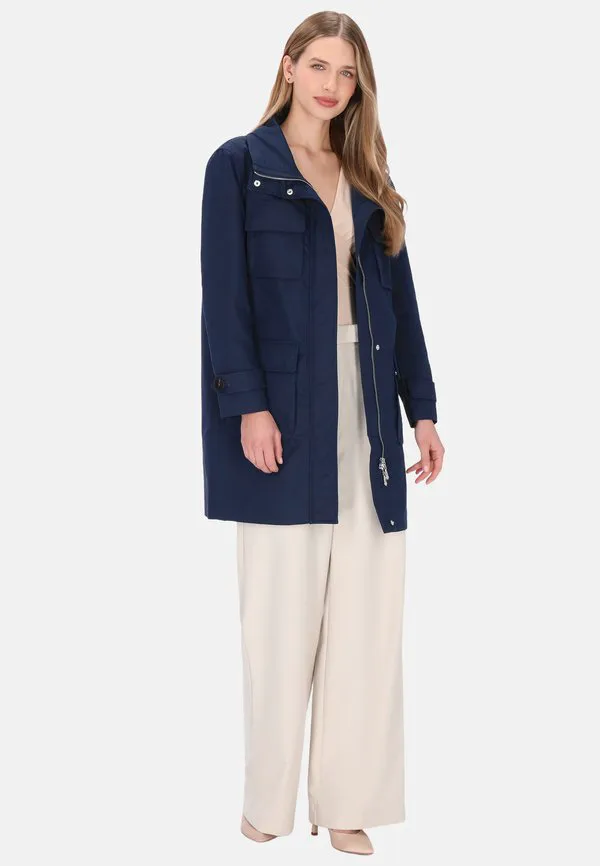Детали: Застежка, обтянутая тканью, застежка на подкладке, двусторонняя молния, декоративные пуговицы