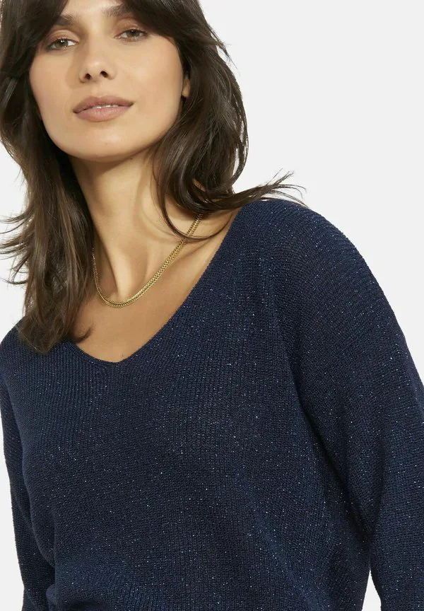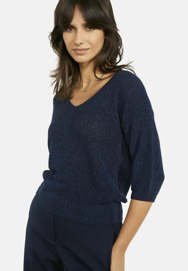 Блестящий джемпер с v-образным вырезом Lolaliza, Navy Basic