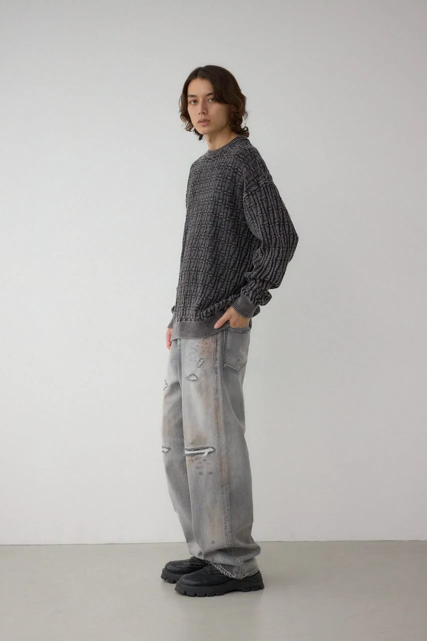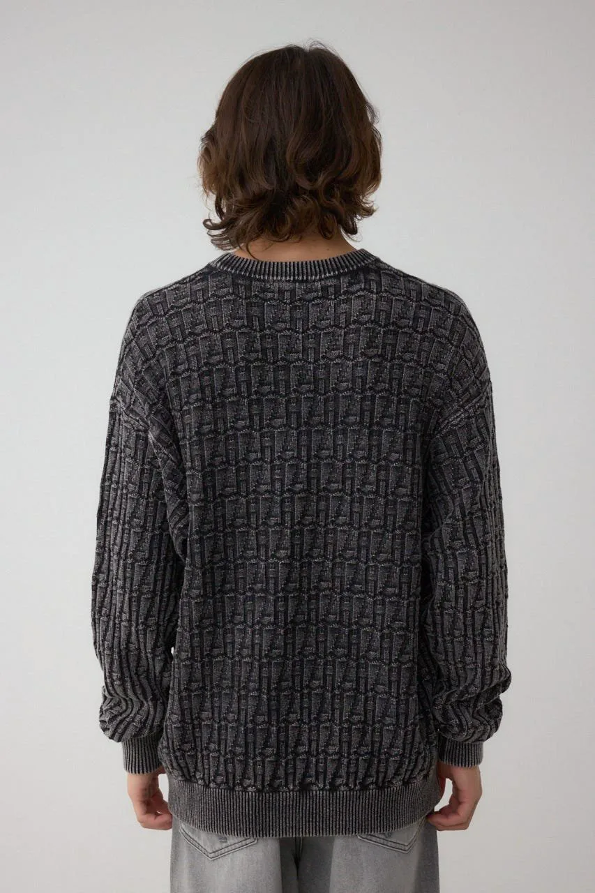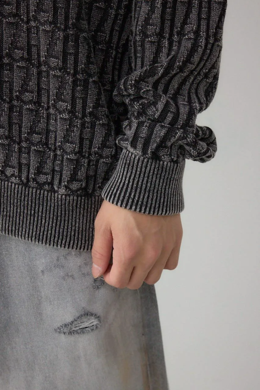 Этот трикотажный топ с жаккардовым узором, окрашенный серой и обработанный методом «стоунвошинг», имеет винтажный вид.