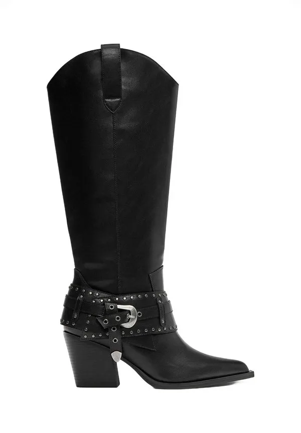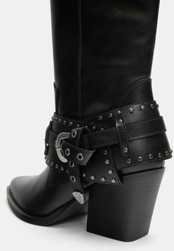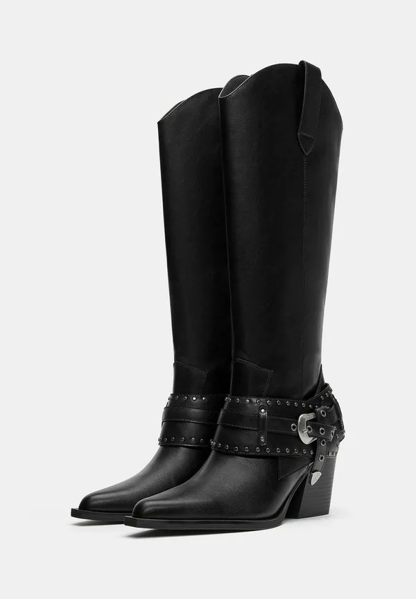 Ковбойские/Байкерские сапоги с пряжками Pull&Bear, Black