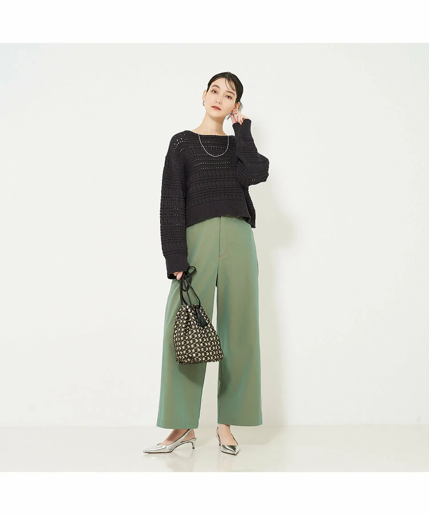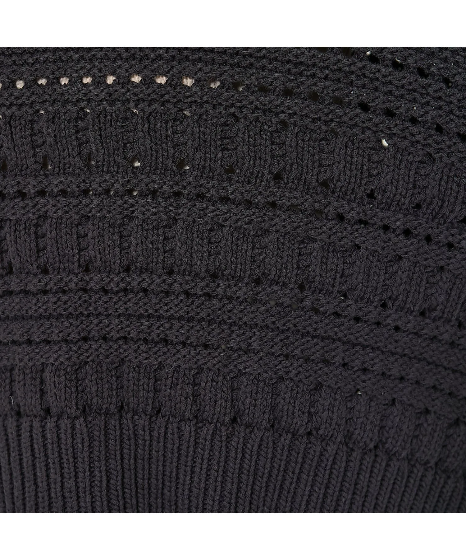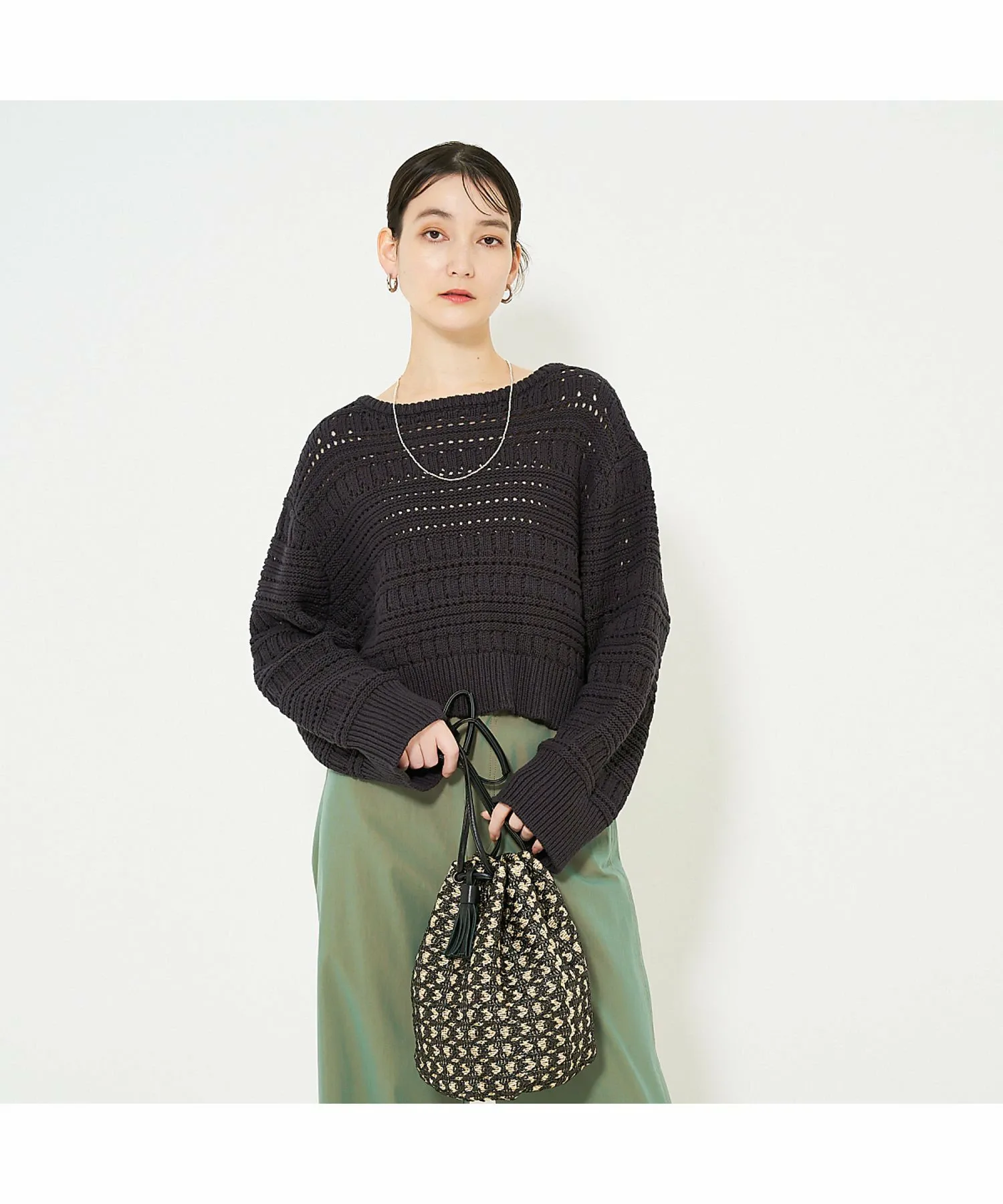 Тройной свитер низкой плотности, изготовленный из округлой хлопковой пряжи с выразительным ажурным узором.