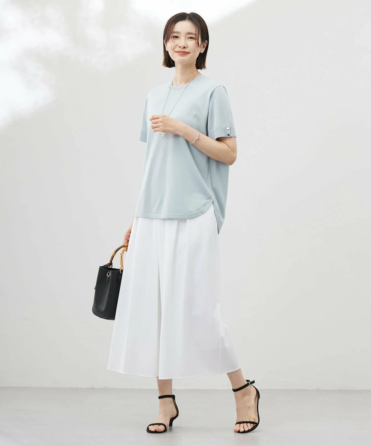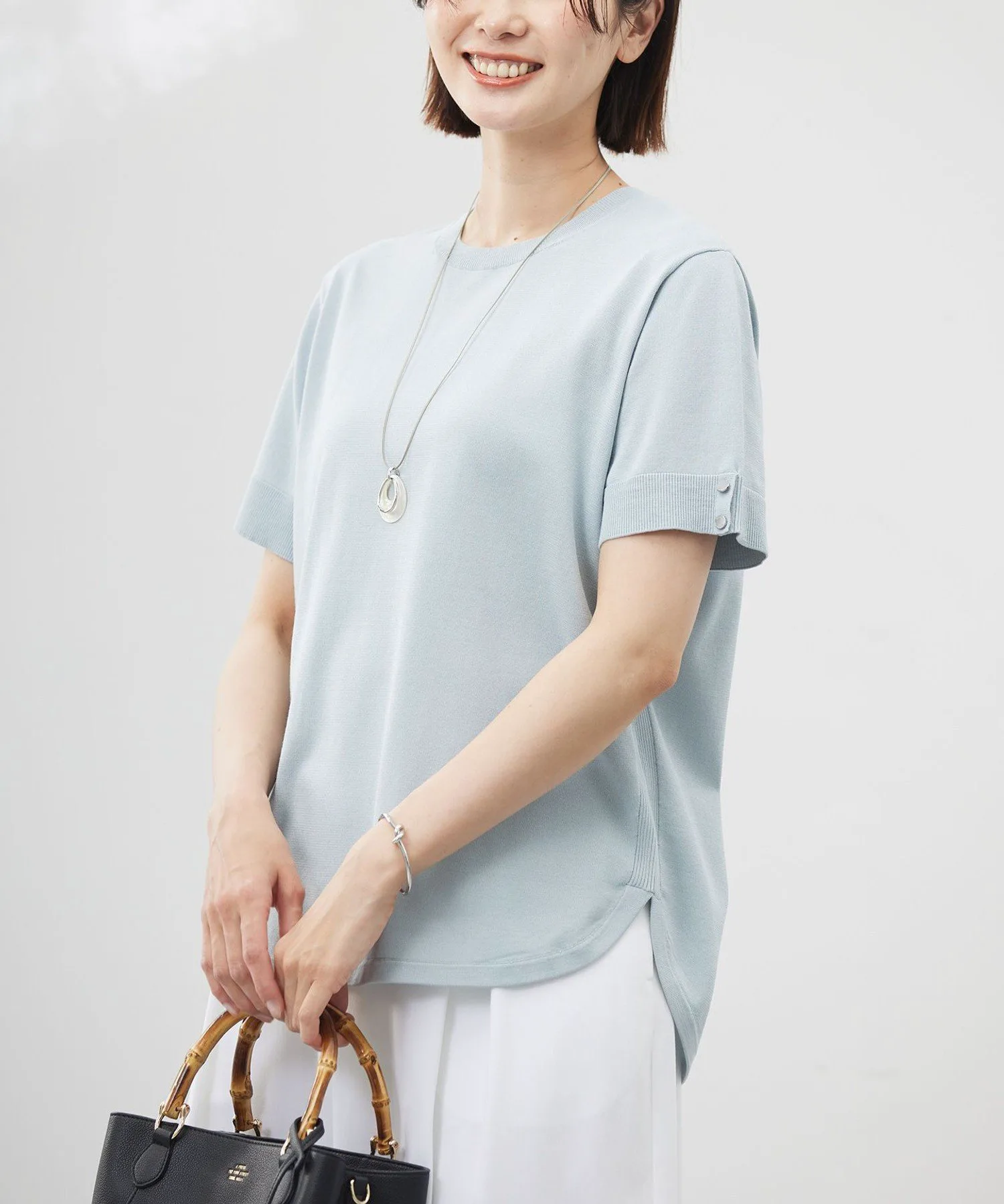 Этот вязаный свитер с рукавами на пуговицах имеет фасон «рубашечный хвост», который естественным образом прикрывает талию, что делает его идеальным как для формальной, так и для повседневной носки. Его слегка удлиненная длина и плавно изогнутый закругленный хвост создают расслабленный силуэт, ненавязчиво прикрывая талию. Ребристые вставки по бокам добавляют легкий трехмерный эффект. Оригинальные золотые пуговицы J.PRESS на манжетах придают классический вид. Он хорошо сочетается с любыми брюками и достаточно универсален для широкого круга случаев. Эта вещь создает изысканный и освежающий летний образ. Изготовленный с использованием специальной техники прядения, этот свитер сочетает в себе индийский хлопок и эластичный полиэстер, создавая красивую поверхность, которая минимизирует образование катышков. Умеренная эластичность обеспечивает свободу движений и комфортную посадку. Гладкая, приятная на ощупь ткань и простота в уходе делают его удобным в носке даже в жаркие месяцы. Товары из того же материала: трикотажное поло (KRGJGM0532), большой размер (KRGTGM0532), маленький размер (KRG0GM0532)