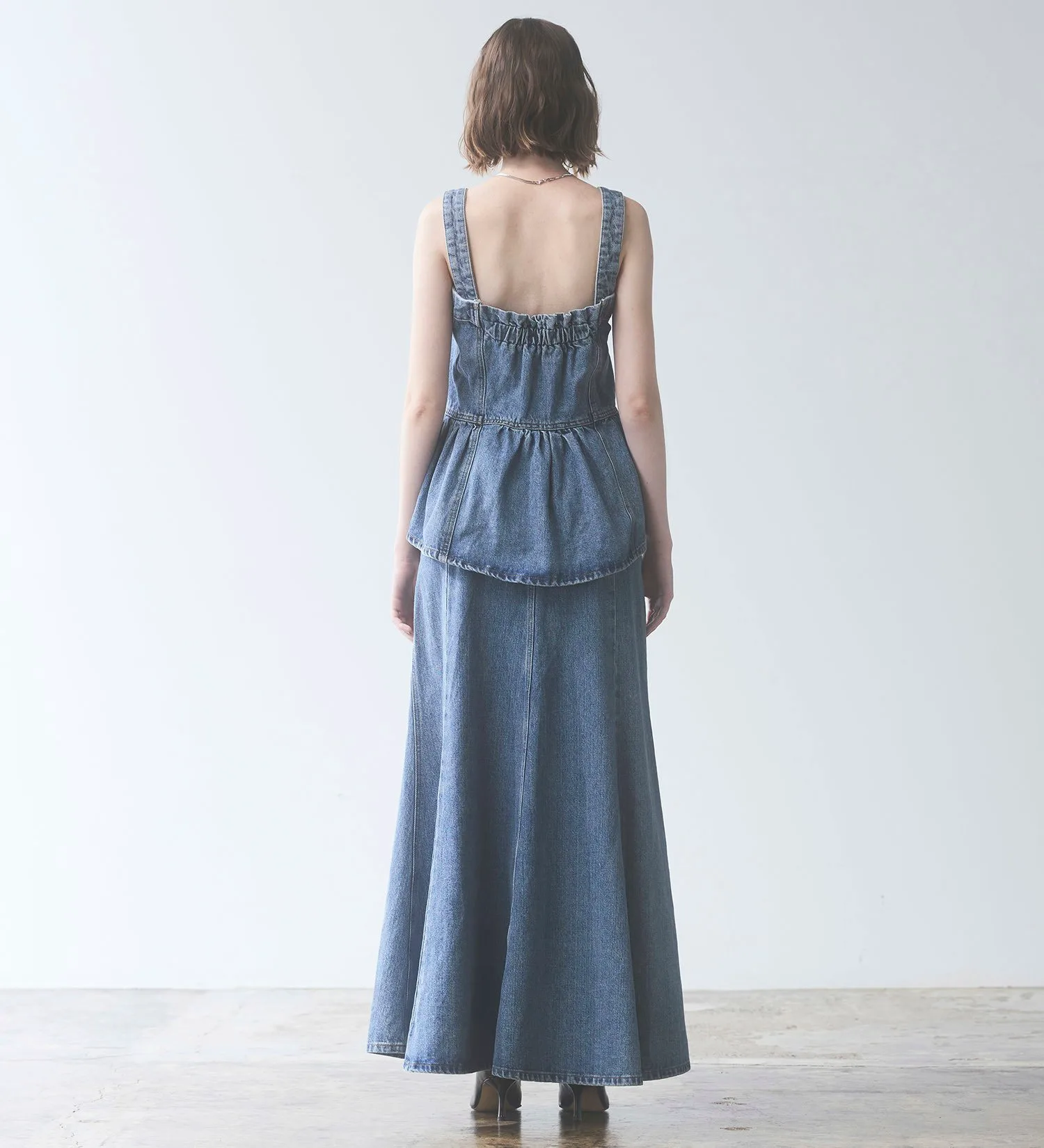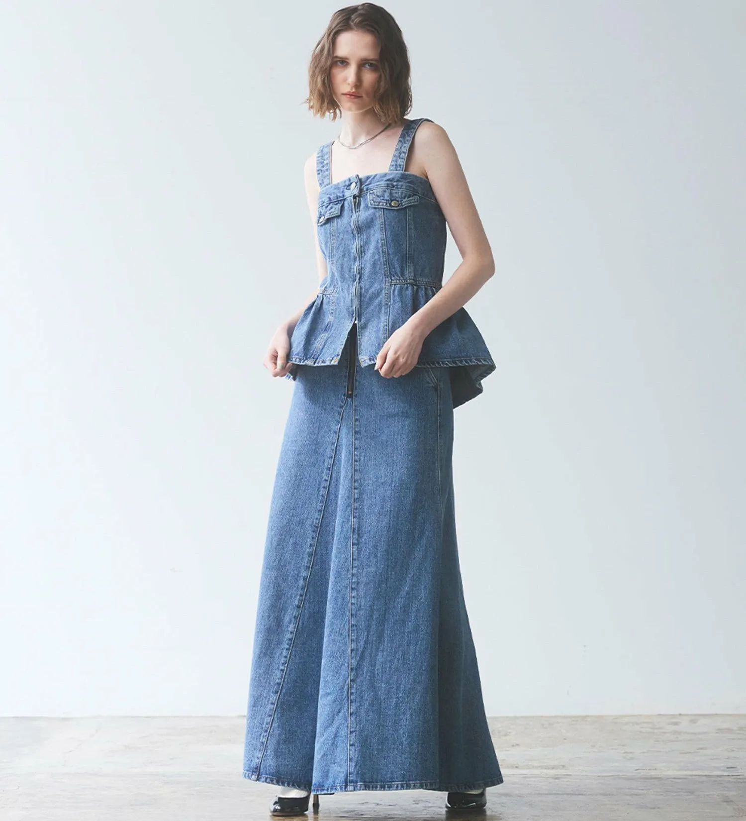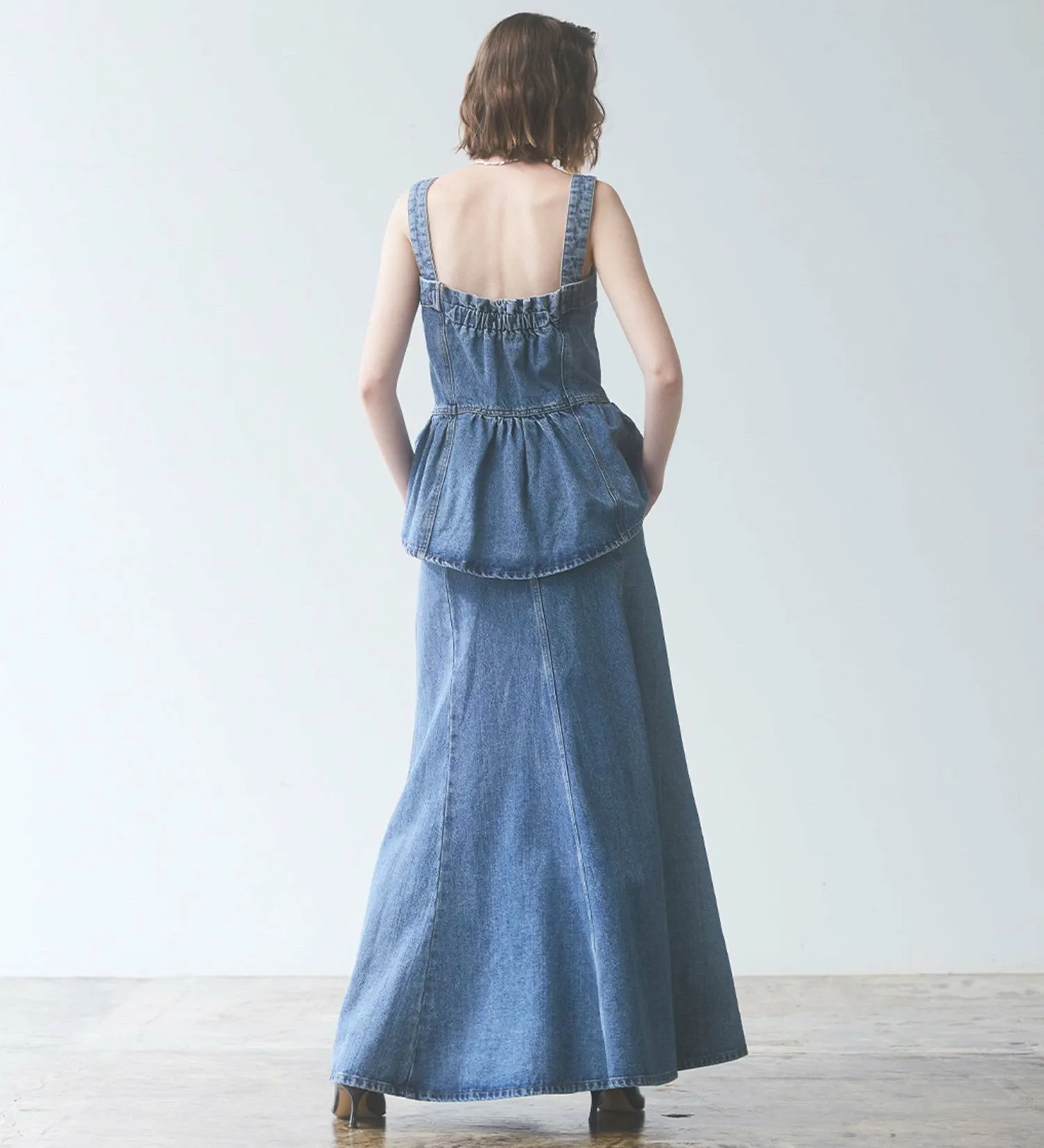 Женственное бюстье с присборенной талией и баской. Немного удлиненная длина подчеркивает талию, создавая эффект стройности. Разная длина спереди и сзади также добавляет привлекательности силуэту сбоку. Съемные бретели позволяют носить его и как топ без бретелей. Это изделие можно носить разными способами, в зависимости от настроения и наряда.