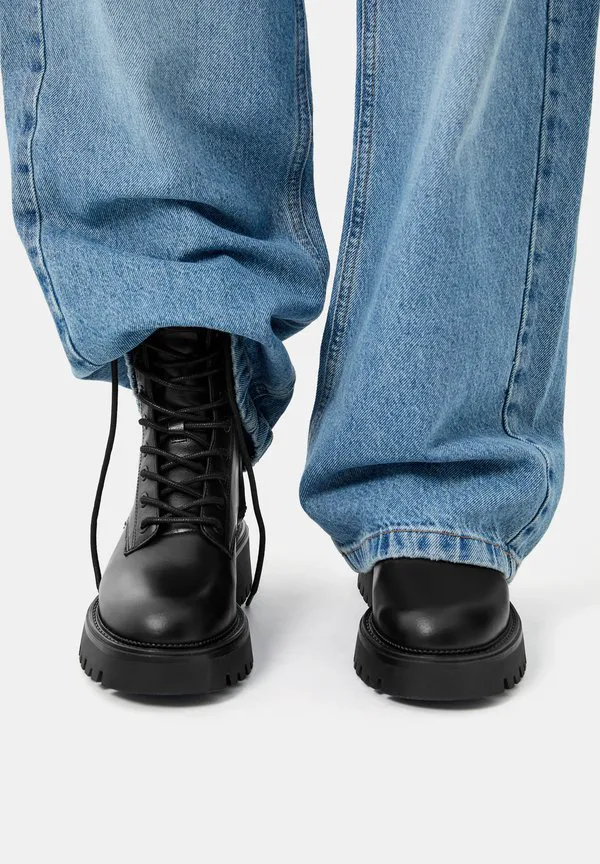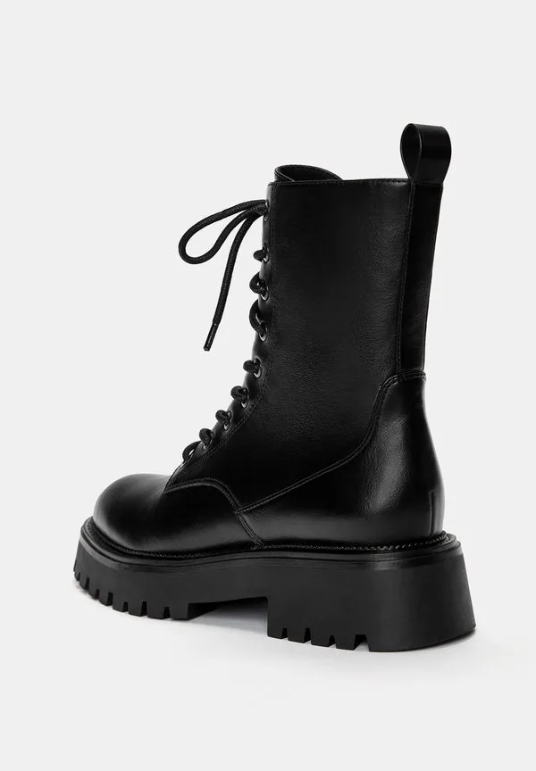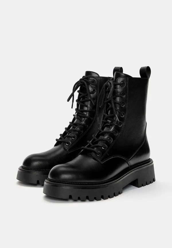 Плоские ботильоны на шнуровке Pull&Bear, Black