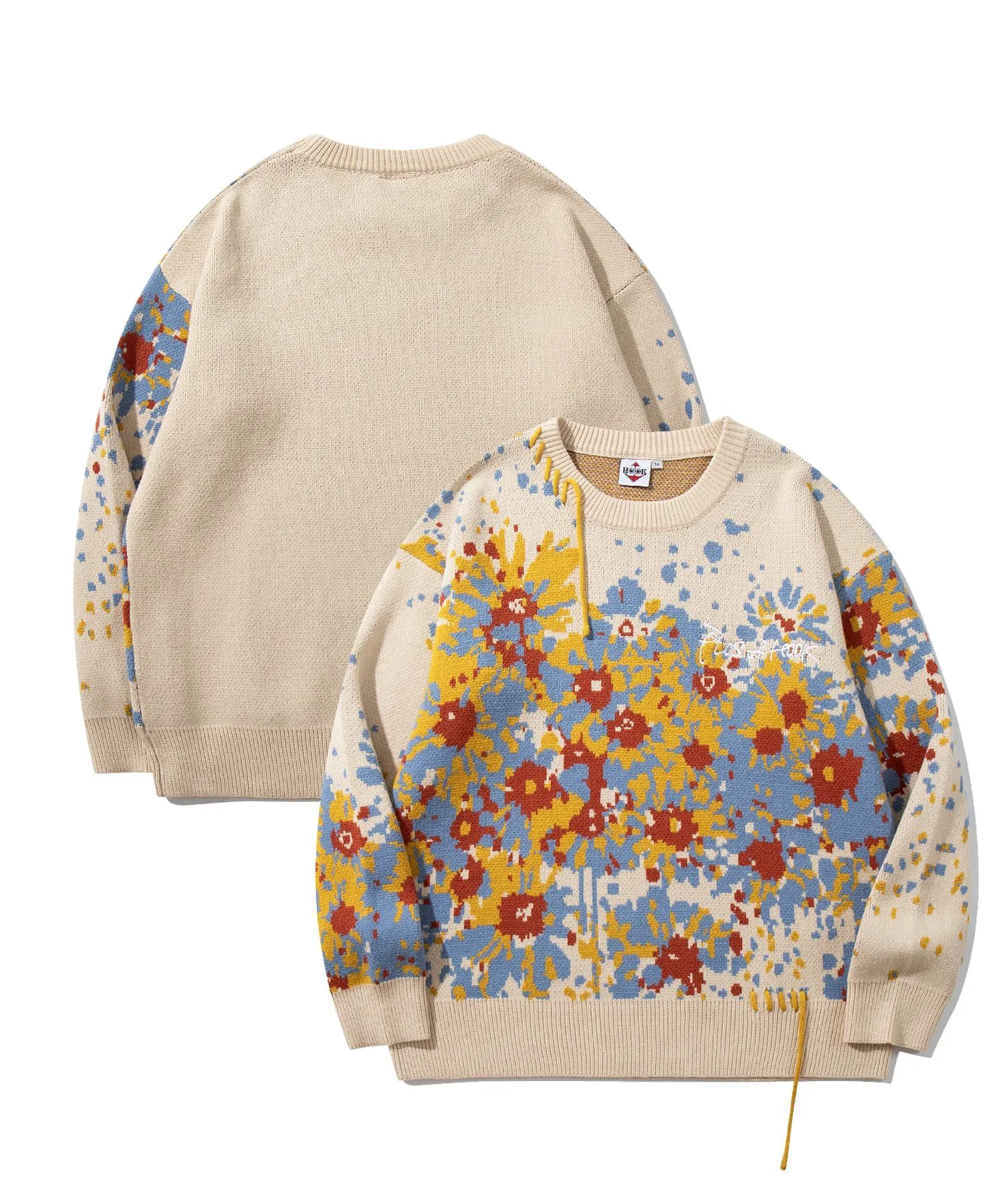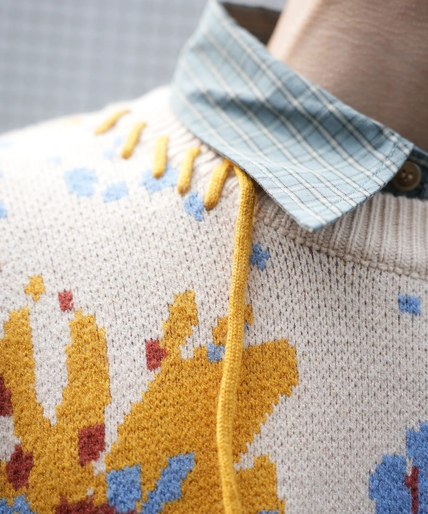 Дизайн в стиле пэчворк с яркими, броскими цветами и узором в виде ромашек.
