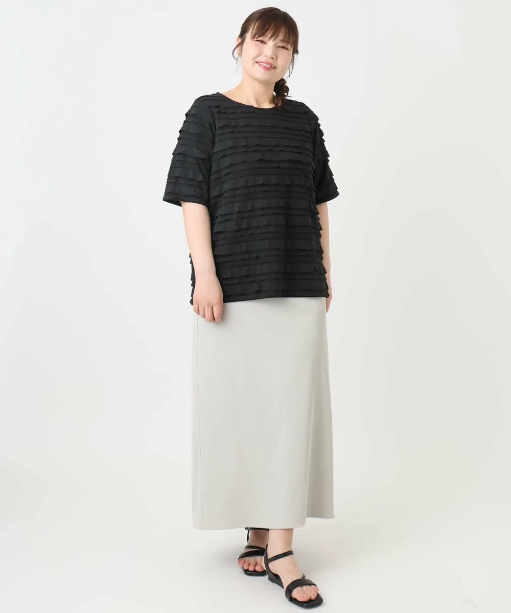 Изготовлен из эластичного трикотажа с ярусными оборками.