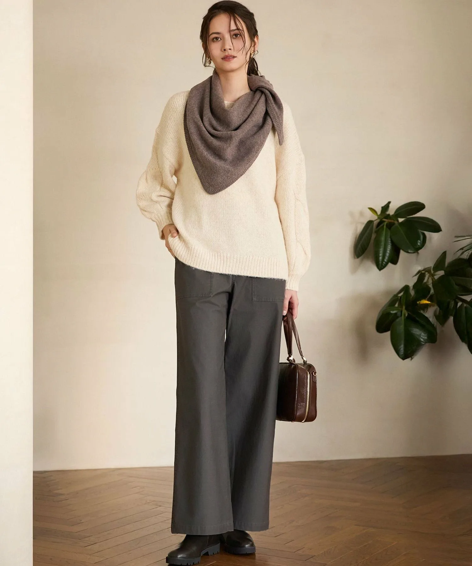 Материал: Теплый материал, смешанный с британской шерстью. В ней используется технология "Airflow Yarn", при которой шерсть вплетается в лирическую пряжу. Она выглядит плотной и прочной, но при этом удивительно легкой в носке. Также она обладает тонким, элегантным блеском, придающим ей повседневный, но в то же время изысканный вид.