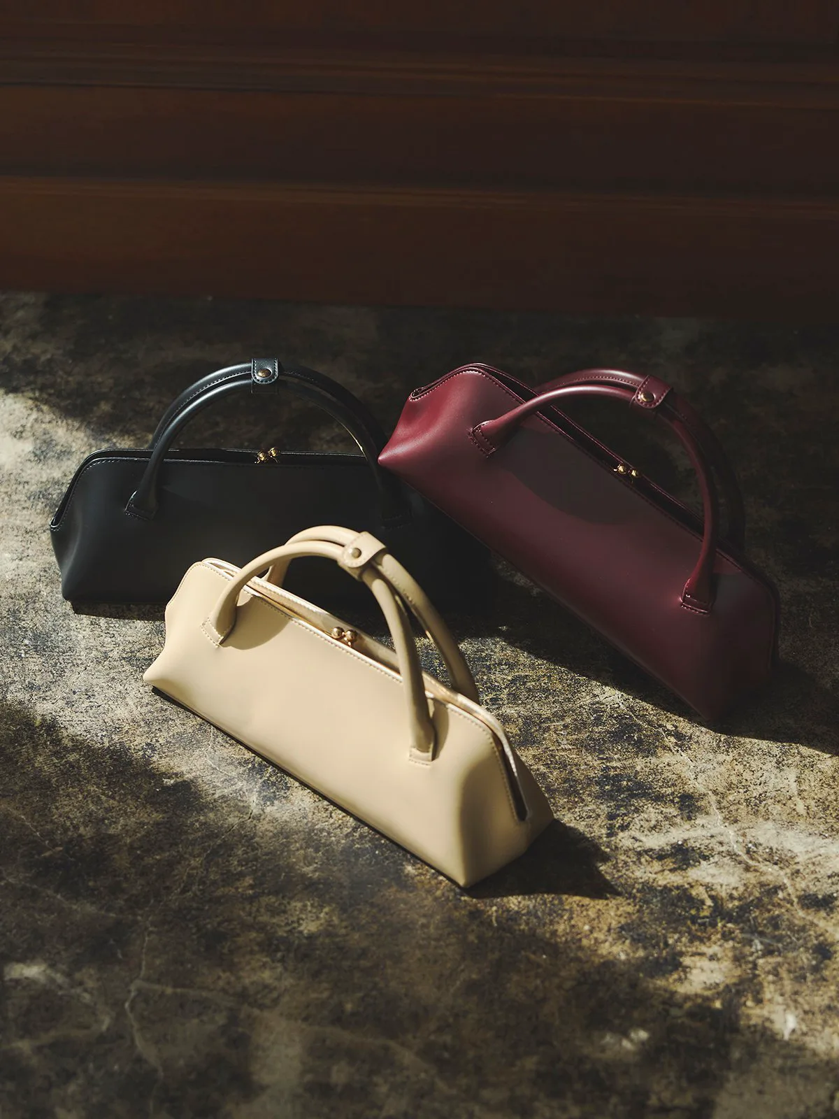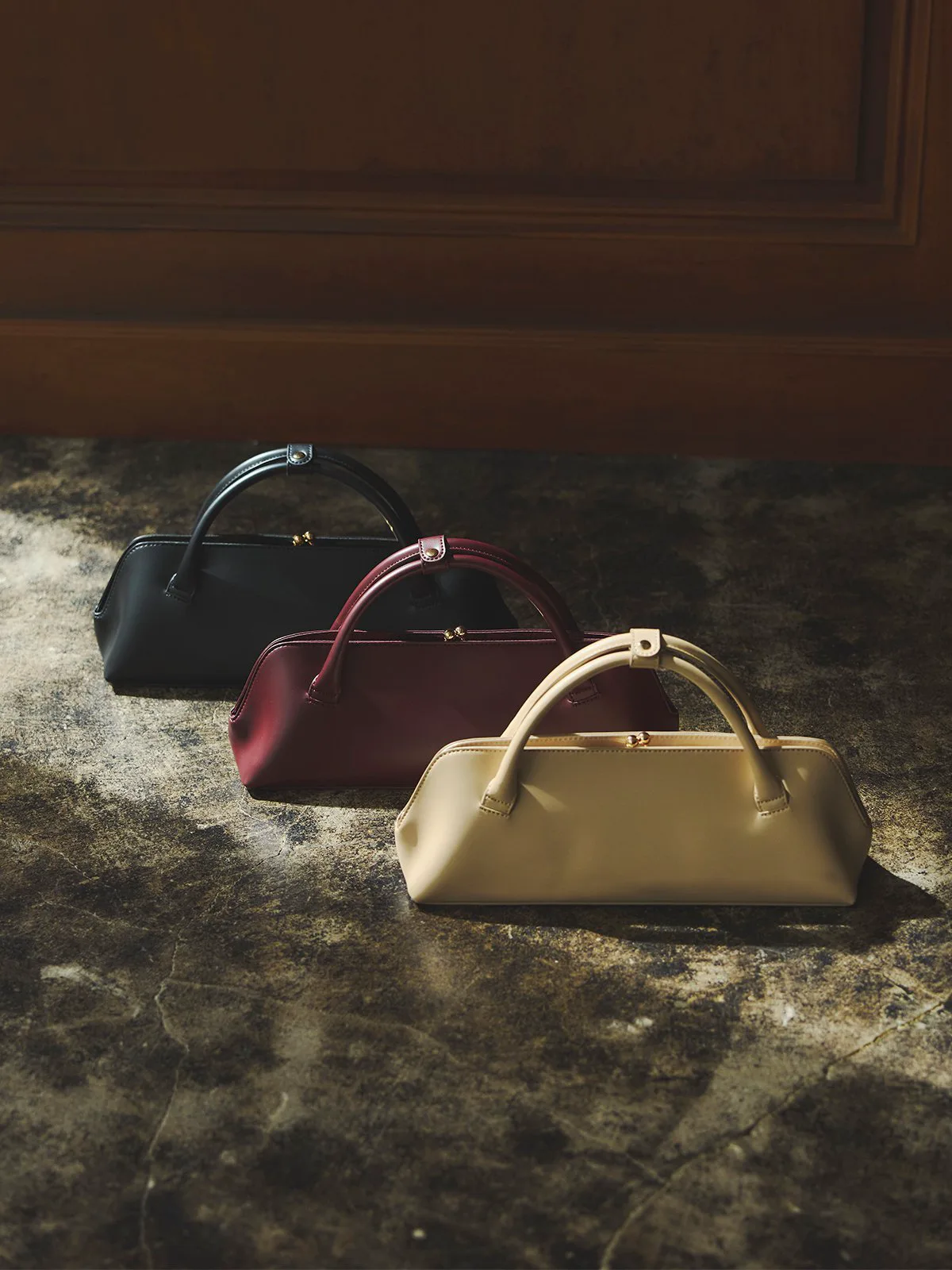 Сумка с застежкой и свежим горизонтальным силуэтом.