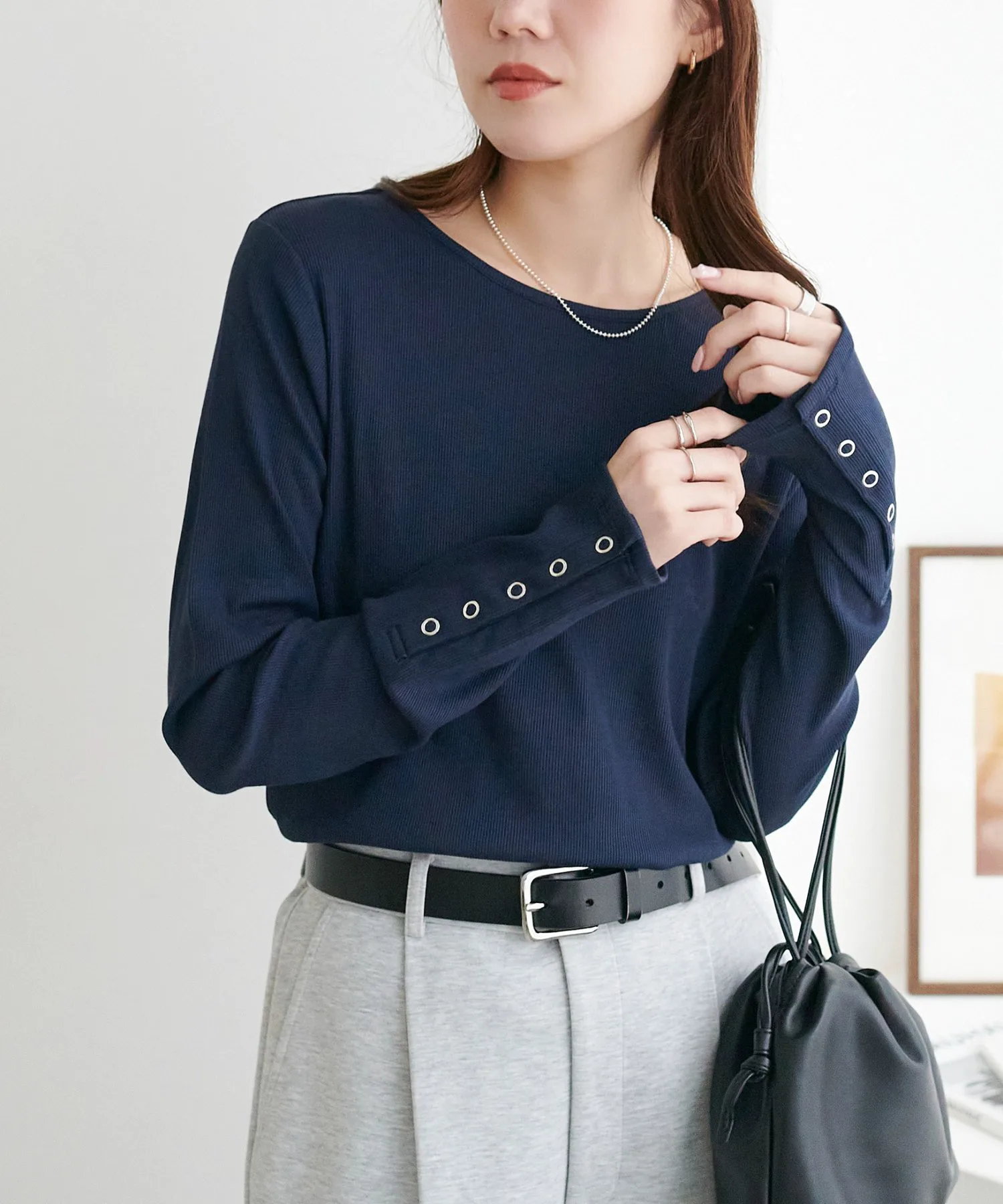 Сотрудник: рост 155 см: Вырез горловины не слишком узкий, поэтому он не выглядит тяжелым даже при многослойной одежде! Если оставить 2-3 пуговицы на манжетах расстегнутыми, ваши руки будут сидеть свободнее! Их будет легче увидеть, если вы носите браслеты♪