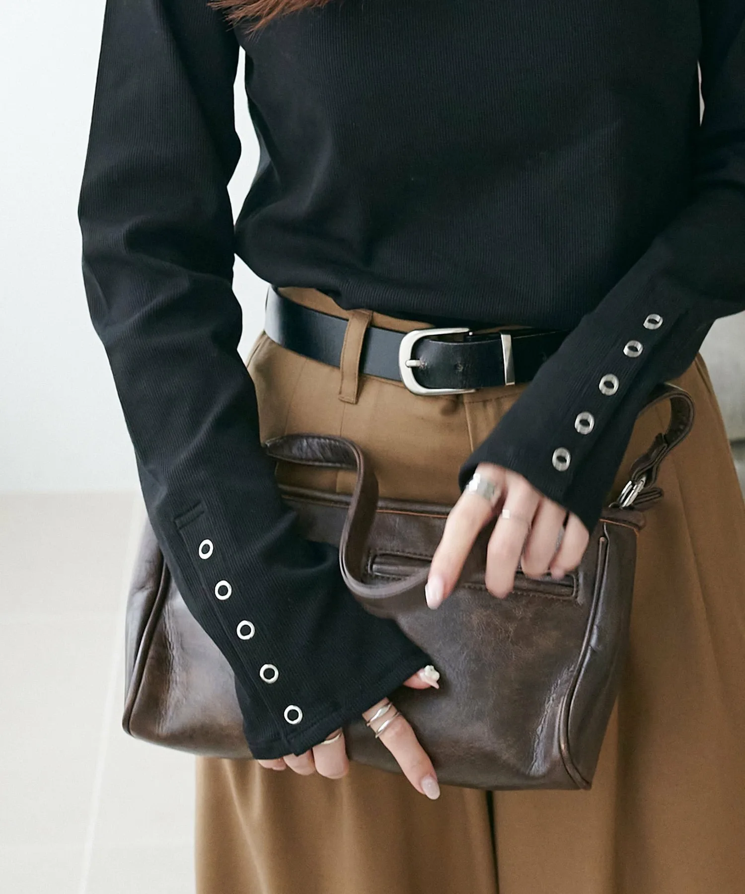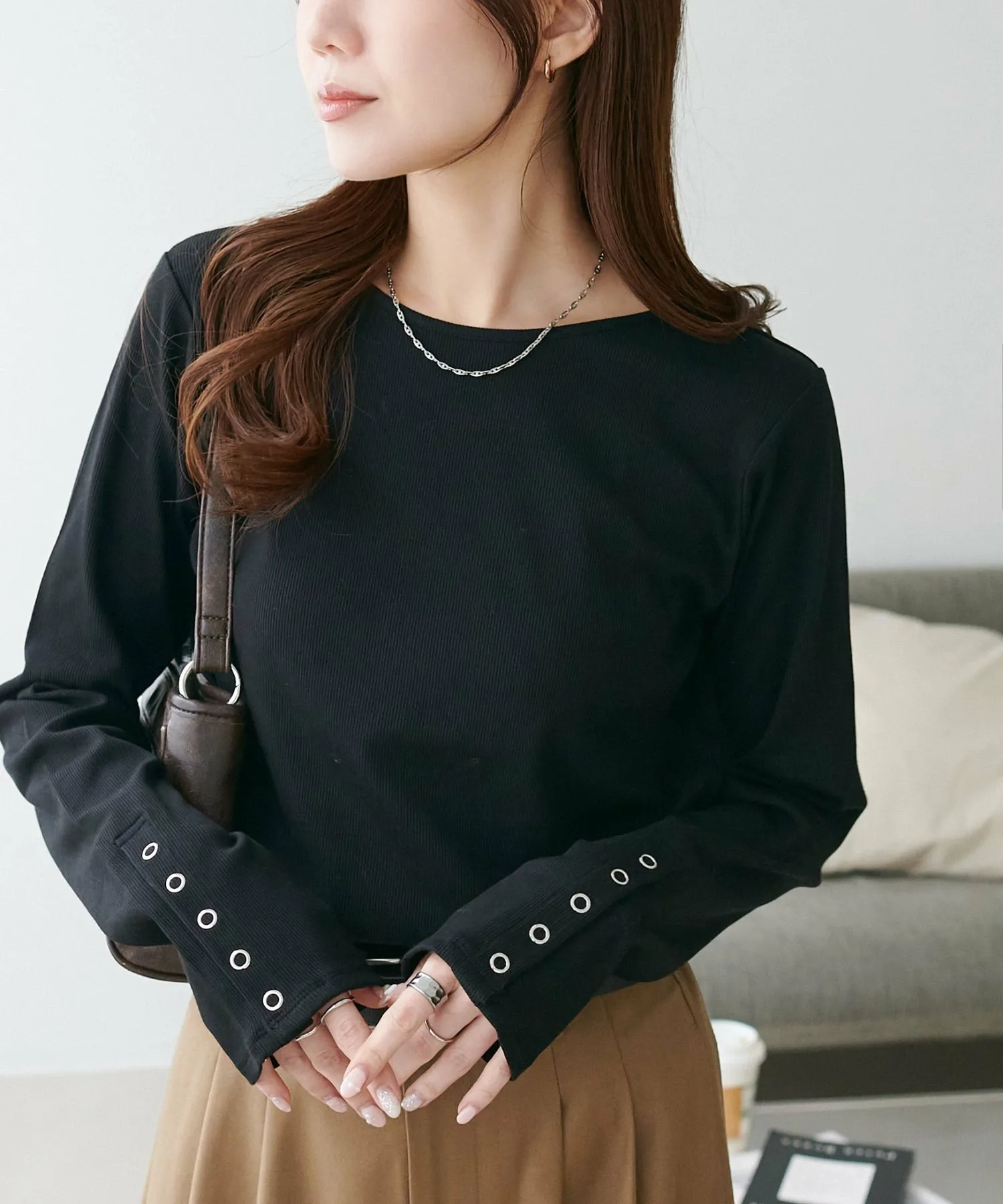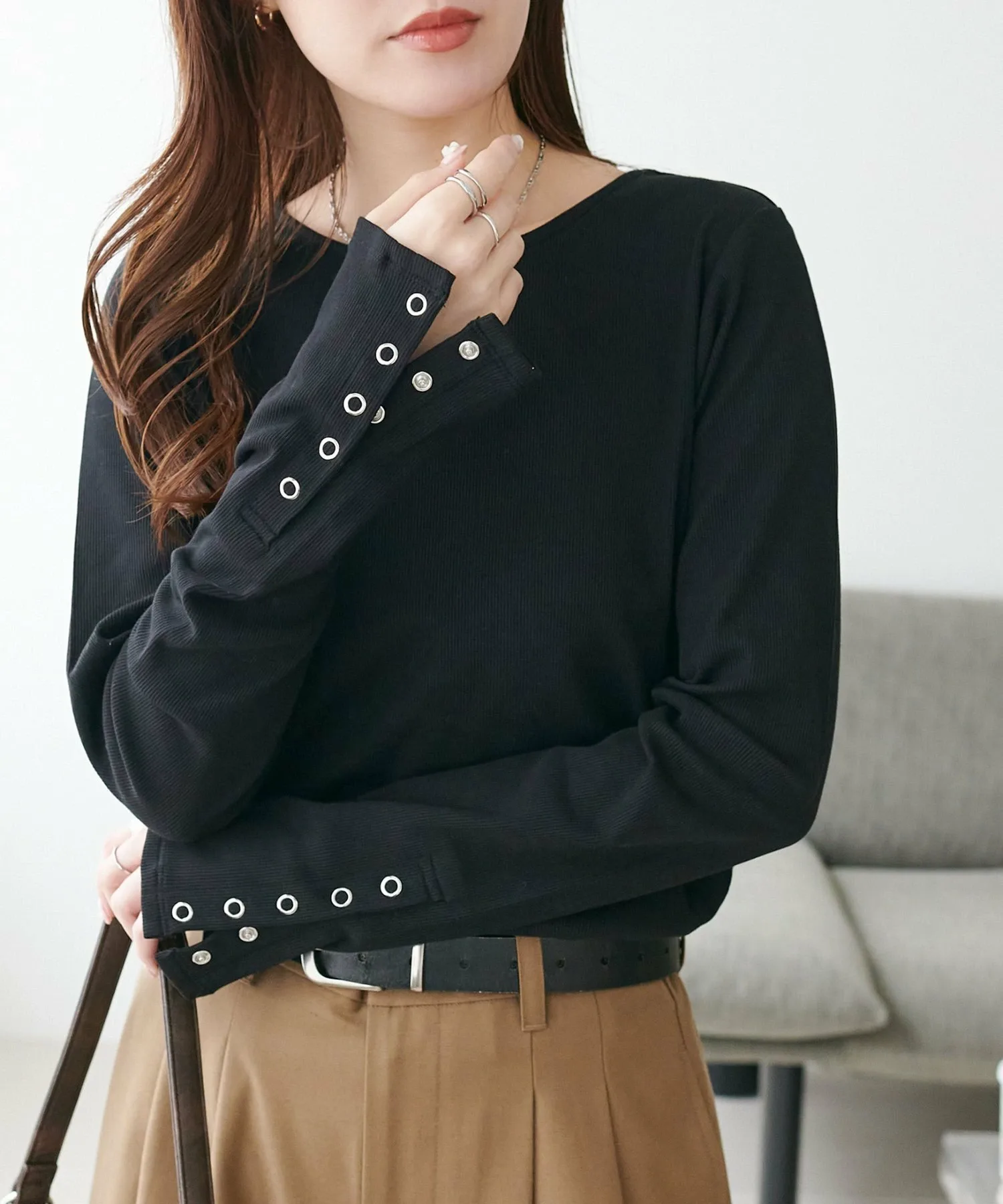 Сотрудник: рост 155 см: Вырез горловины не слишком узкий, поэтому он не выглядит тяжелым даже при многослойной одежде! Если оставить 2-3 пуговицы на манжетах расстегнутыми, ваши руки будут сидеть свободнее! Их будет легче увидеть, если вы носите браслеты♪