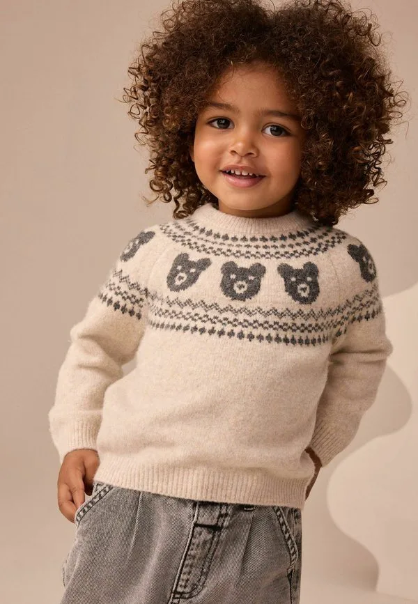 Джемпер с круглым вырезом и узором «фэрайл» стандартного кроя Next, Neutral Bear