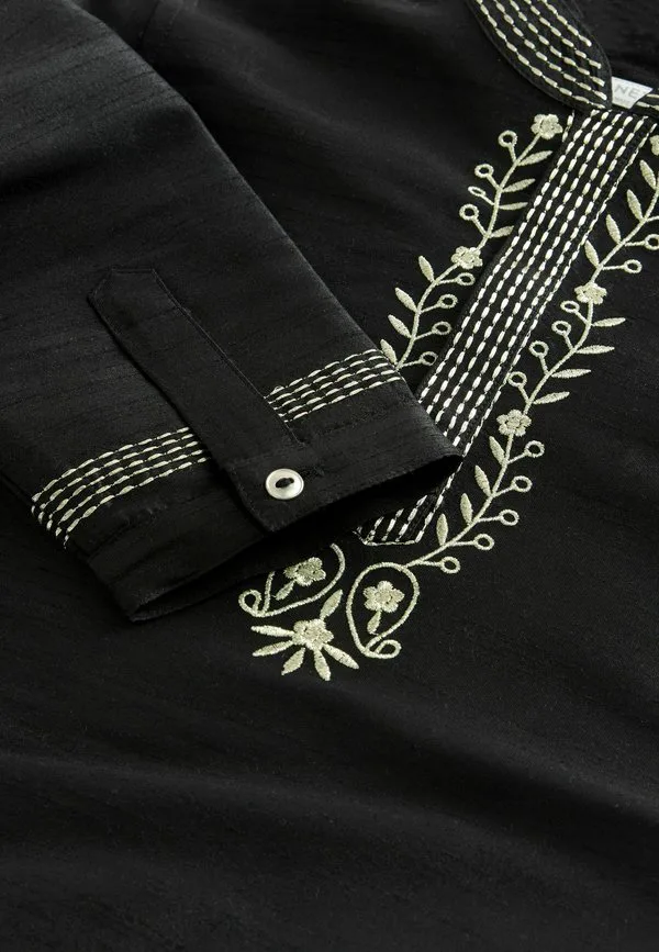 Вышитая курта, рубашка прямого кроя Next, Black Embroidered