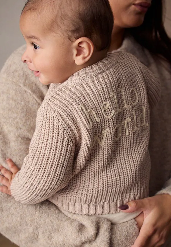 Плотный вышитый кардиган Next, Neutral Hello World Slogan